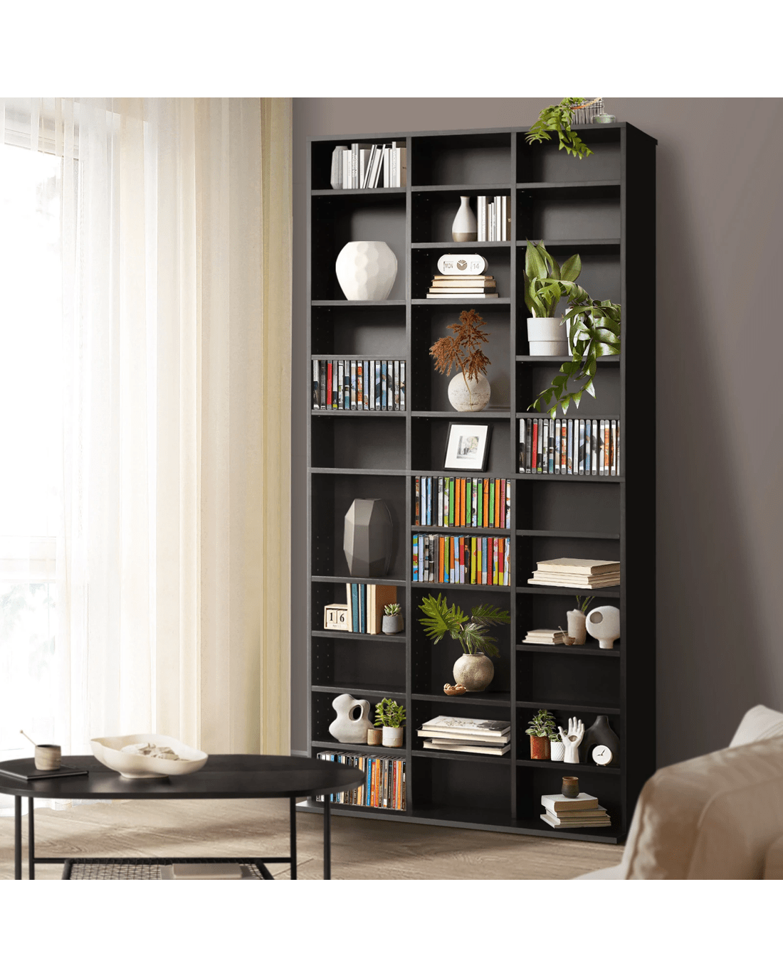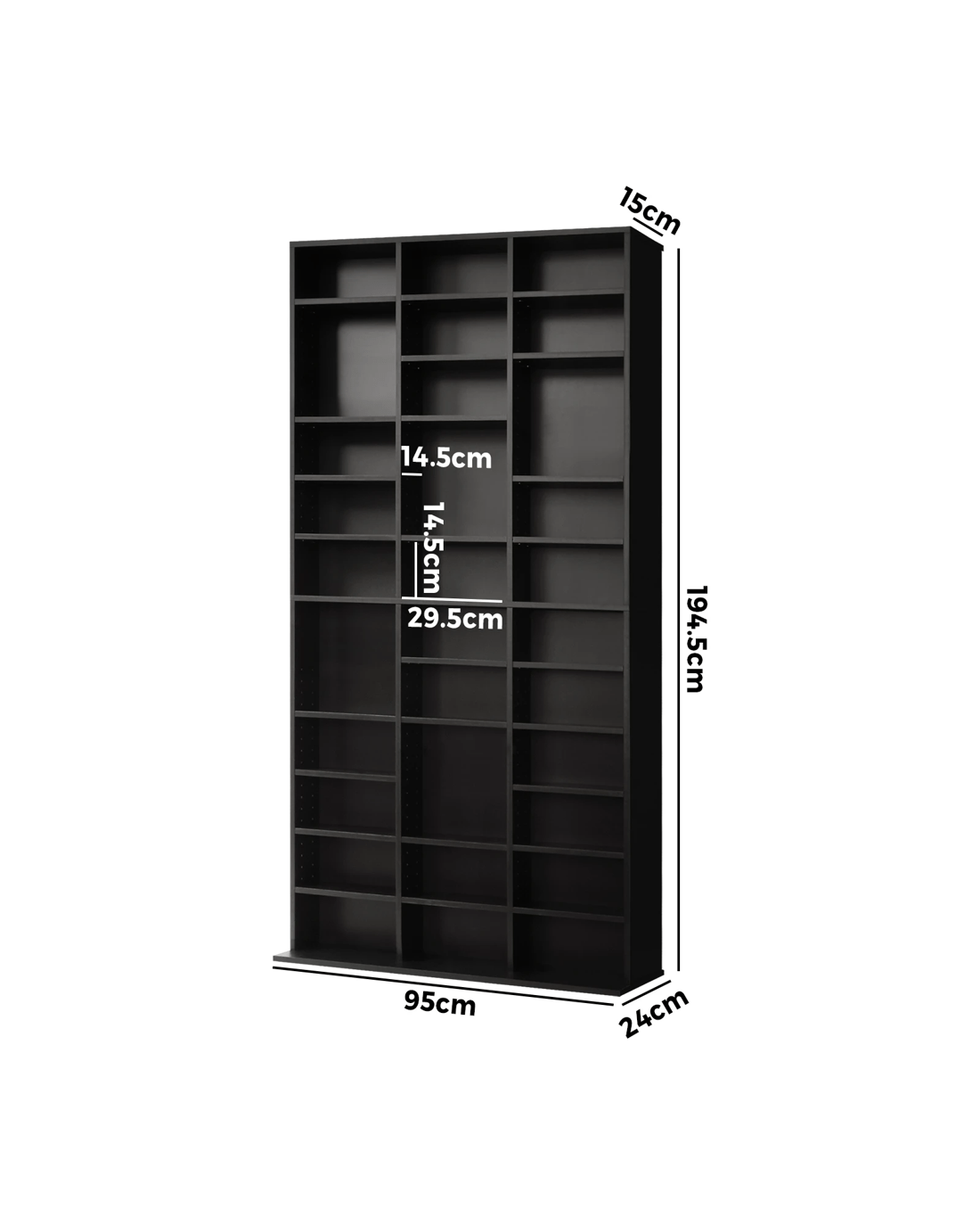 Oikiture Bookshelf Display Shelf Bookcase Cd Dvd Storage Media Rack Stand - Black