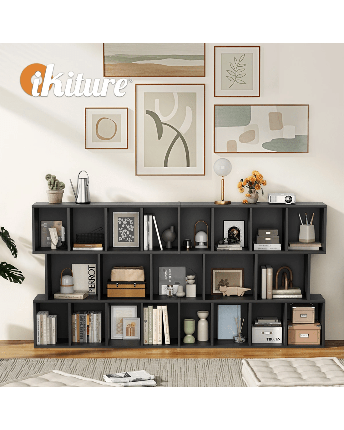 Oikiture Bookshelf Display Shelf CD DVD Storage Media Rack Stand Bookcase - black