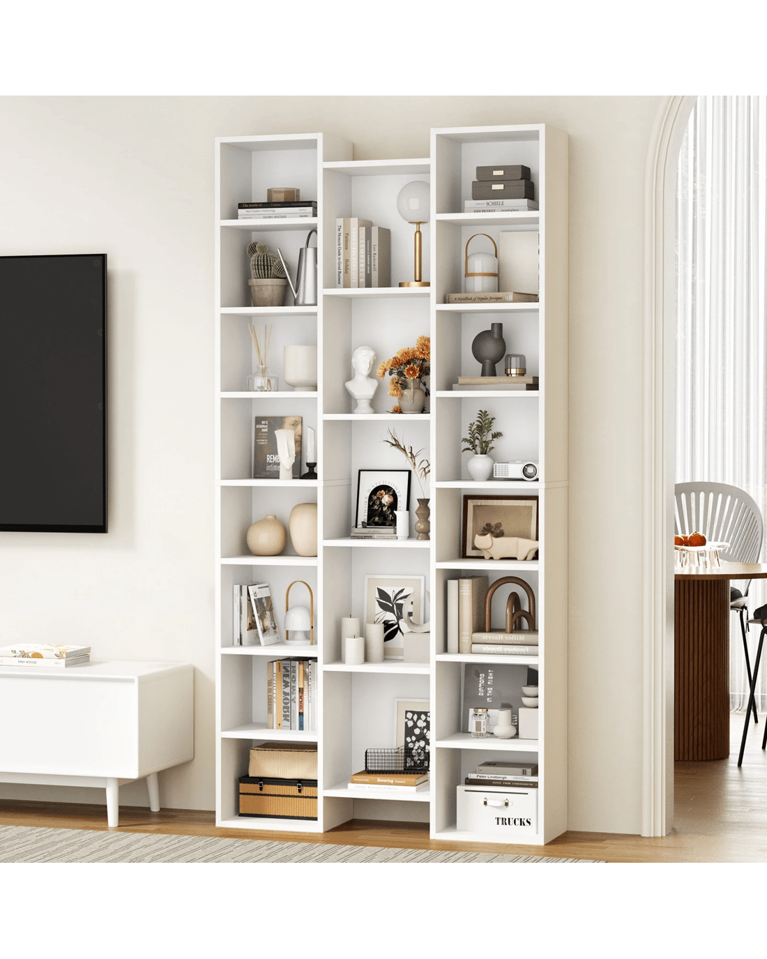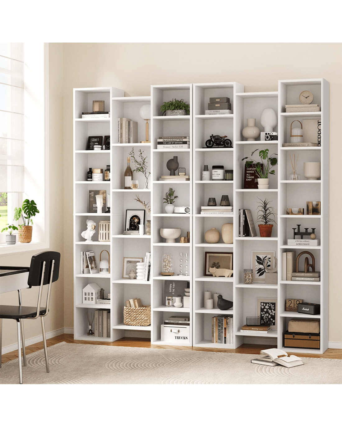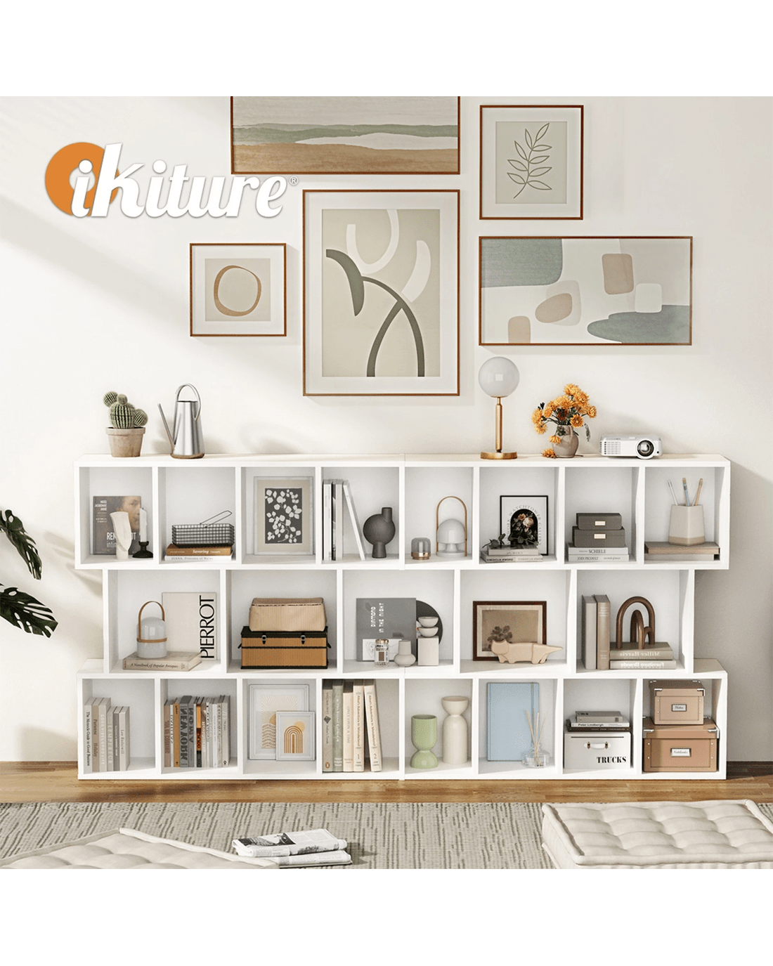 Oikiture Bookshelf Display Shelf CD DVD Storage Media Rack Stand Bookcase - white