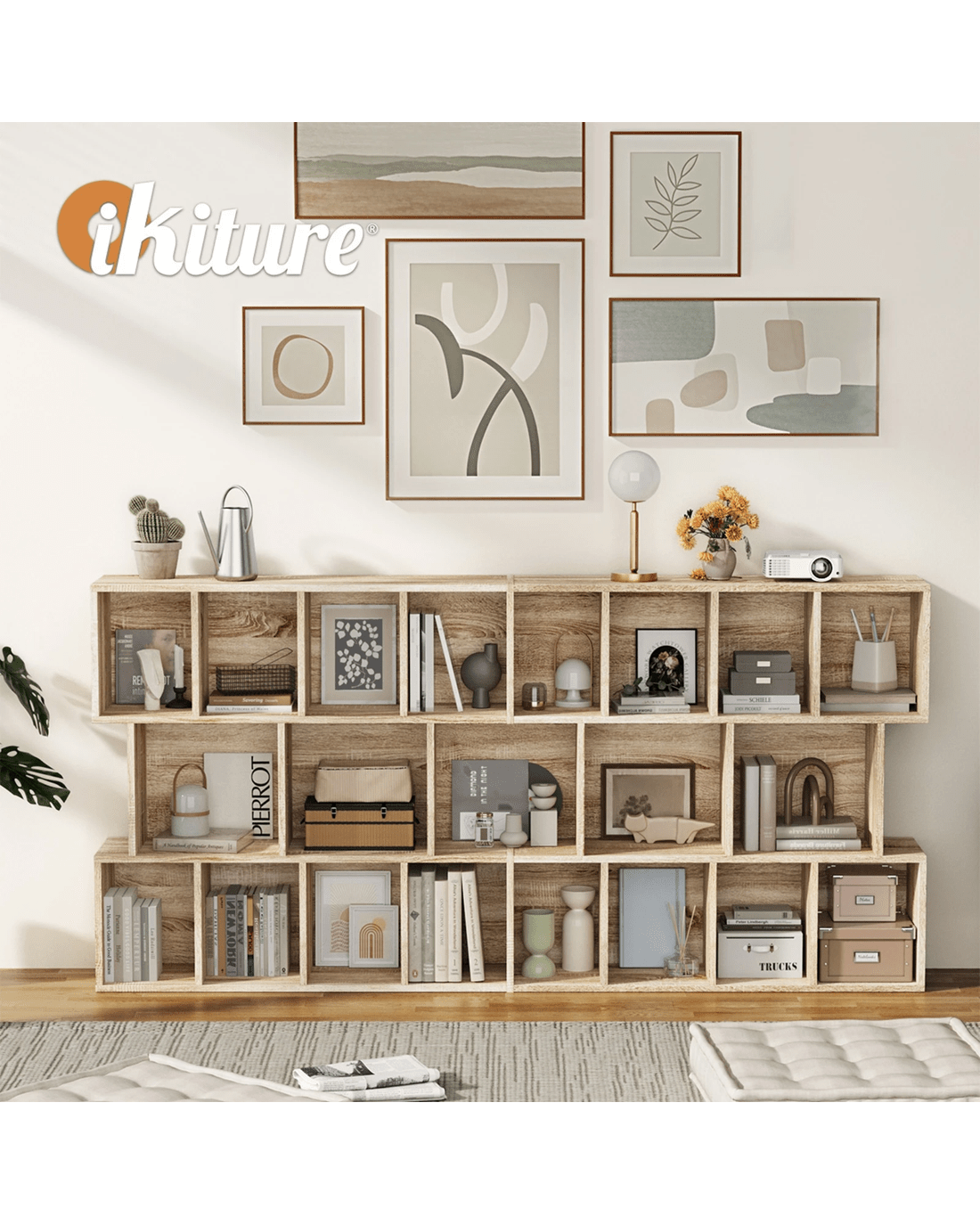 Oikiture Bookshelf Display Shelf CD Storage Media Rack Stand Bookcase - natural