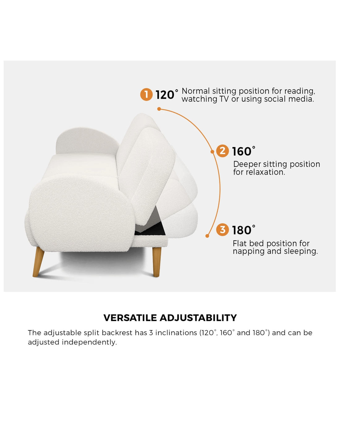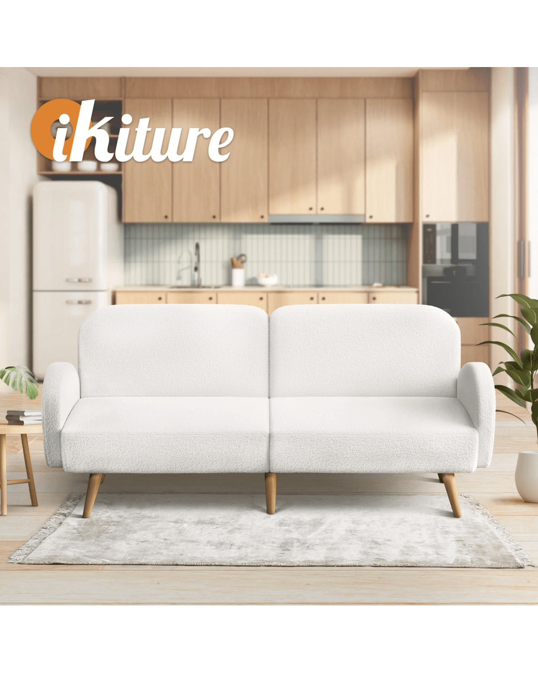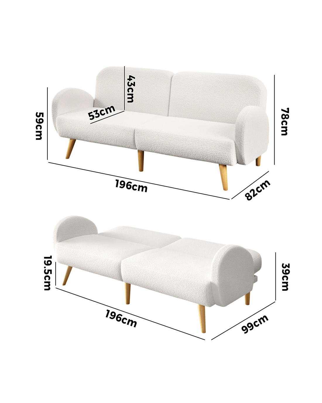 Oikiture Boucle Sofa Bed 3 Seater Recliner - White