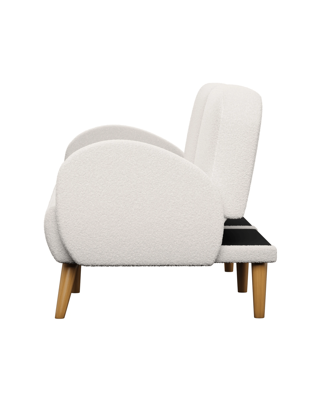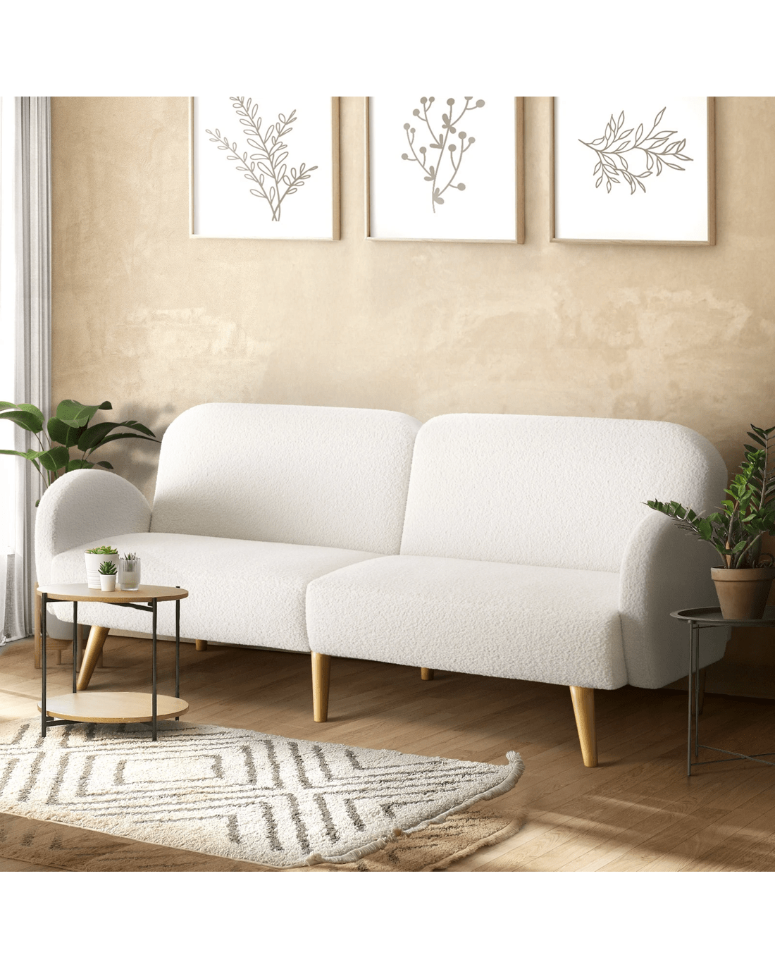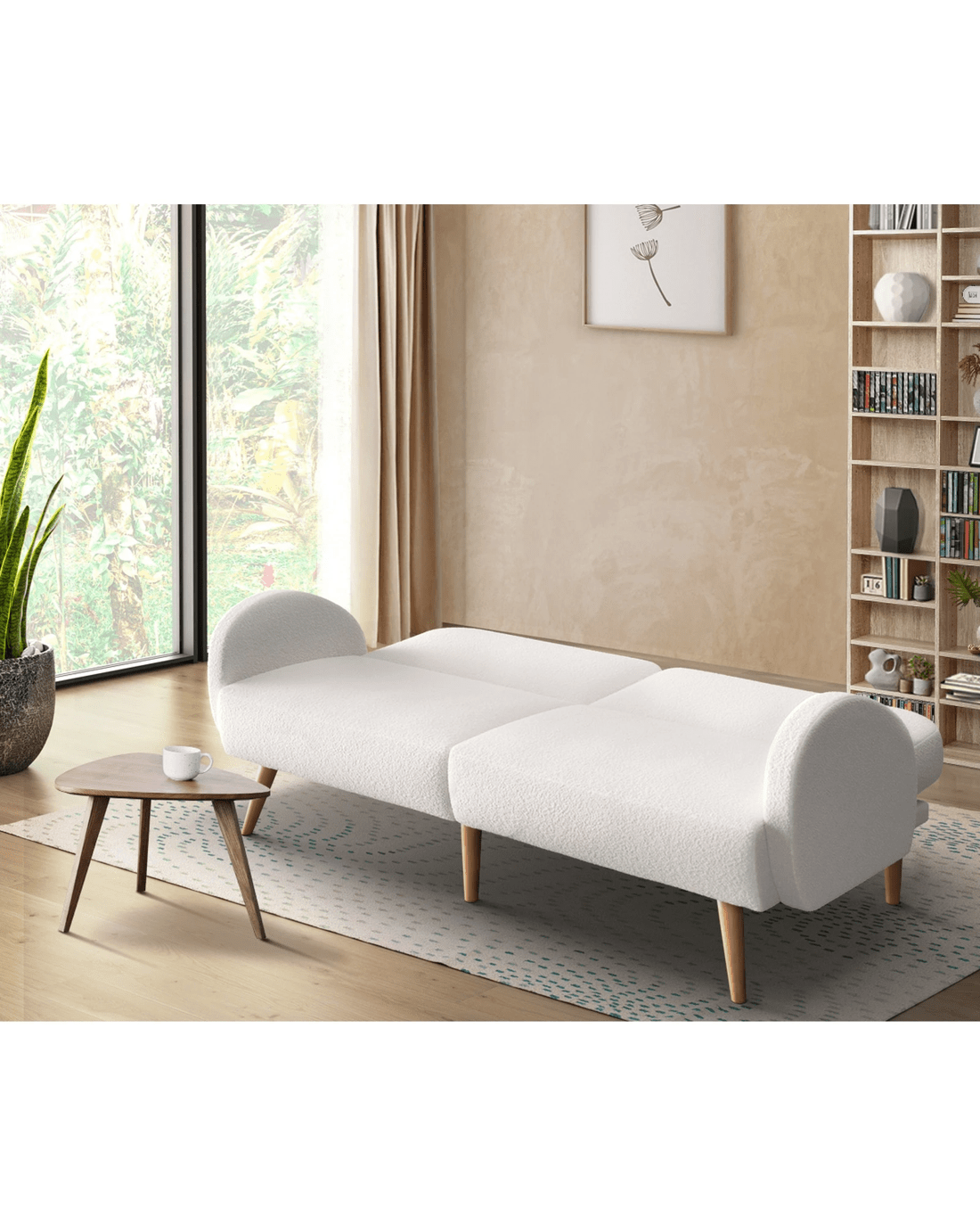 With its wide and generous seating proportions, the 3-seater will always feel and seen like a lot more. Upholstered in plush and immaculate white sherpa fleece, the elegant sofa bed is simply luxurious in form and function.