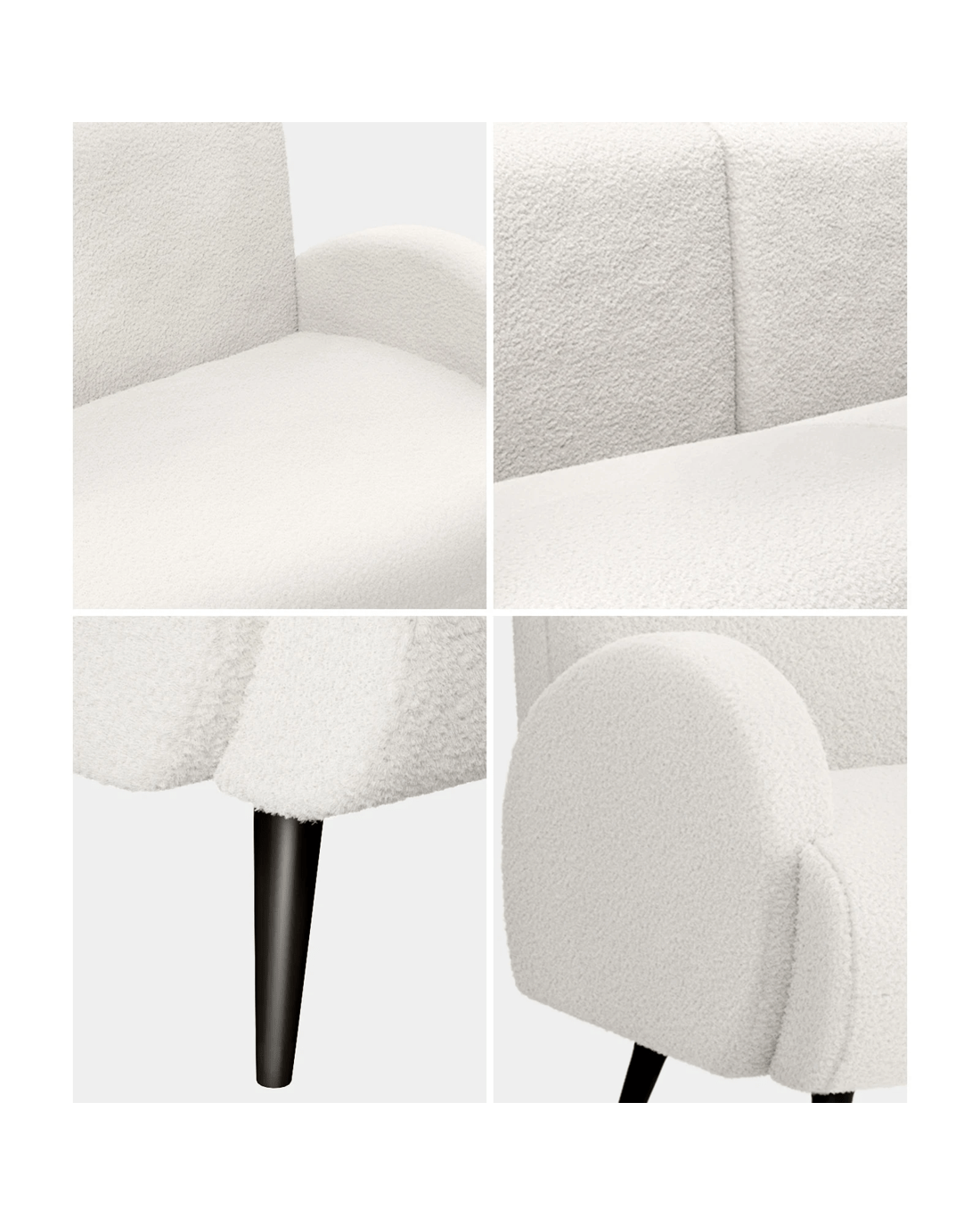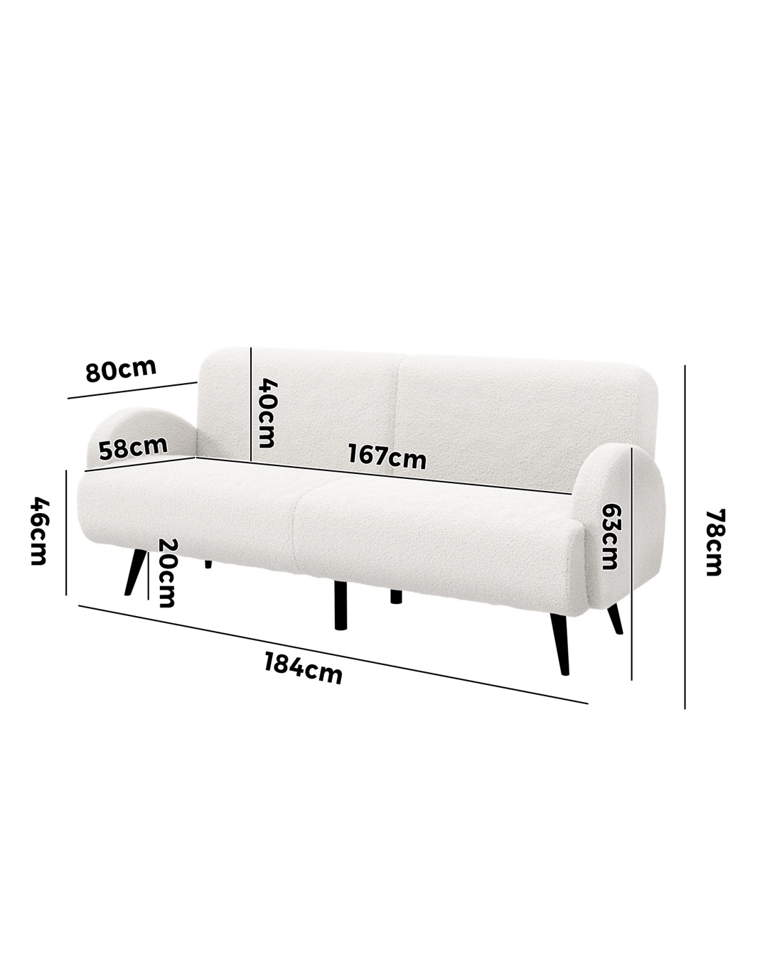 Couple with its sturdy solid wood construction and strong weight capacity upheld by six sturdy splayed black powdered-coated steel legs, the off-white Oikiture Fleece Sofa is definitely no lightweight performer. Complement your well-storied lifestyle with one today.