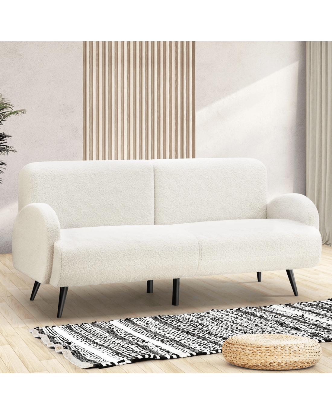 Oikiture Boucle Sofa Luxury 3 Seater Couch Fleece Chair Office Lounge - White