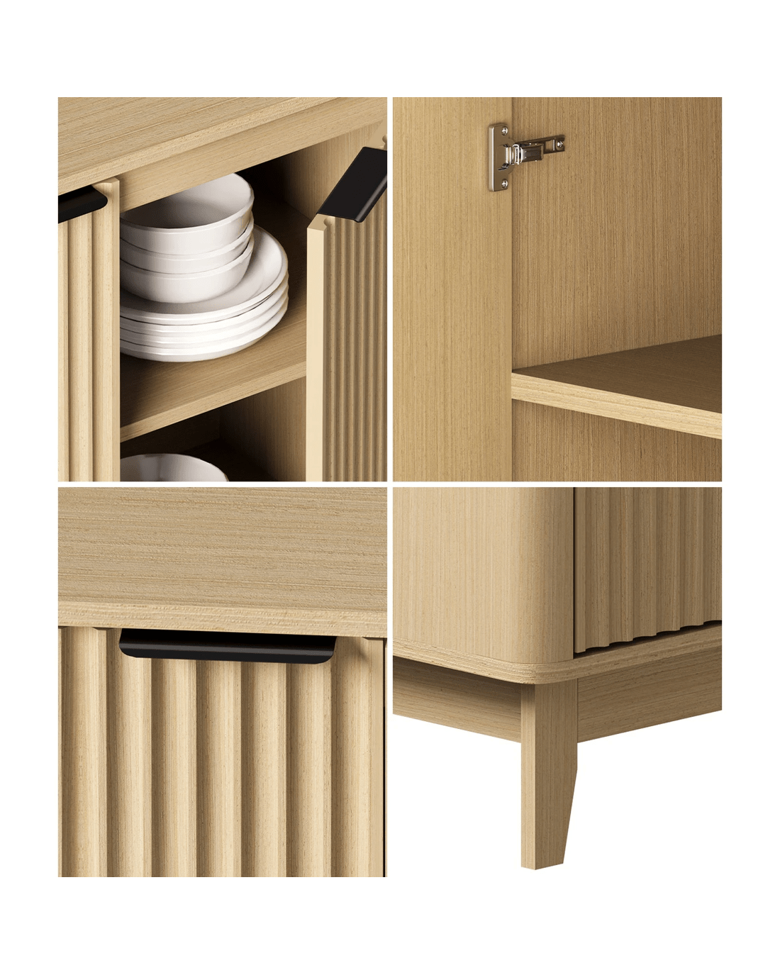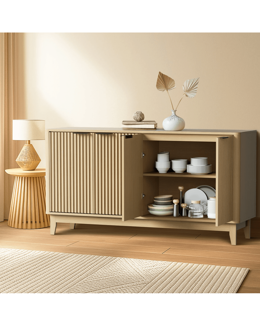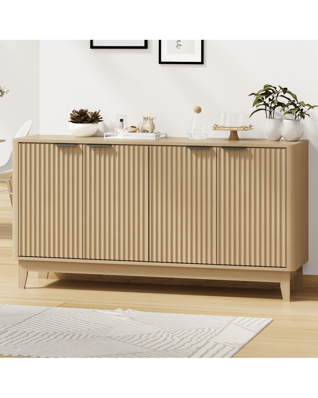 With a very practical and contemporary design, this Oikiture Sideboard features a clean profile with vertical grooved front door panels that speaks volumes of its commanding presence in any discerning home setting. First impressions are designed to captivate and this sideboard certainly does that perfectly with its generous display and storage space.