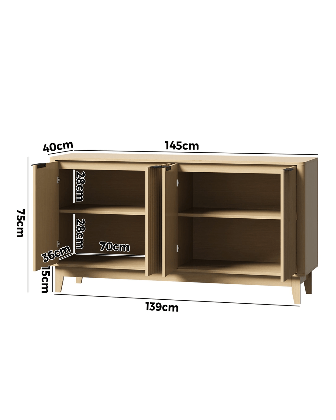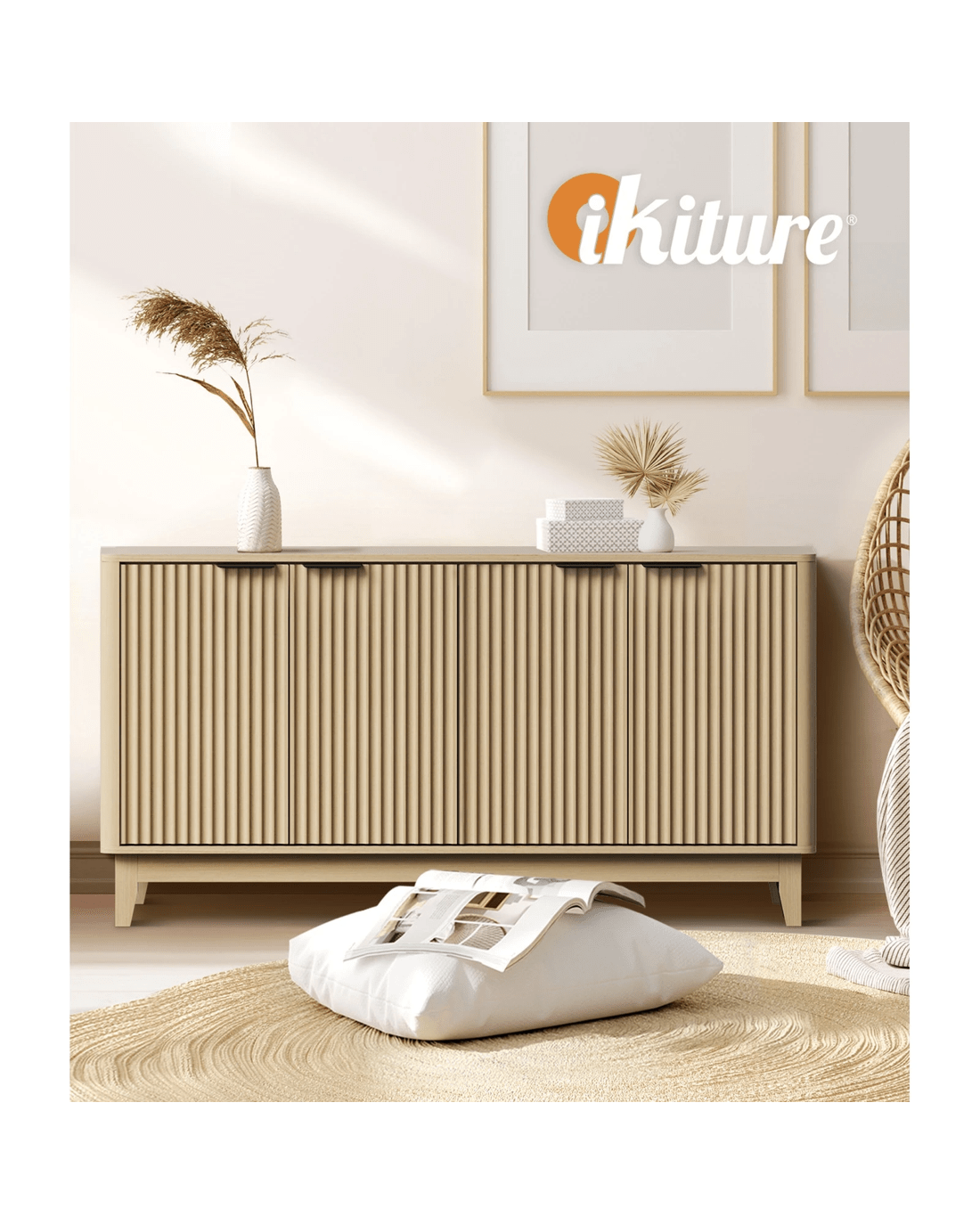 Sold by Kamprad's Oikos 1943Oikiture Buffet Sideboard Cabinet 4 Doors - Natural