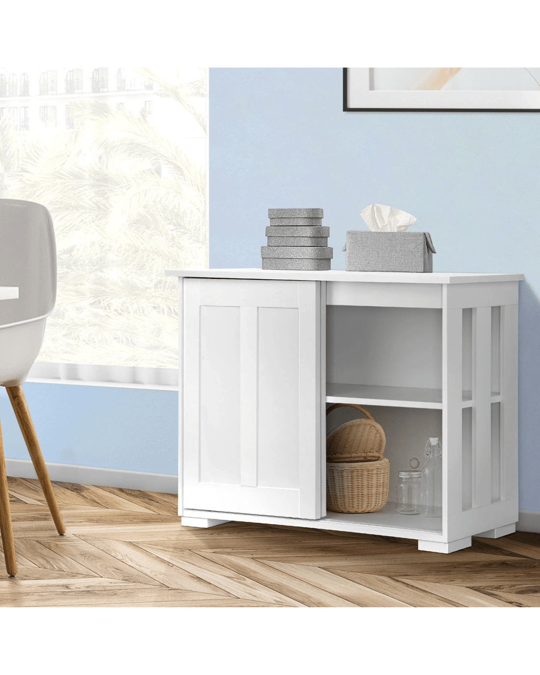 Practical yet modernize, Oikiture Sideboard is the perfect piece to spice up your hallway or bedroom. It has a simple design but crafted with practicality in mind - tuck away your bits and pieces in the storage shelves and sliding door mechanism that allows for moving space around it.