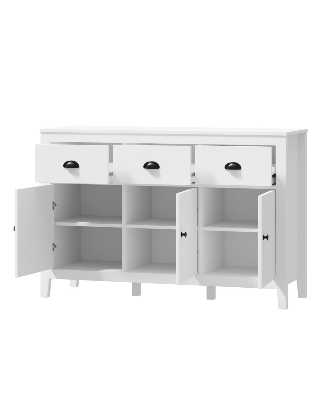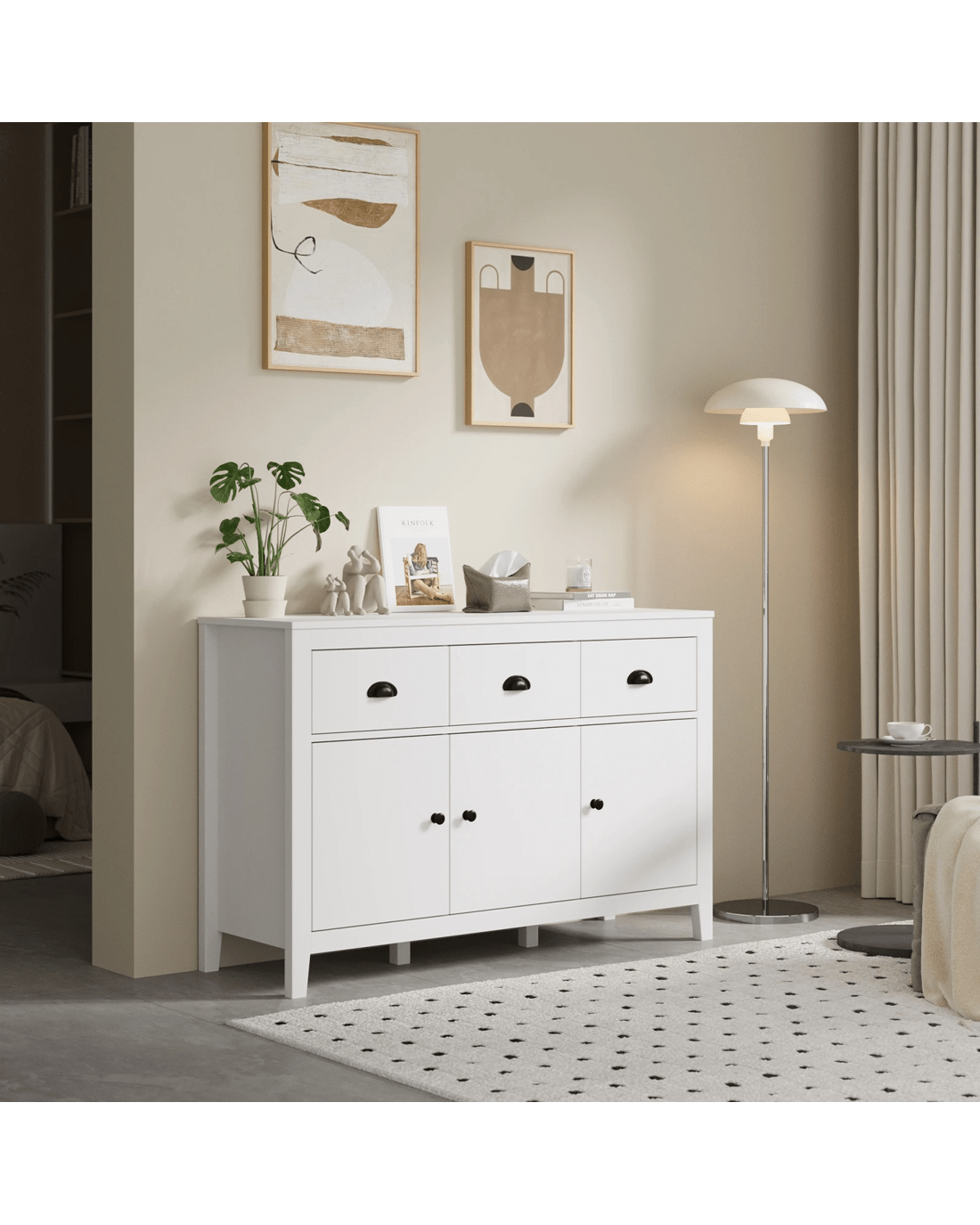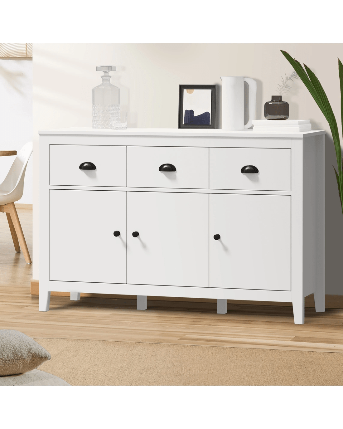 With its coastal-inspired design touches, this Oikiture Sideboard features a clean profile in chic blanc that speaks volumes of its elegant presence in any discerning home setting. First impressions are designed to captivate and this sideboard certainly does that perfectly with its generous display and storage space.