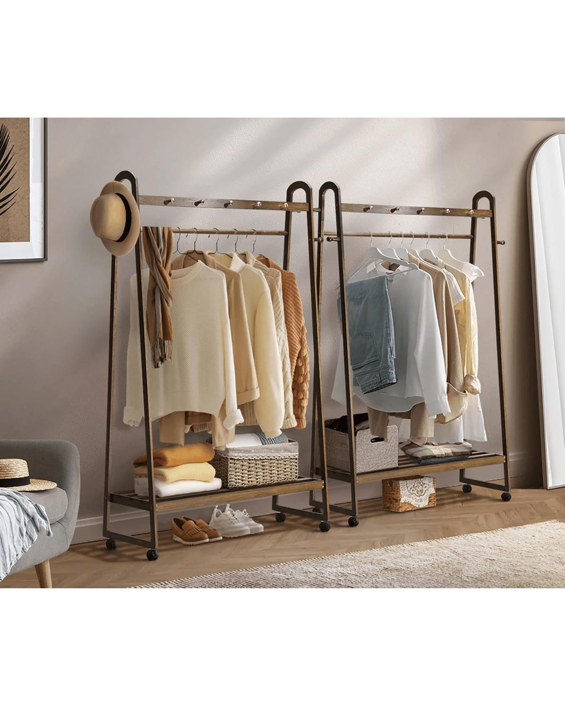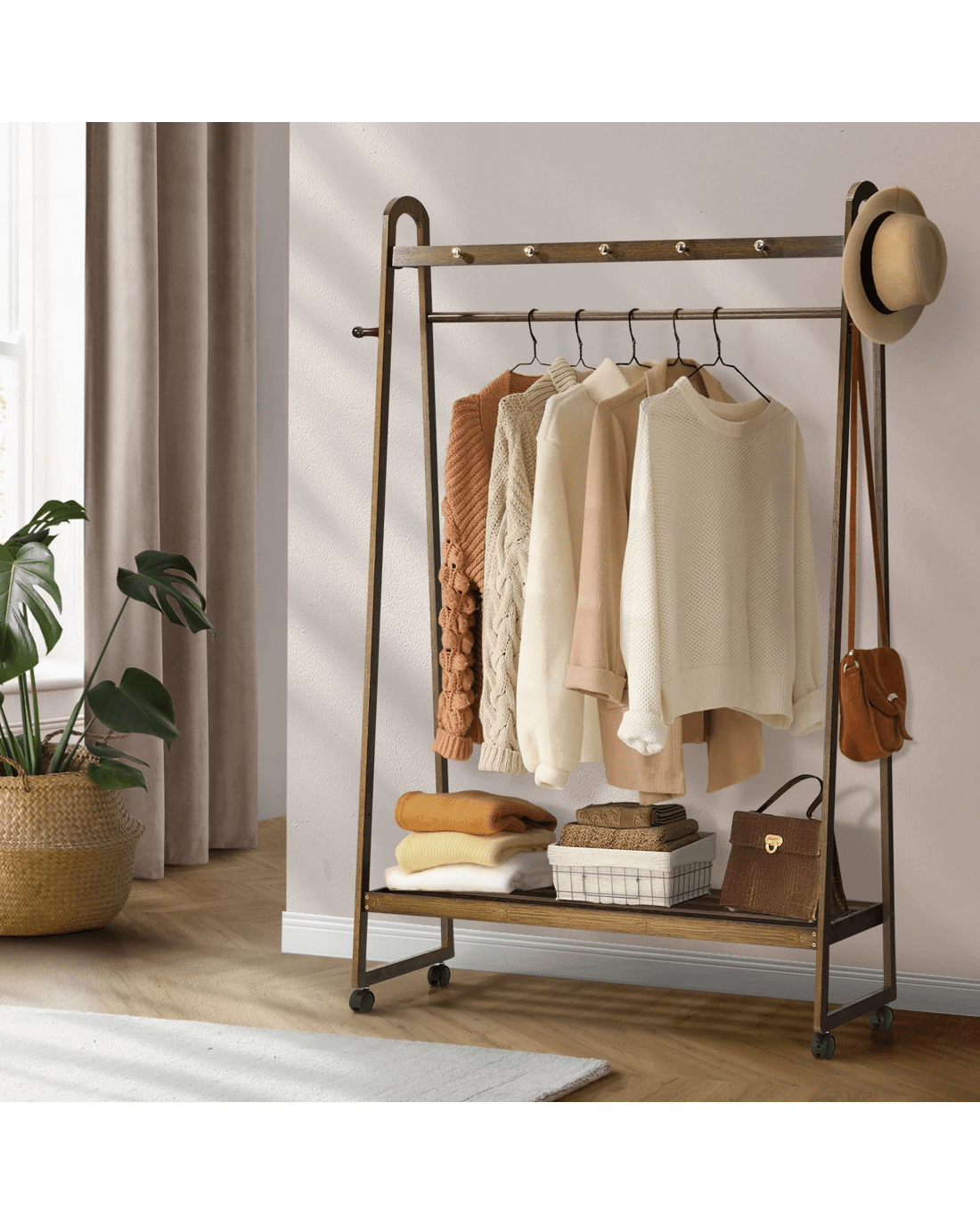 Looking for a wardrobe with some natural vibes? Then you have to fix your eyes on the Oikiture Bamboo Clothes Rack. Crafted from responsibly sourced bamboo, this open clothes rack represents eco-conscious living and style. Aesthetically pleasing and naturally calming. Functionally, it has all the necessary features to let you store and arrange your clothes neat, tidy and organized. A strong hanging bar, hanging beam with five hooks and a single rack shelf are all in place to hang, hook and store your clothes and wearing accessories with ease. Never again do you have to turn the wardrobe inside out to find that missing piece of clothing. Its open concept means that everything is in plain sight. Structurally, the clothes rack is built to withstand constant use whilst the lockable castor wheels enable the clothes rack to be shifted around with minimum hassles and locked in place easily. Assembly is quick and simple with the easy-to-follow instructions and all you need is an effortless wipe with a clean, damp cloth to maintain the clothes rack in its pristine condition. So hesitate no more. Get your Oikiture Bamboo Clothes Rack today. After all, it's the perfect rationale for some new threads as well.