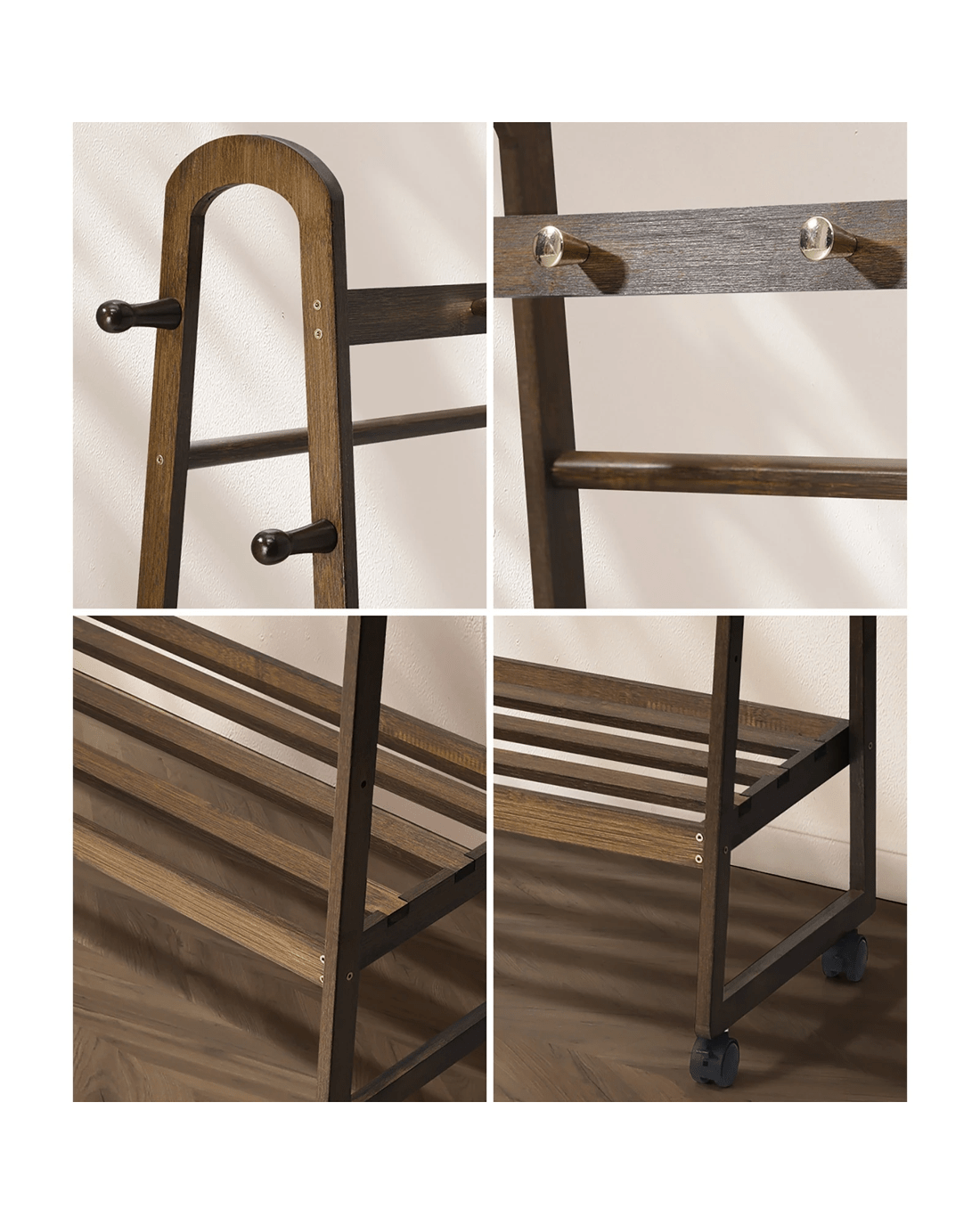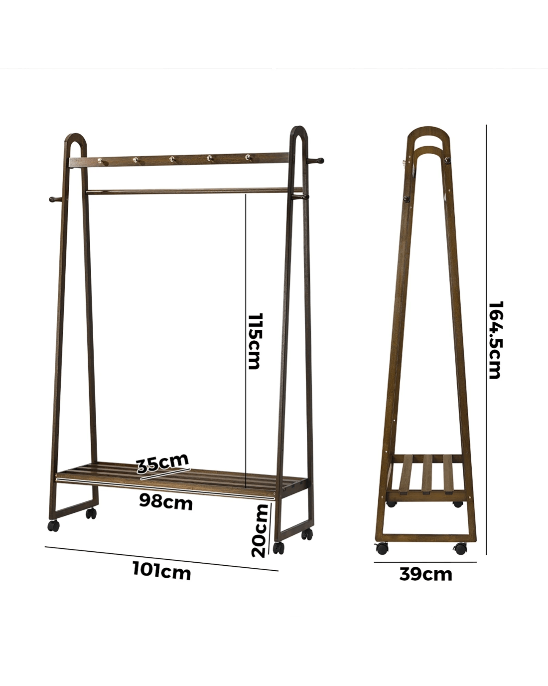 Sold by Kamprad's Oikos 1943Oikiture Clothes Rack Garment Coat Stand Hanging Rail Bamboo Portable Wheels - Natural