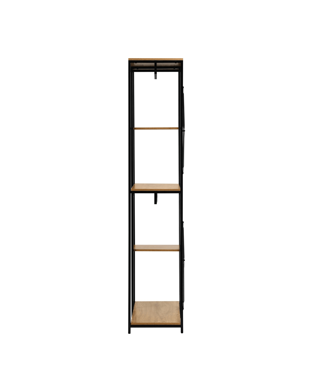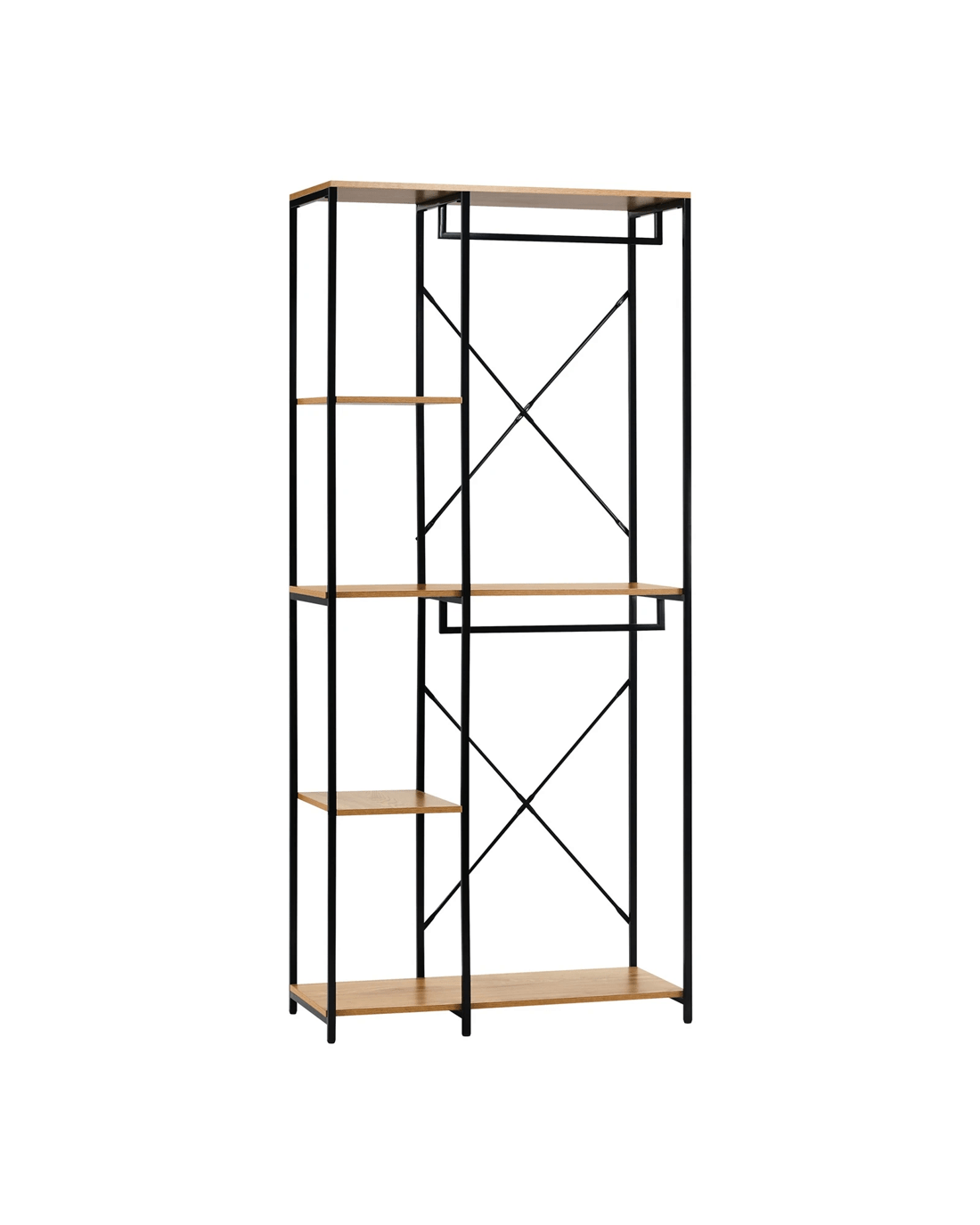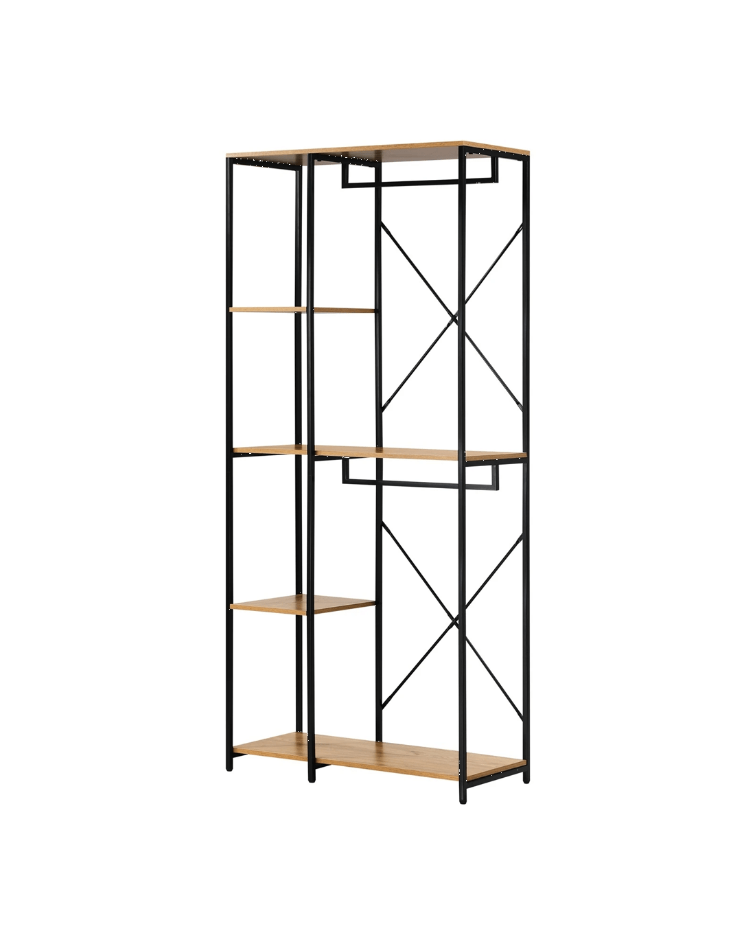 Built with durability in mind, our open wardrobe boasts a robust construction that ensures stability and longevity. The industrial-inspired design, complete with metal accents, adds character to your room while maintaining a practical and organized living space.