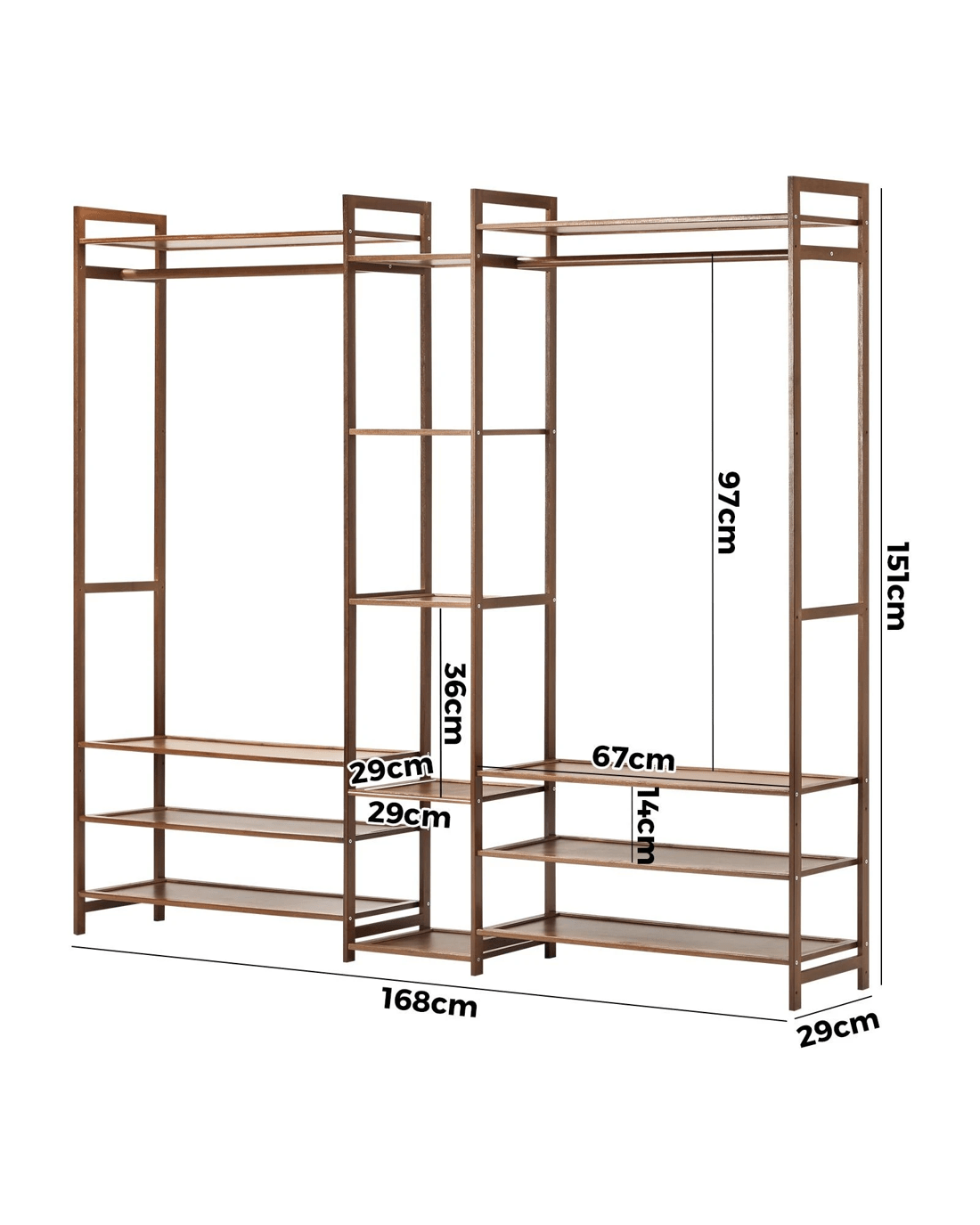 Sold by Kamprad's Oikos 1943Oikiture Clothes Rack Open Wardrobe Garment Coat Hanging Rail Bamboo 13 Shelves - Natural
