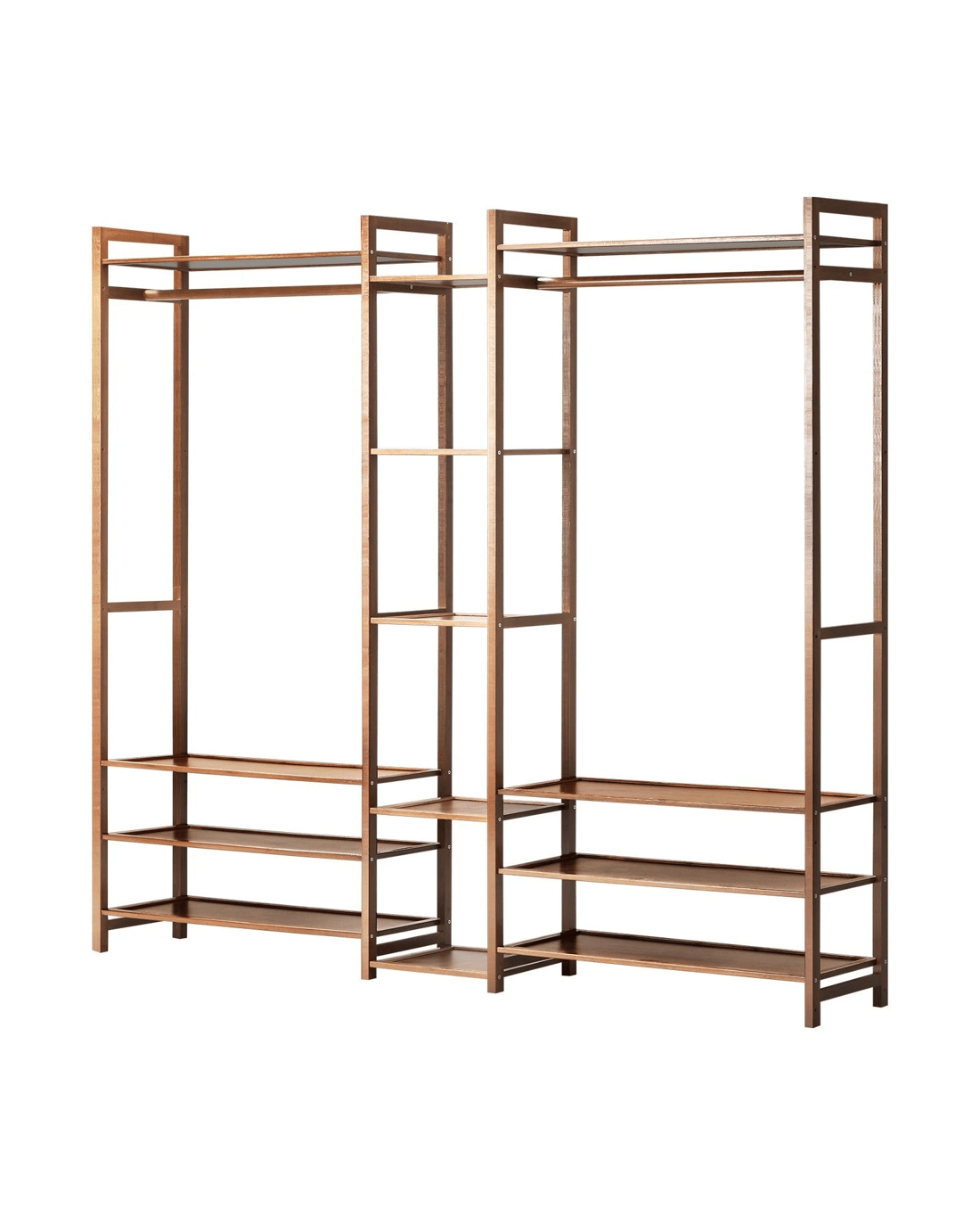 Practicality meets aesthetics in this wardrobe's open layout. Your clothing, shoes, and accessories are easily accessible, and you have the flexibility to hang garments, stack folded items, or use shelves for storage bins.