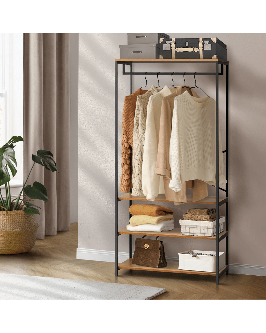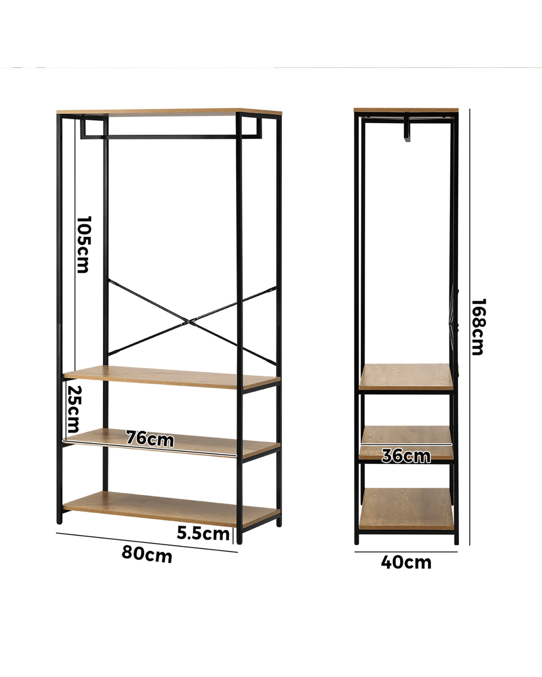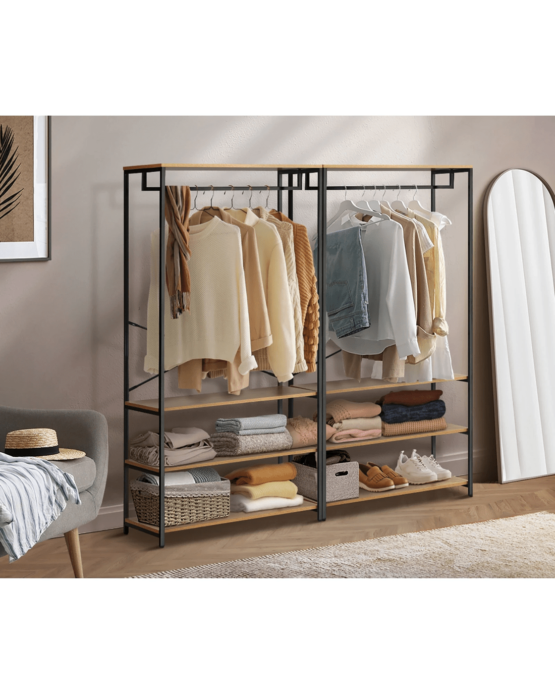 Transform your bedroom or dressing area into a statement of modern style and functional elegance with our Oikiture industrial open wardrobe. Elevate your organizational game with this unique piece that not only adds visual interest but also enhances the overall aesthetic of your living space. Welcome a wardrobe that speaks to both fashion and functionality, creating an urban retreat within the comfort of your home.