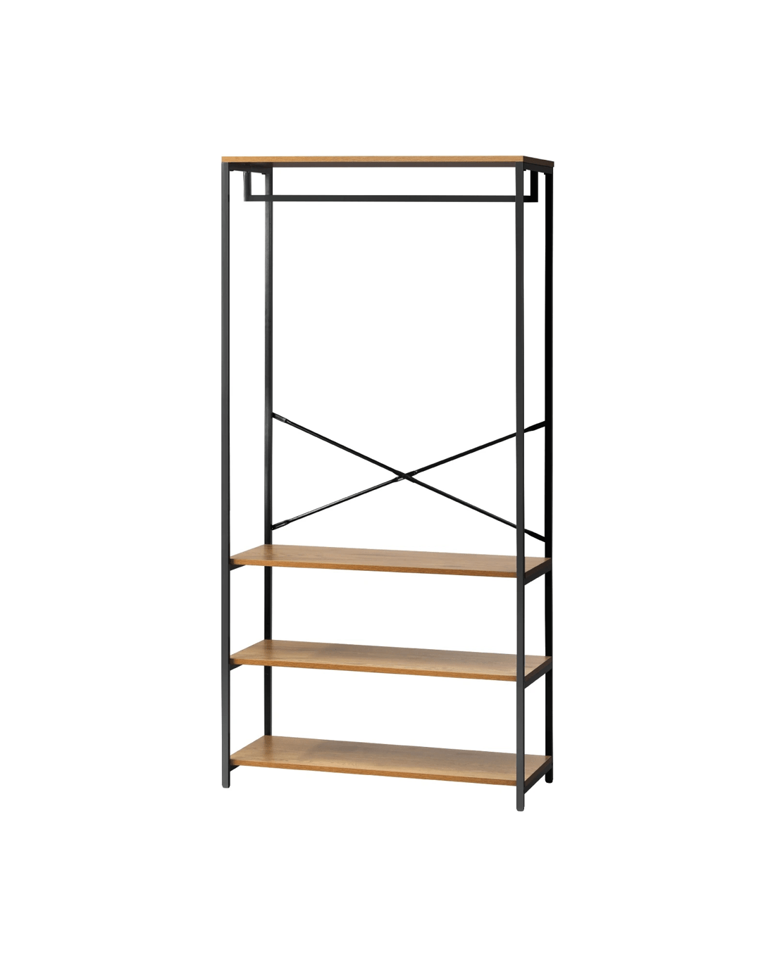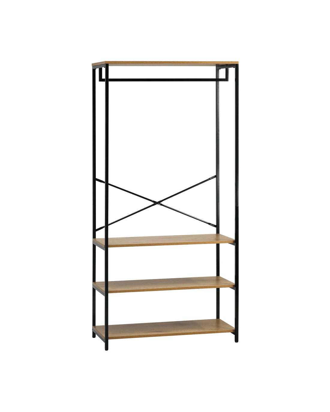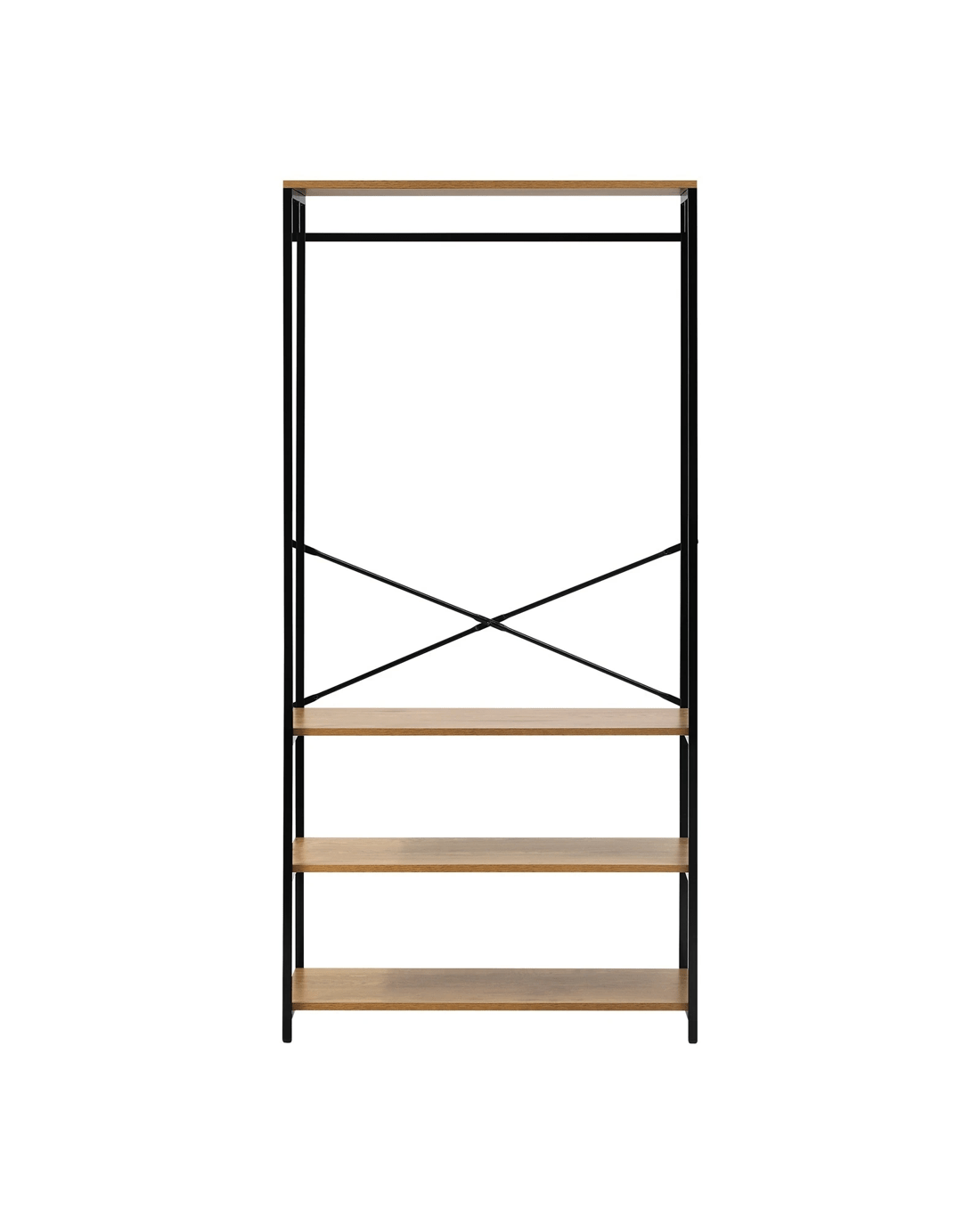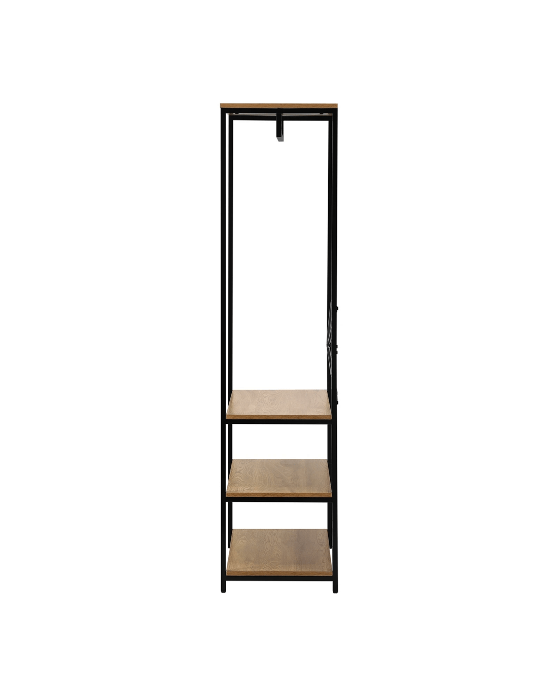 Built with durability in mind, our open wardrobe boasts a robust construction that ensures stability and longevity. The industrial-inspired design, complete with metal accents, adds character to your room while maintaining a practical and organized living space.