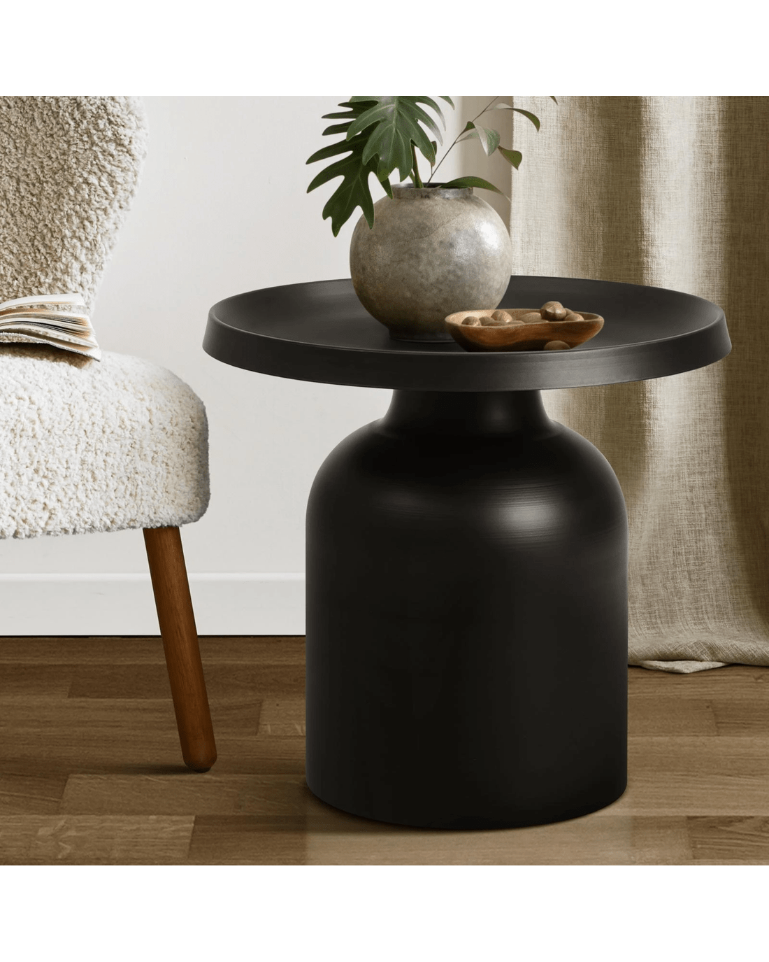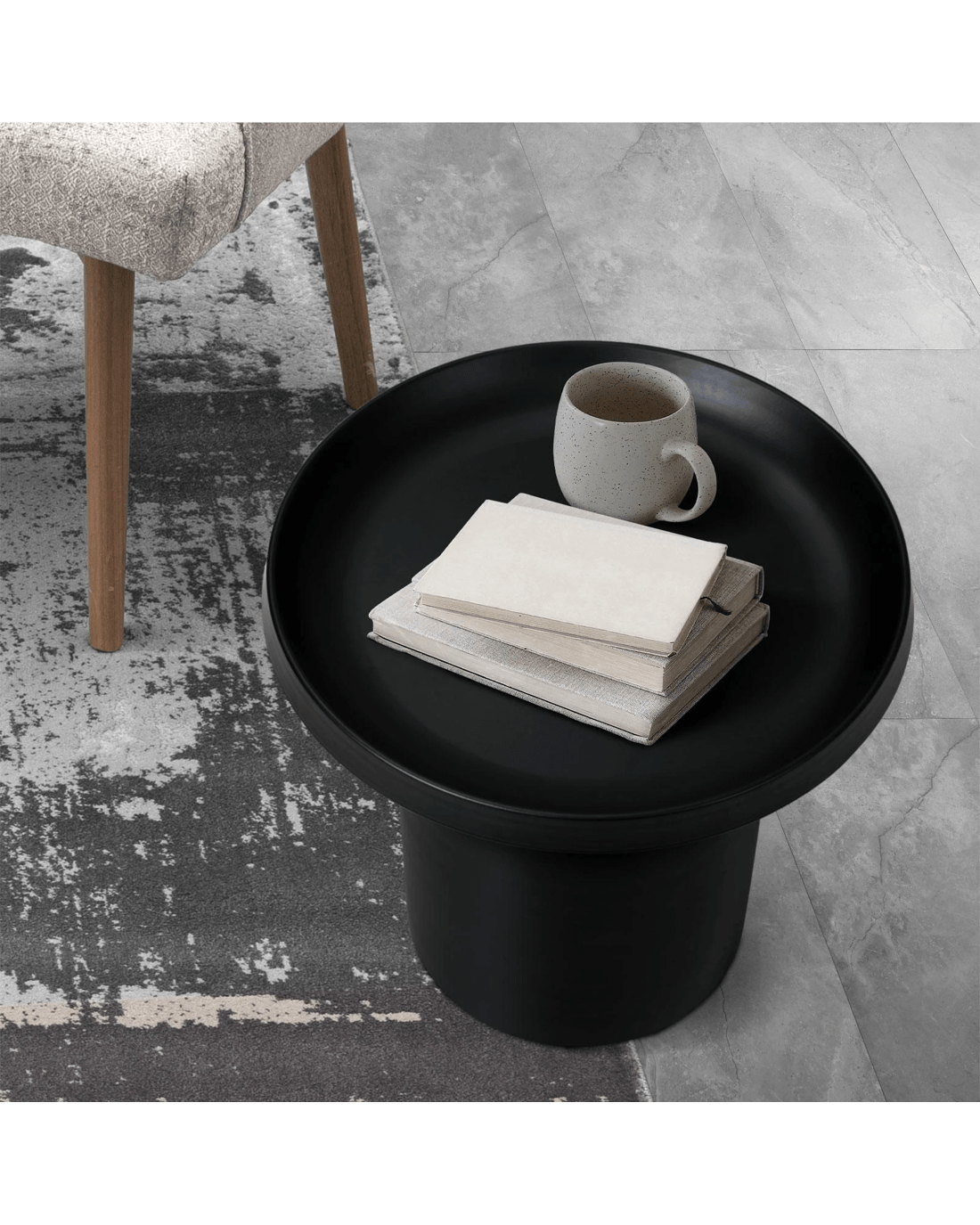 Oikiture Coffee Side Table Round Bedside Sofa Tea End Tables Steel Metal - Black