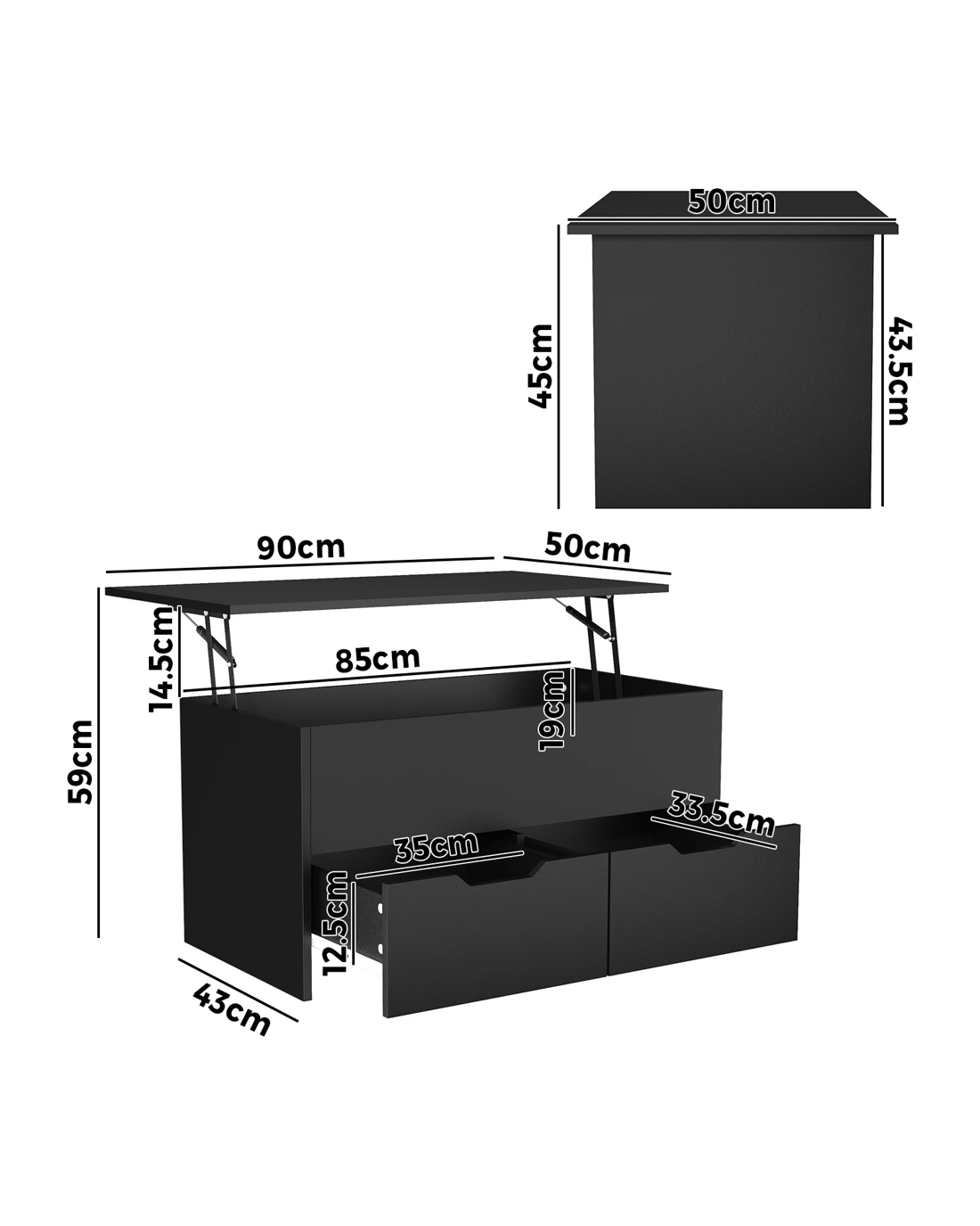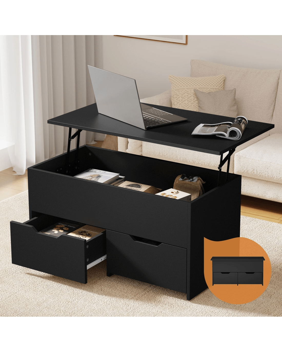 Sold by Kamprad's Oikos 1943Oikiture Coffee Table Lift Up Top With Drawers Hidden Book Storage Black - Black