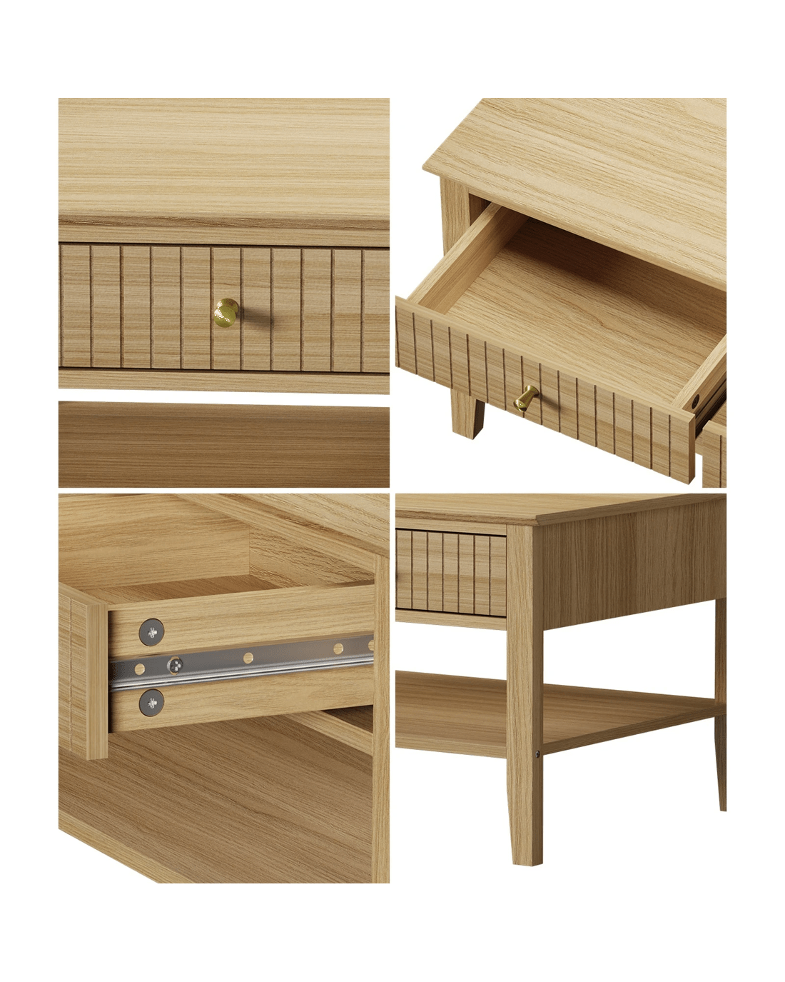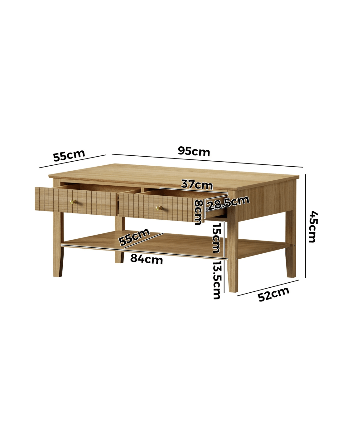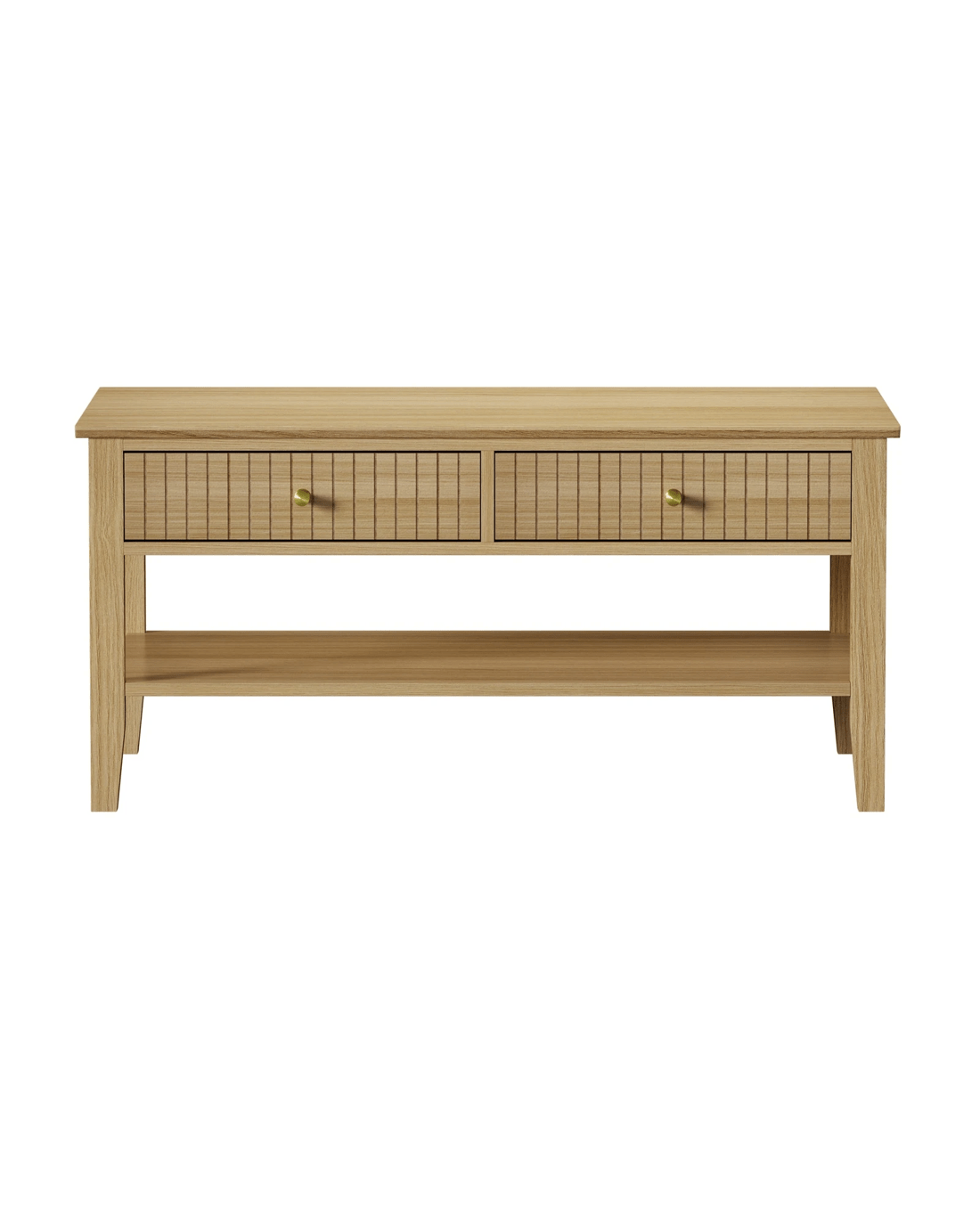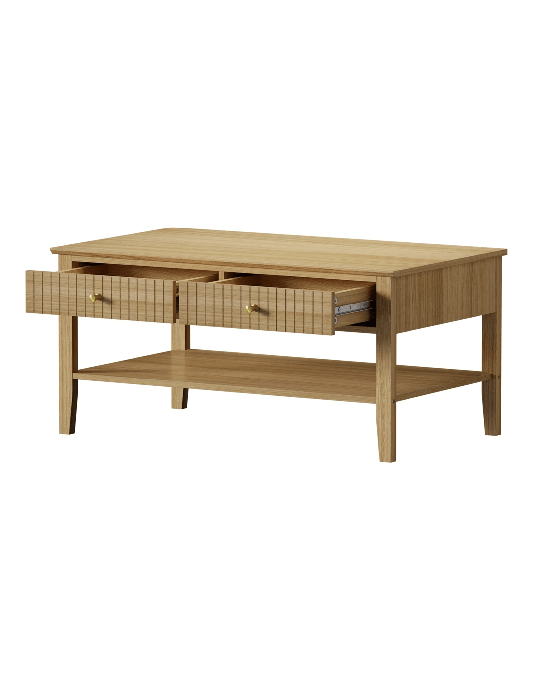 Oikiture Coffee Table Rectangle Table Side Storage Drawers Shelving - Natural