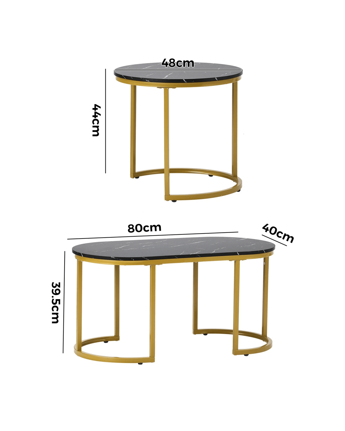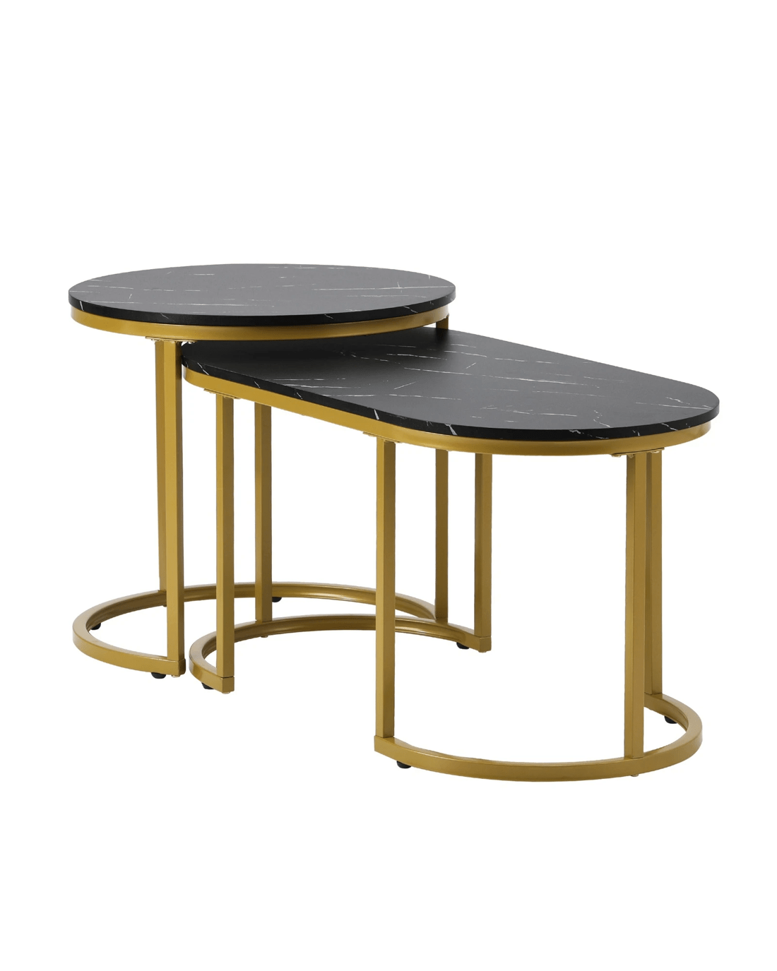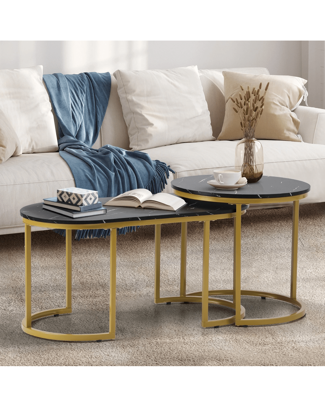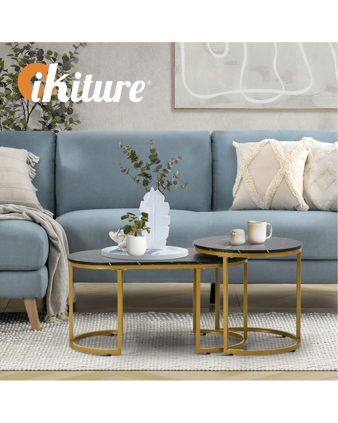 Sold by Kamprad's Oikos 1943Oikiture Coffee Table Set Of 2 Nesting Side End Tables Marble Effect - Black