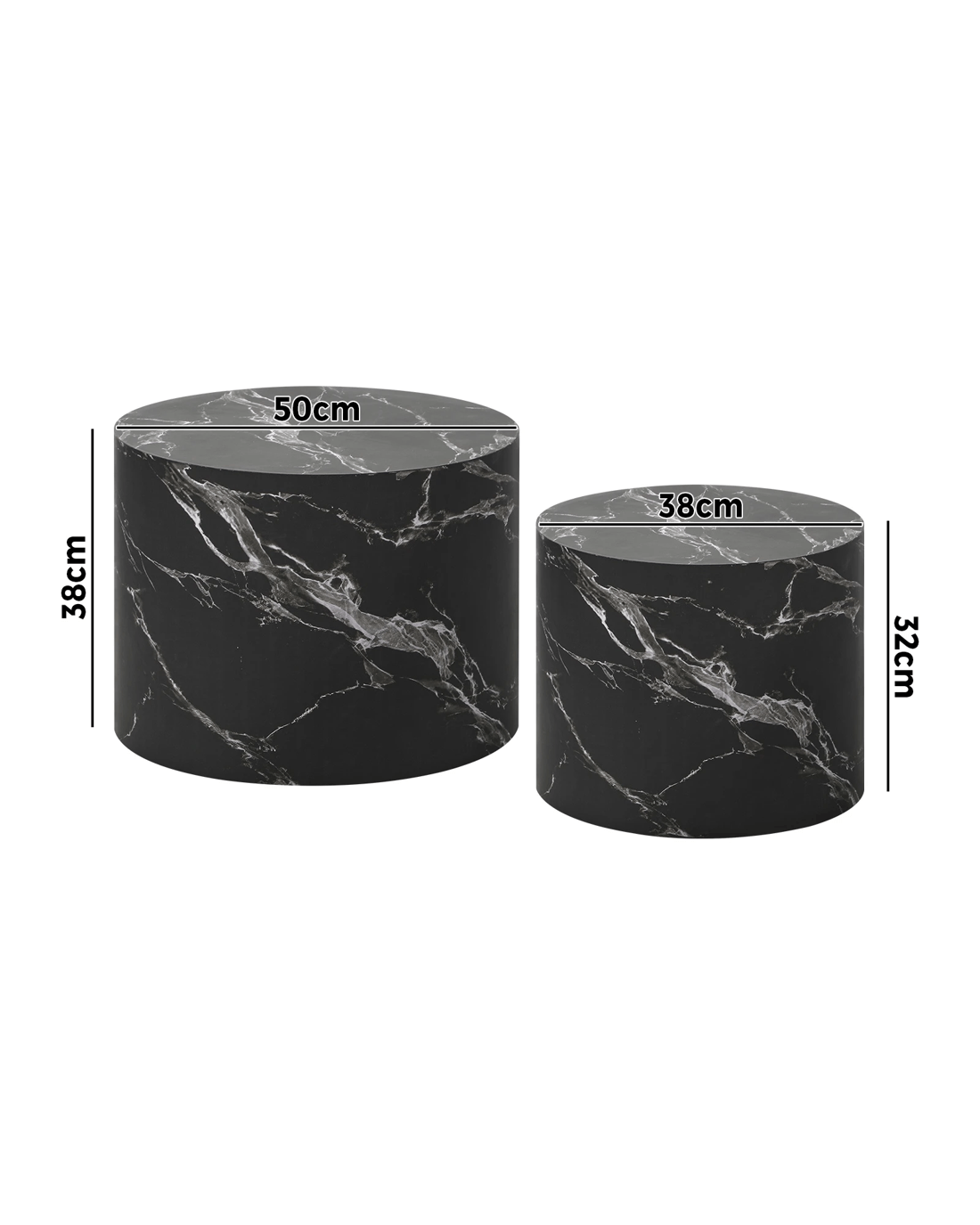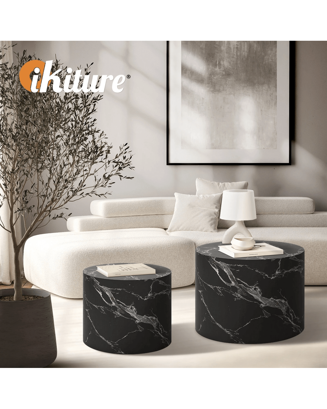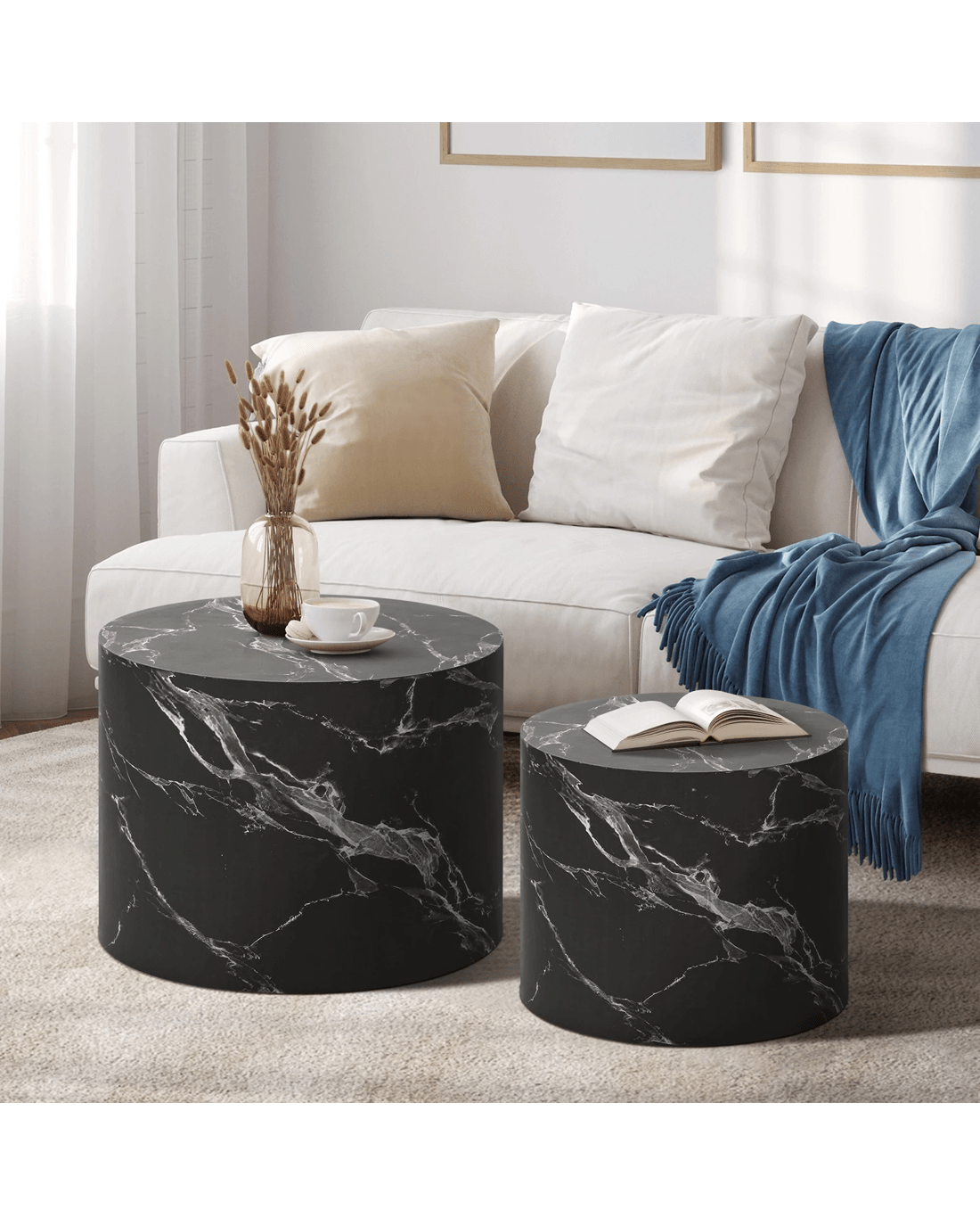 Sold by Kamprad's Oikos 1943Oikiture Coffee Table Set Of 2 Round Side Tables Sofa Cafe Marble Effect - Black