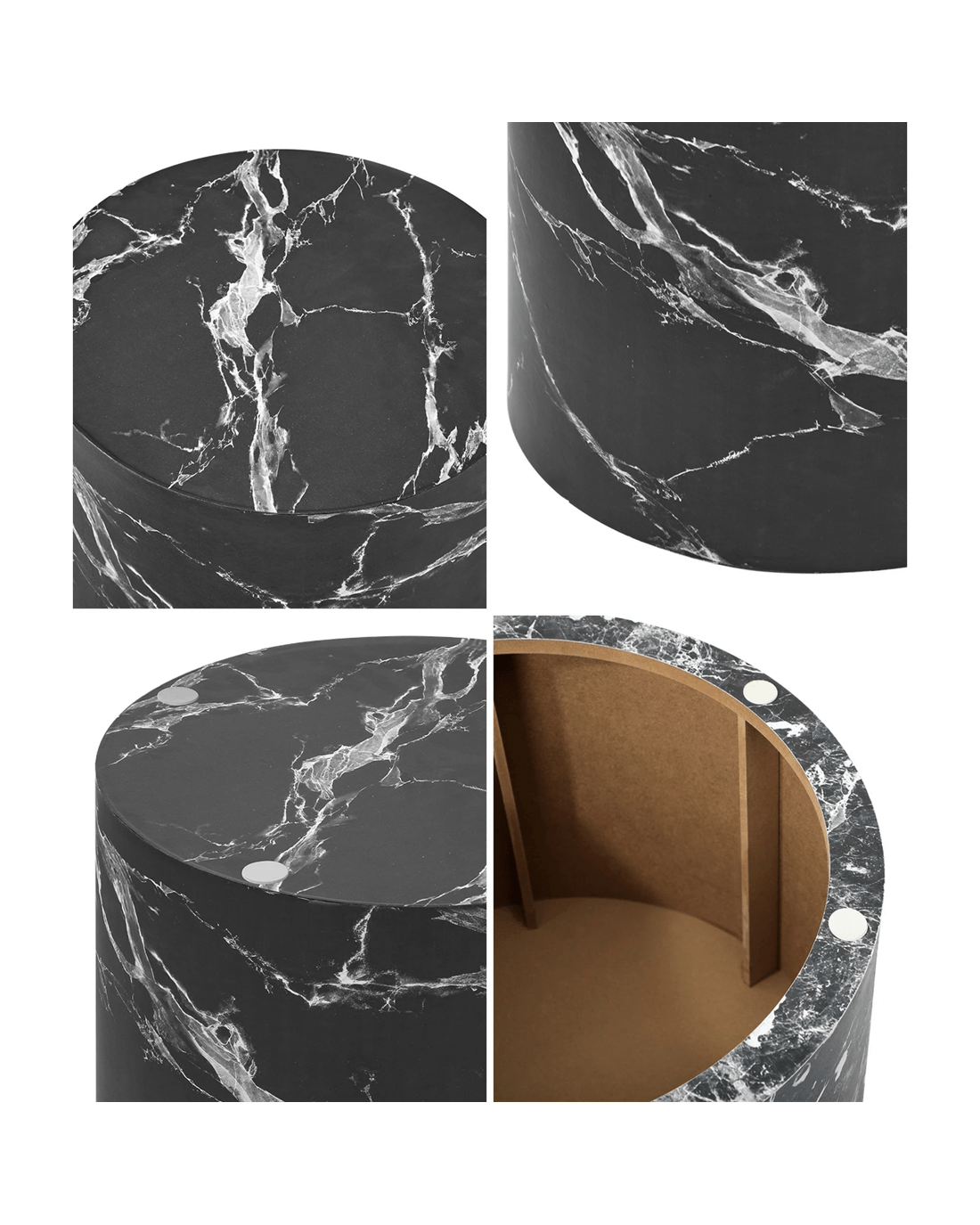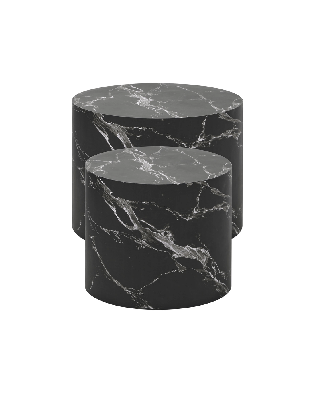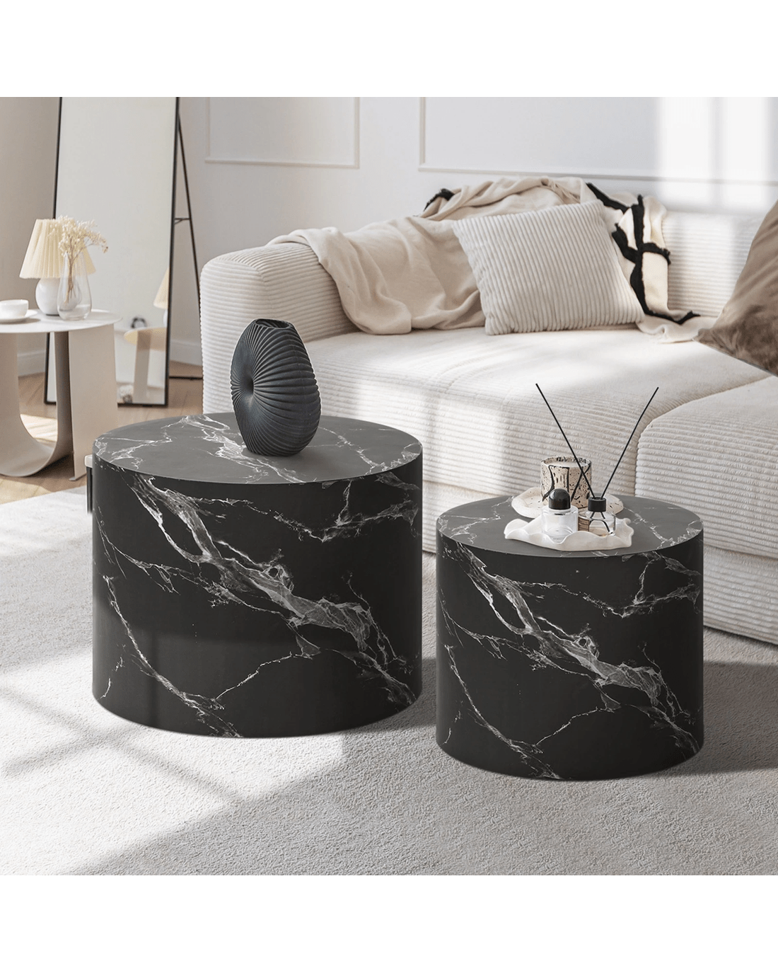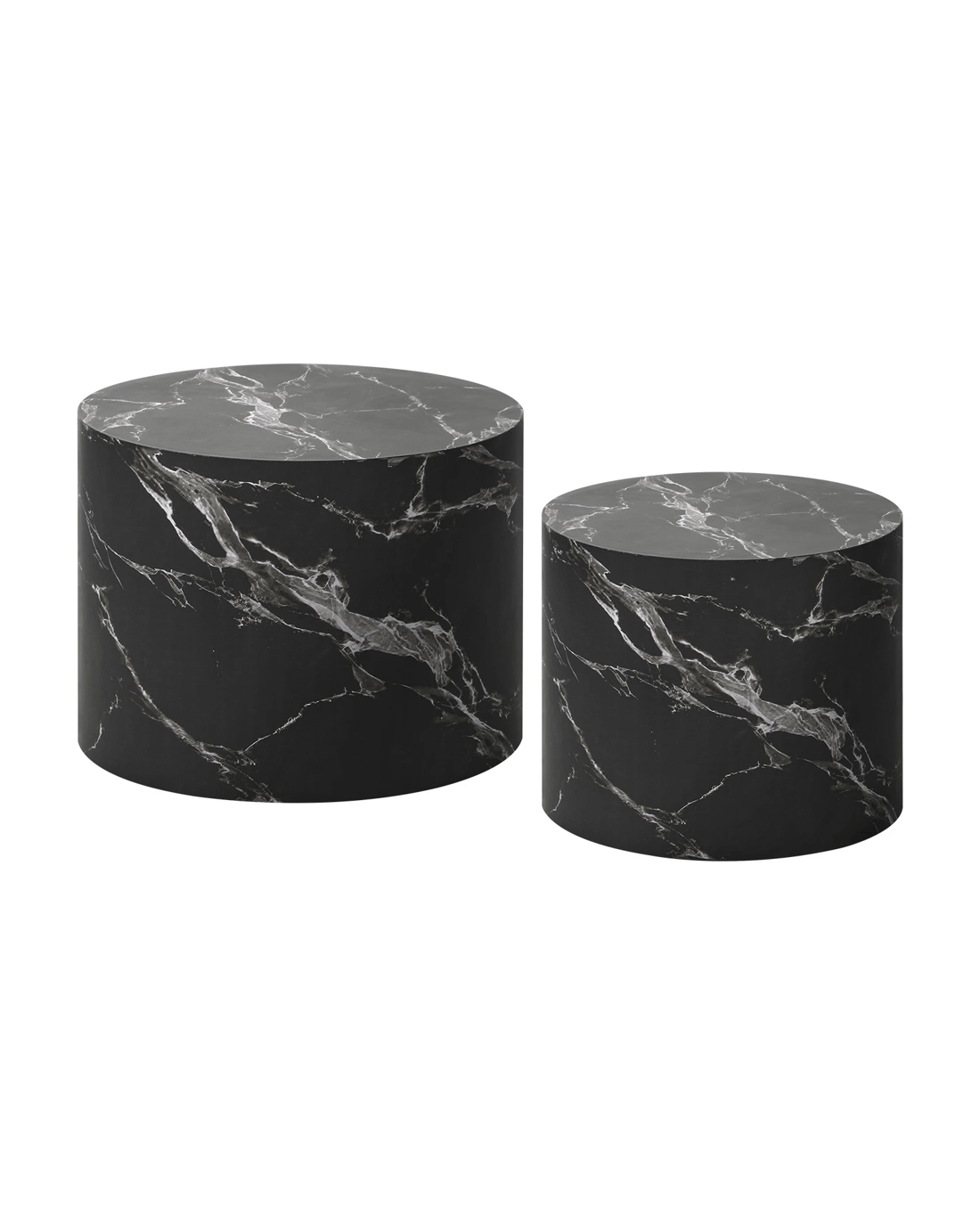 Sold by Kamprad's Oikos 1943Oikiture Coffee Table Set Of 2 Round Side Tables Sofa Cafe Marble Effect - Black