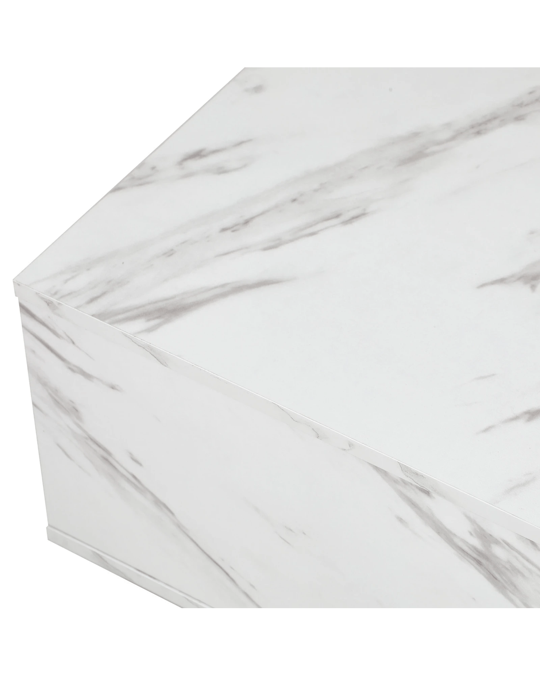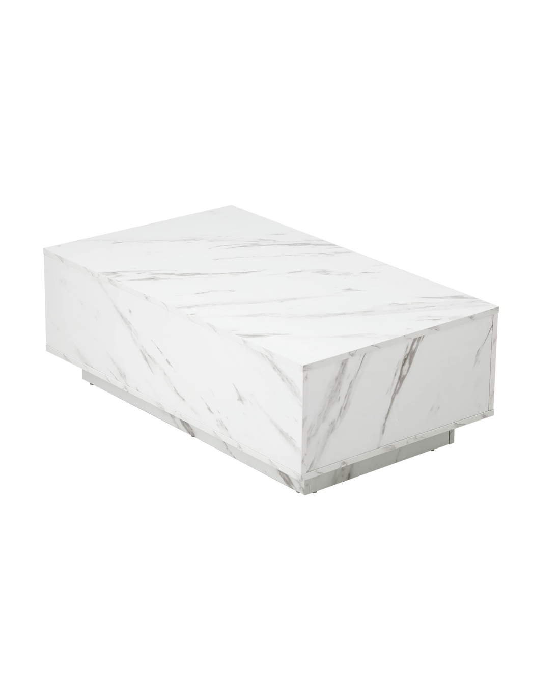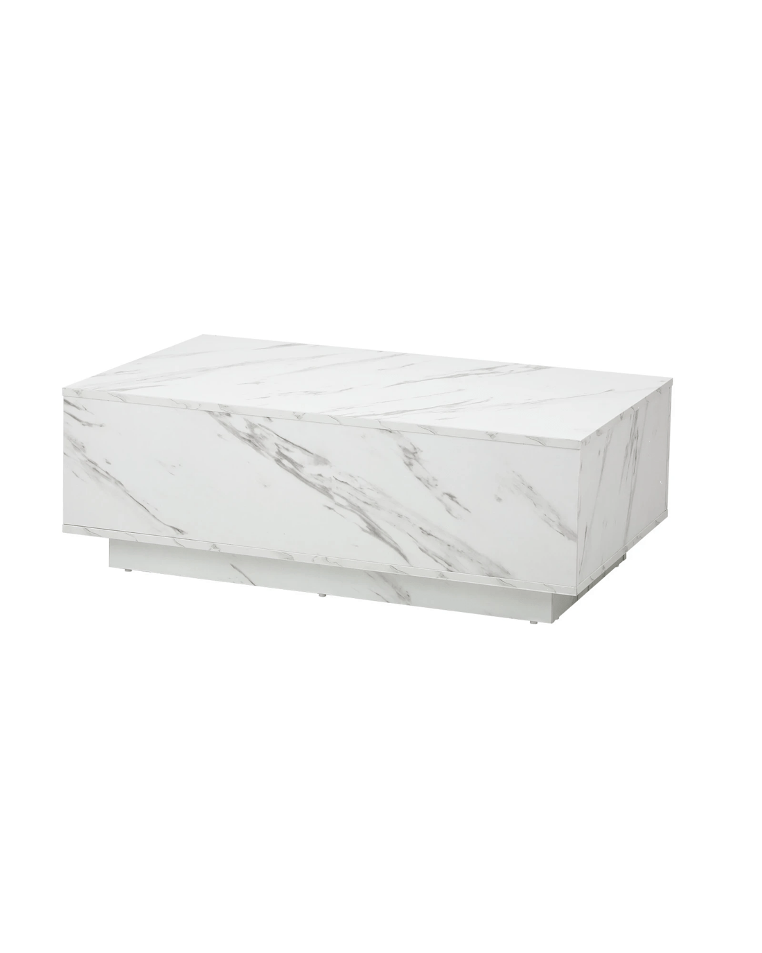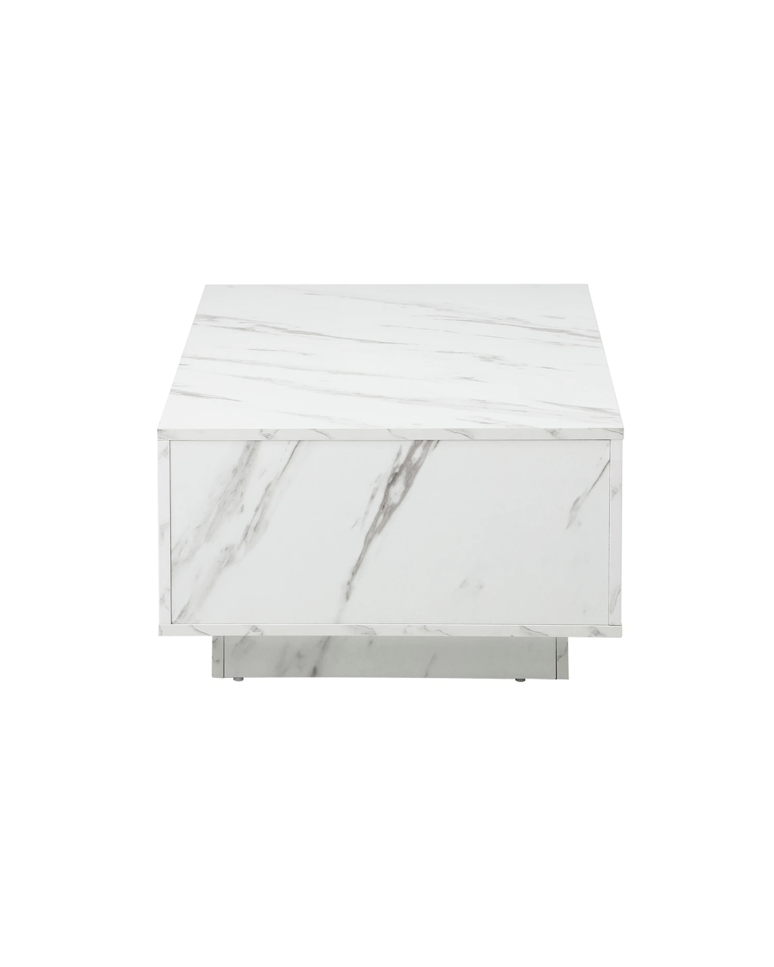 Clad with a marble-effect melamine finish to simulate real marble, this large plinth coffee table is absolutely stunning with lots of classic overtones. Particularly if your home decor is skewed towards a more opulent lifestyle. You will also notice the natural flow of the grain book-matched over the edges for a seamless look. Little details that mean a lot.