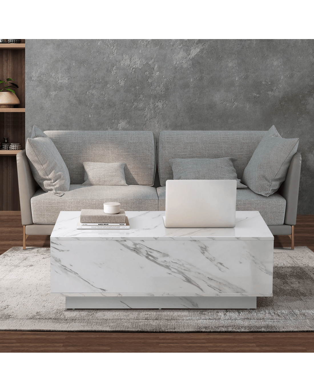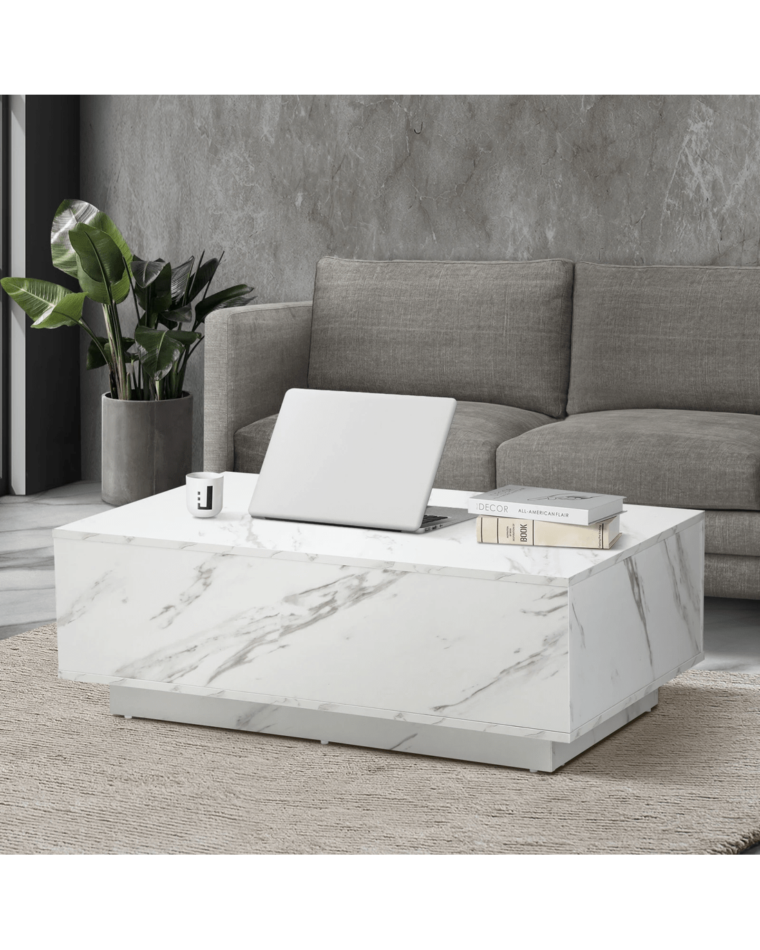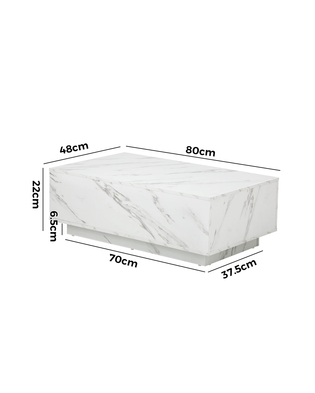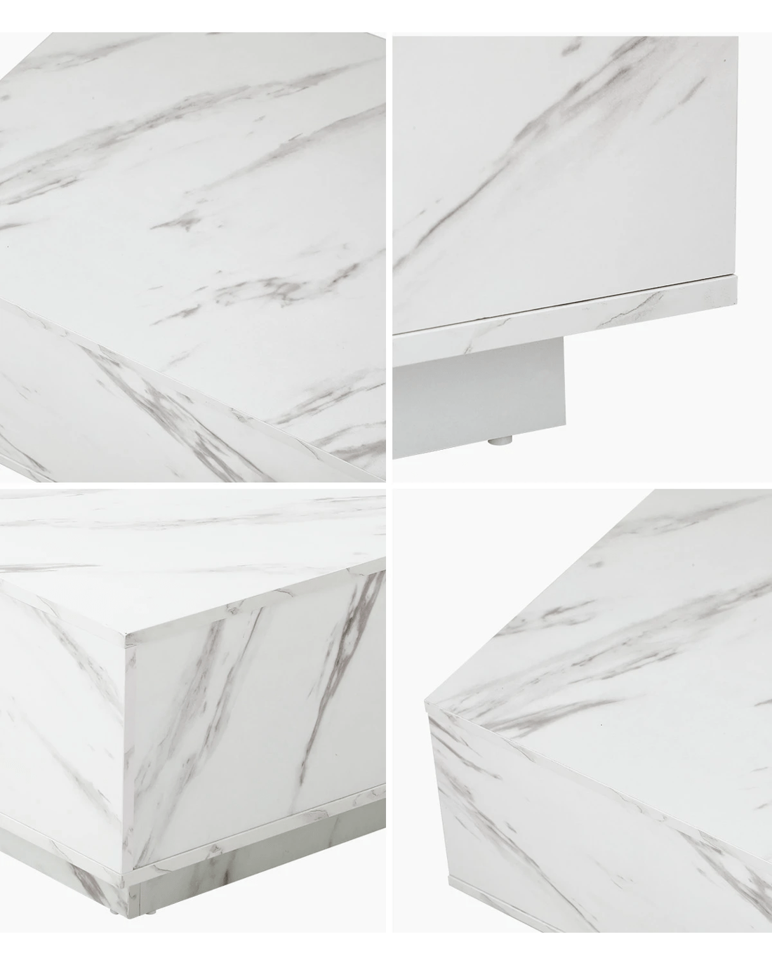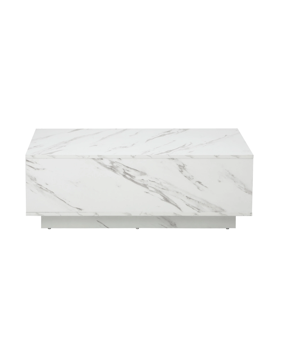 Clad with a marble-effect melamine finish to simulate real marble, this large plinth coffee table is absolutely stunning with lots of classic overtones. Particularly if your home decor is skewed towards a more opulent lifestyle. You will also notice the natural flow of the grain book-matched over the edges for a seamless look. Little details that mean a lot.