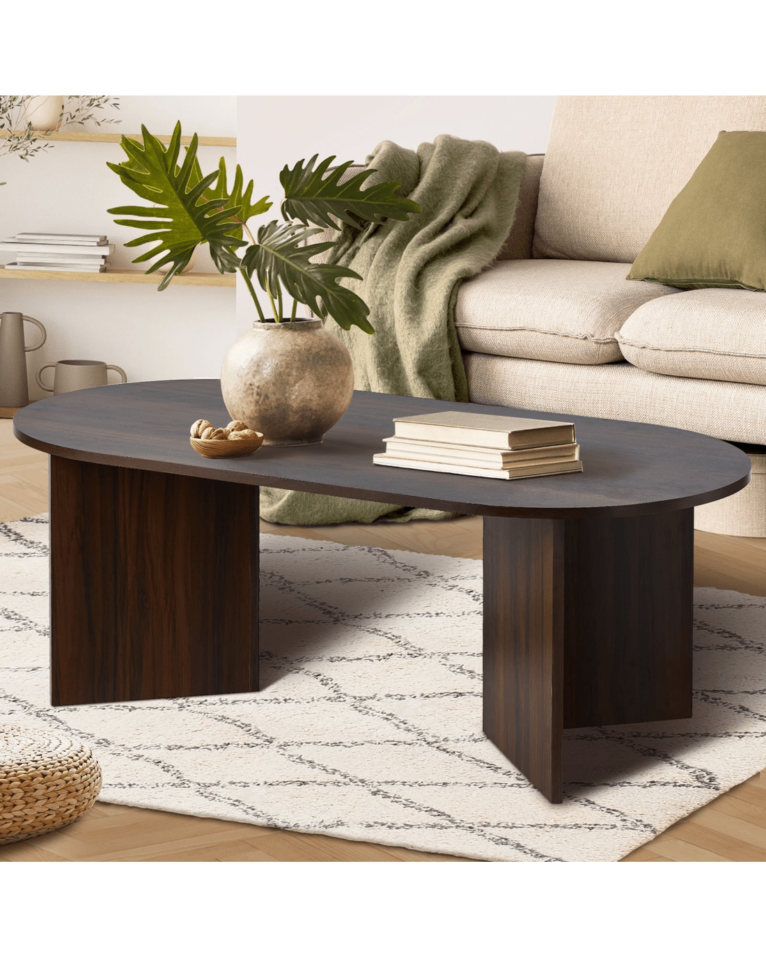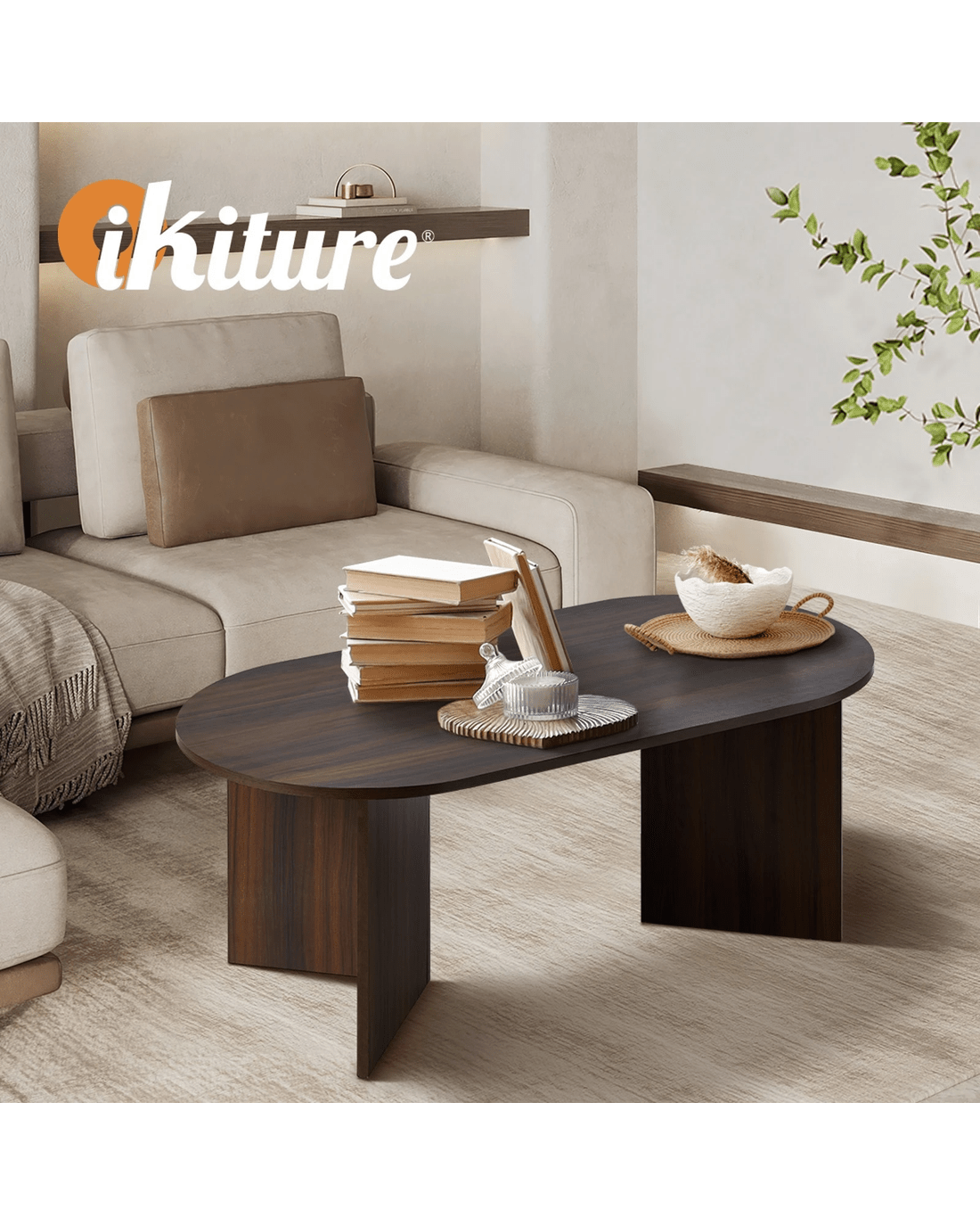 Sold by Kamprad's Oikos 1943Oikiture Coffee Table Sofa End Table Oval Side Cafe Desk Timber - Brown