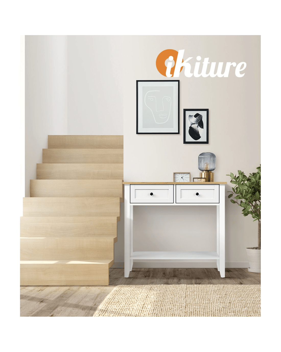 Crafted from quality materials for durability and style, our console table is designed to complement your home decor and give you the closed and open storage space to put things away when you need to. Wait no more. Get a Oikiture Console Table today to set things up beautifully.