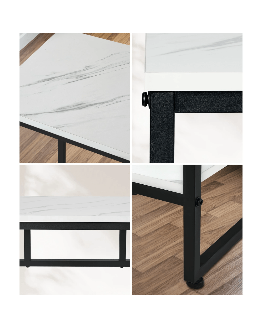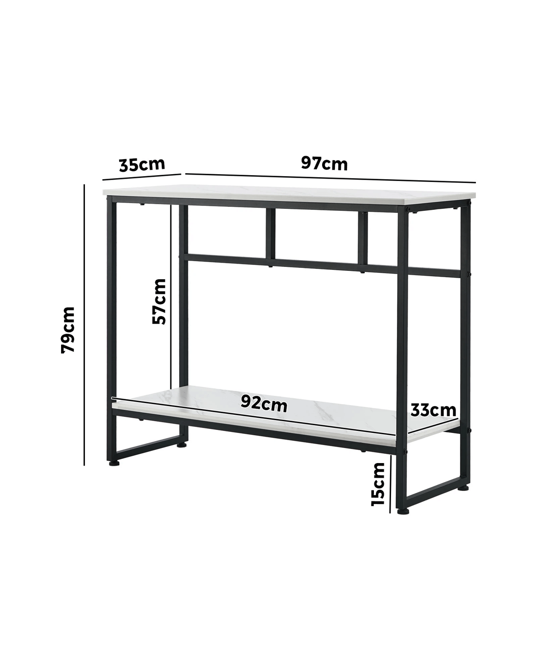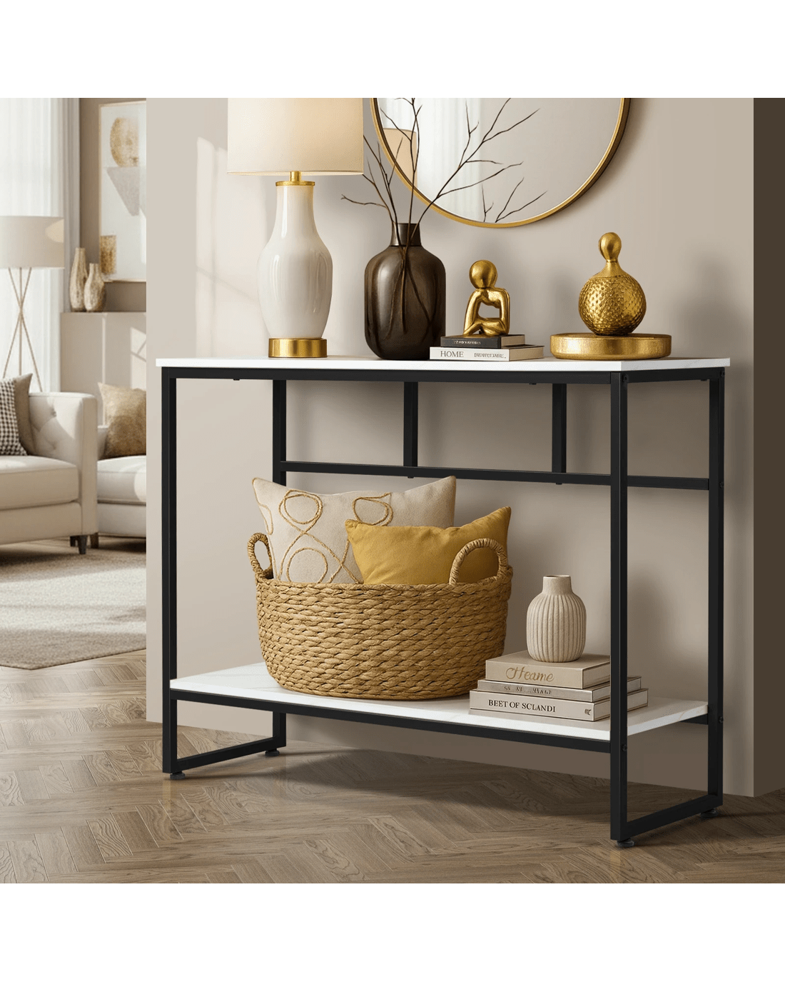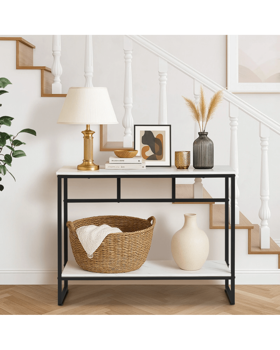Crafted with high-quality materials with close attention to details, our console table is built to last. The sturdy powder-coated metal frame provides a solid structure for the console table, while the smooth and marble-like twin tabletops offer a sleek and sophisticated surface for displaying decorative items or everyday essentials. The clean lines and sleek design will complement any decor style with ease. Better still, its presence need not be at just the hallway but in every living space or room that warrants your creativity and imagination.