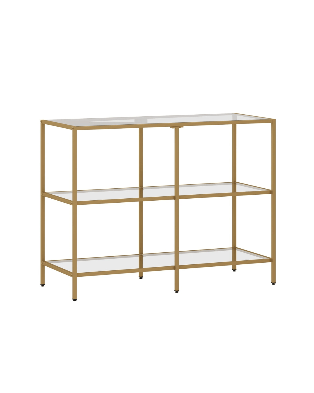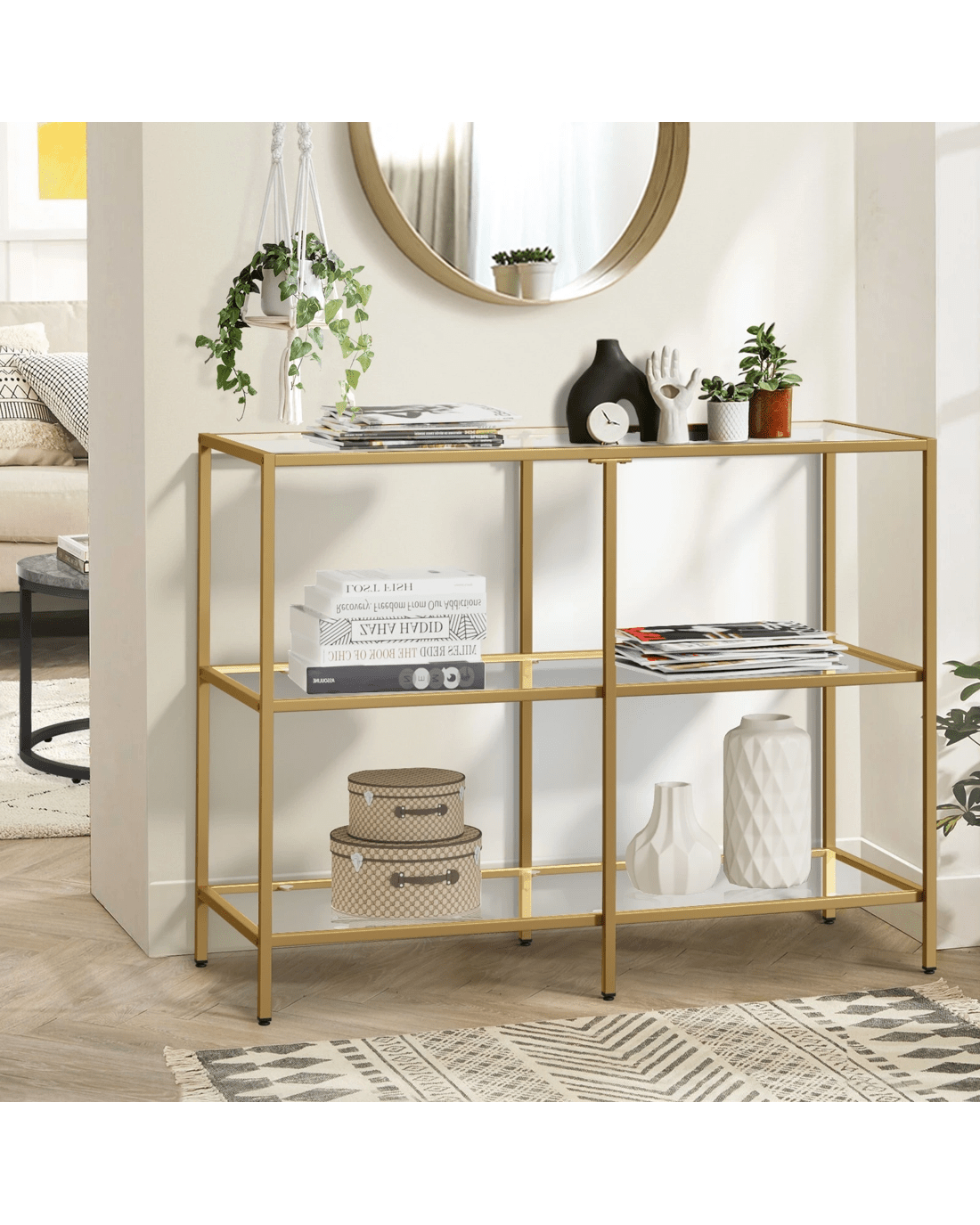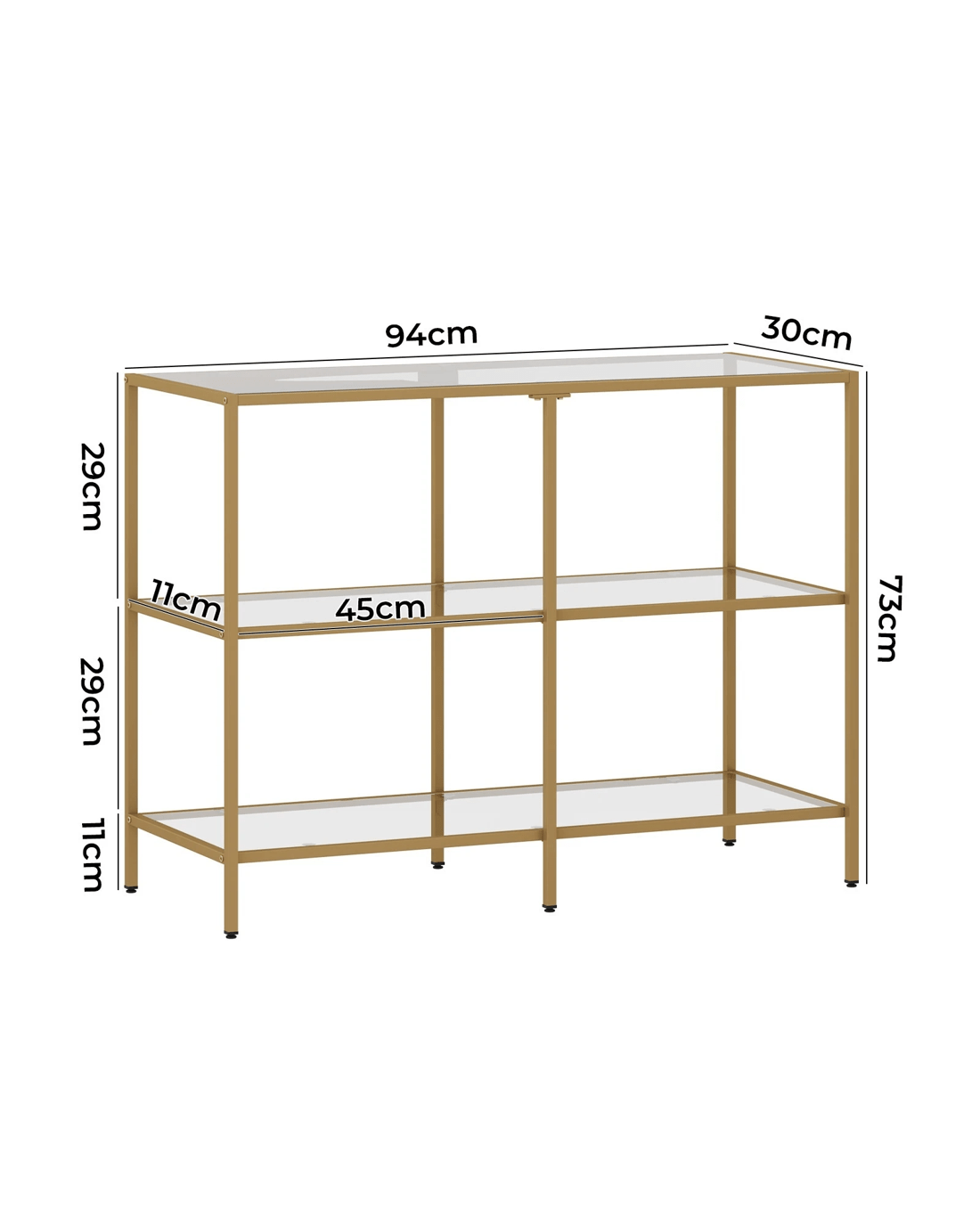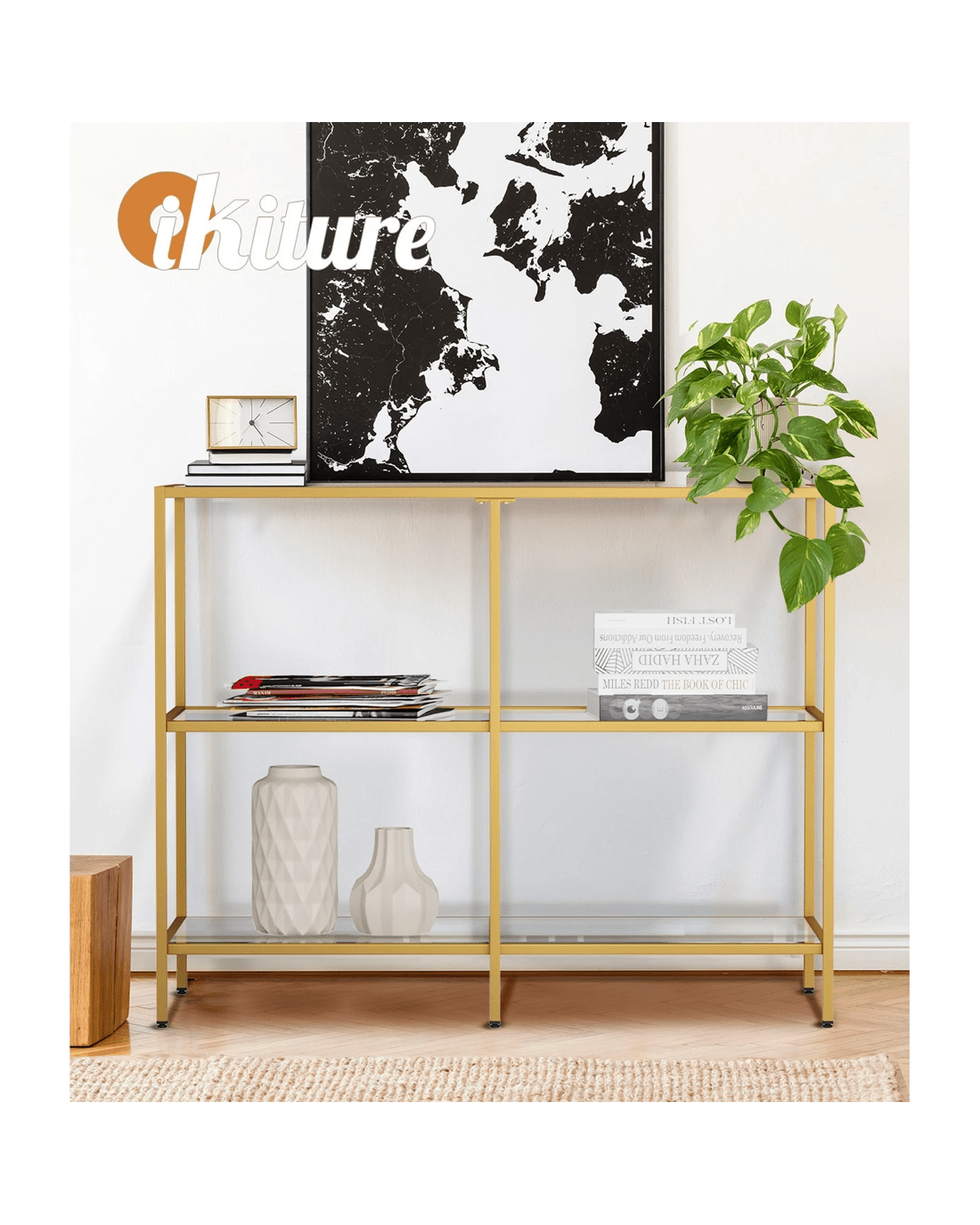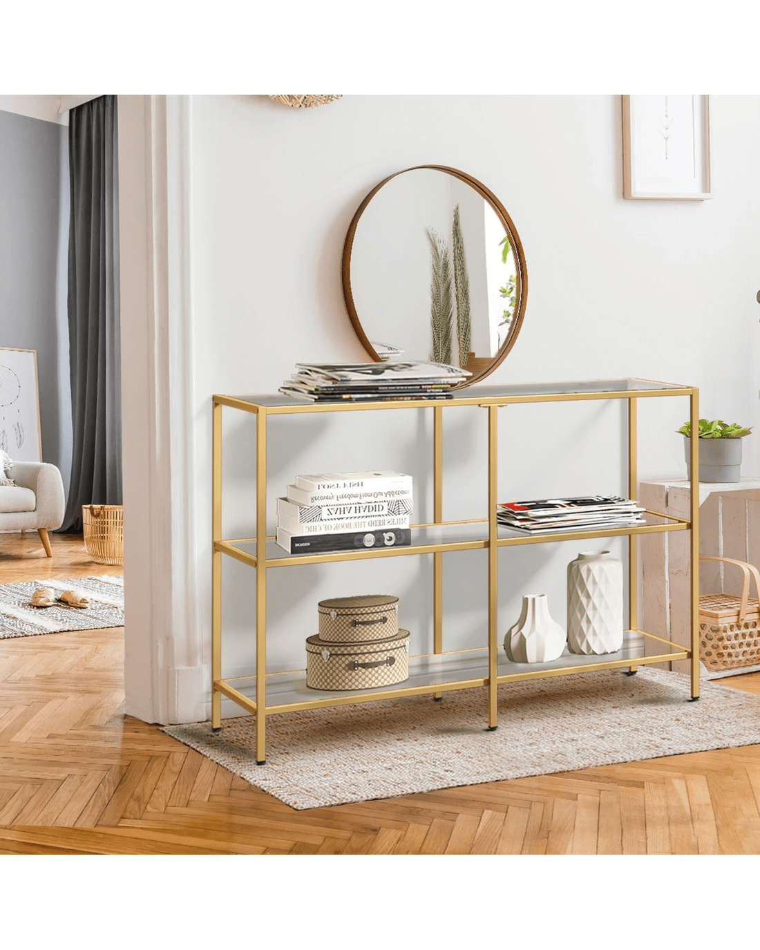 Sold by Kamprad's Oikos 1943Oikiture Console Table Tempered Glass Sofa Table Hall Side Entry 3 Shelves - Gold