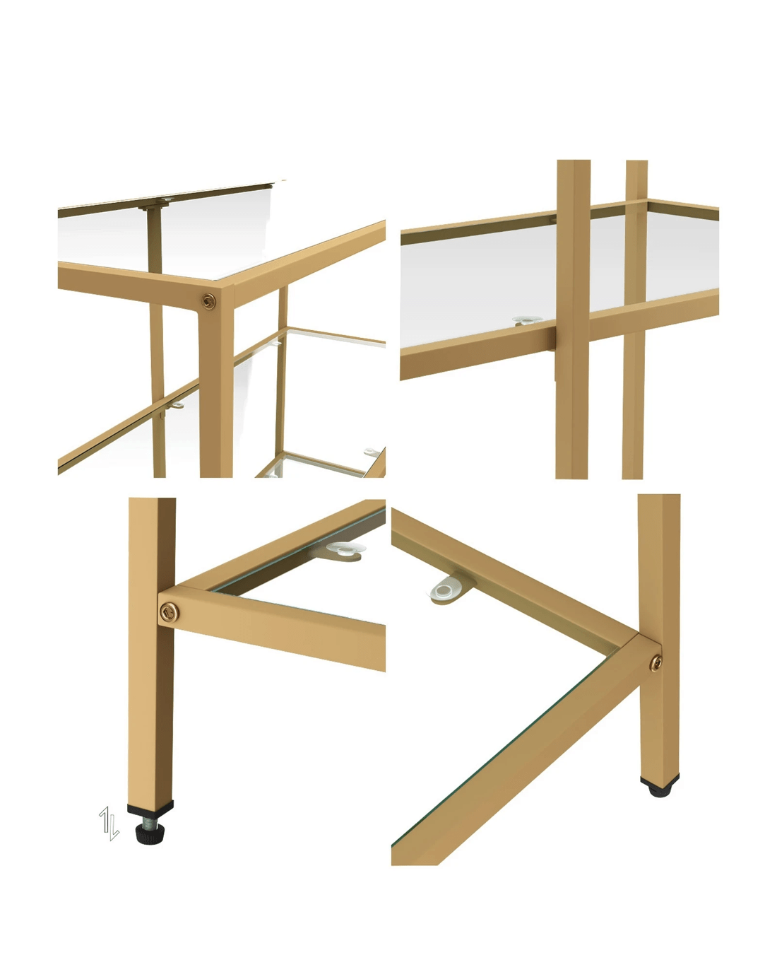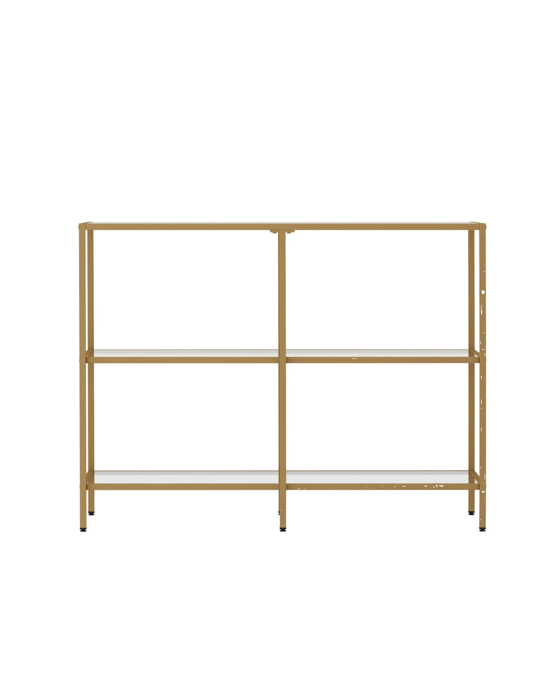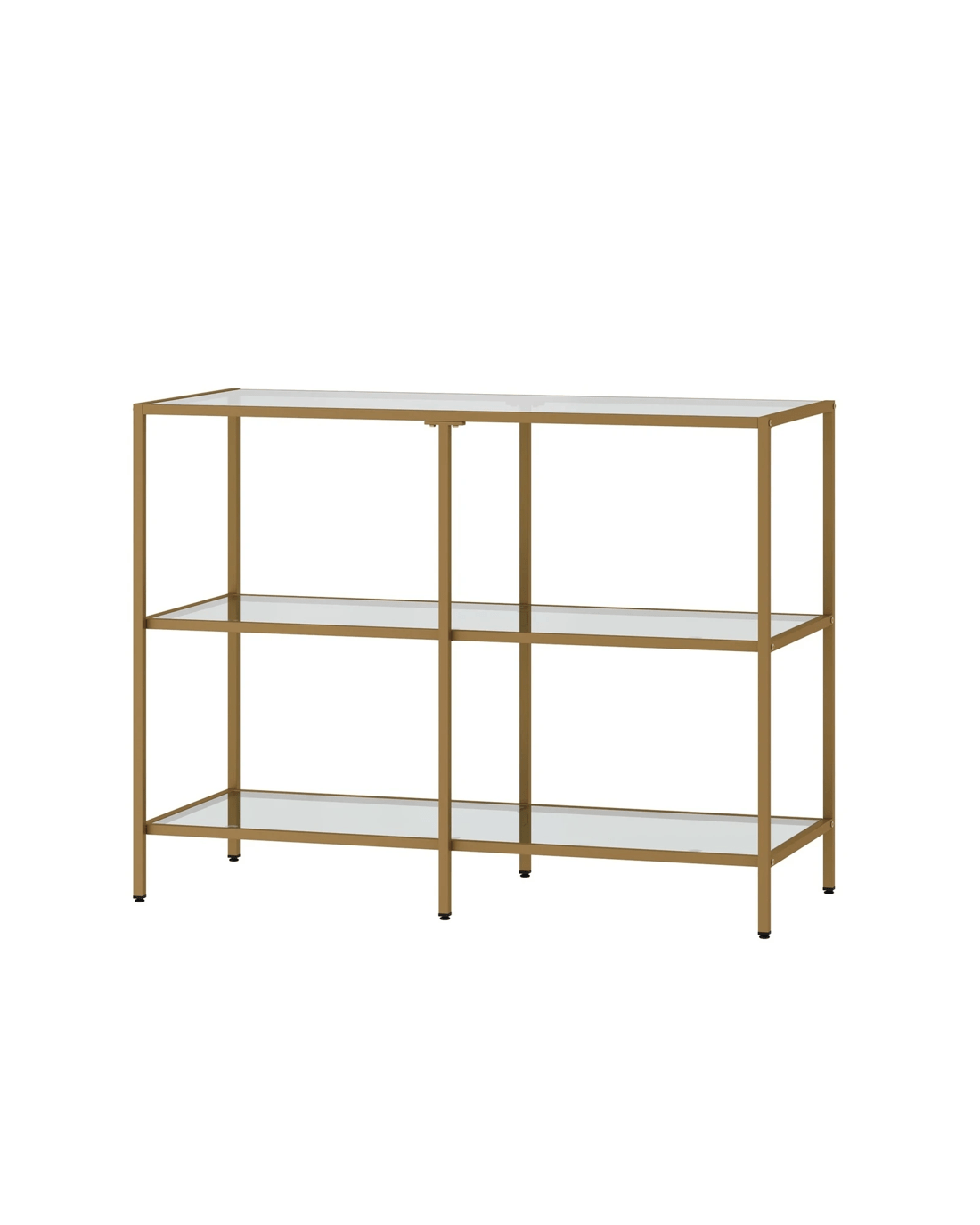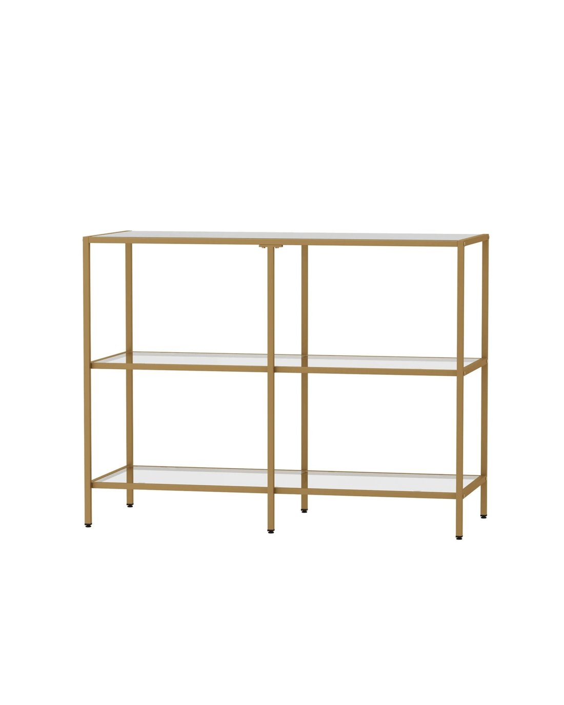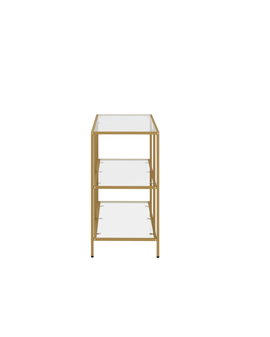 Sold by Kamprad's Oikos 1943Oikiture Console Table Tempered Glass Sofa Table Hall Side Entry 3 Shelves - Gold