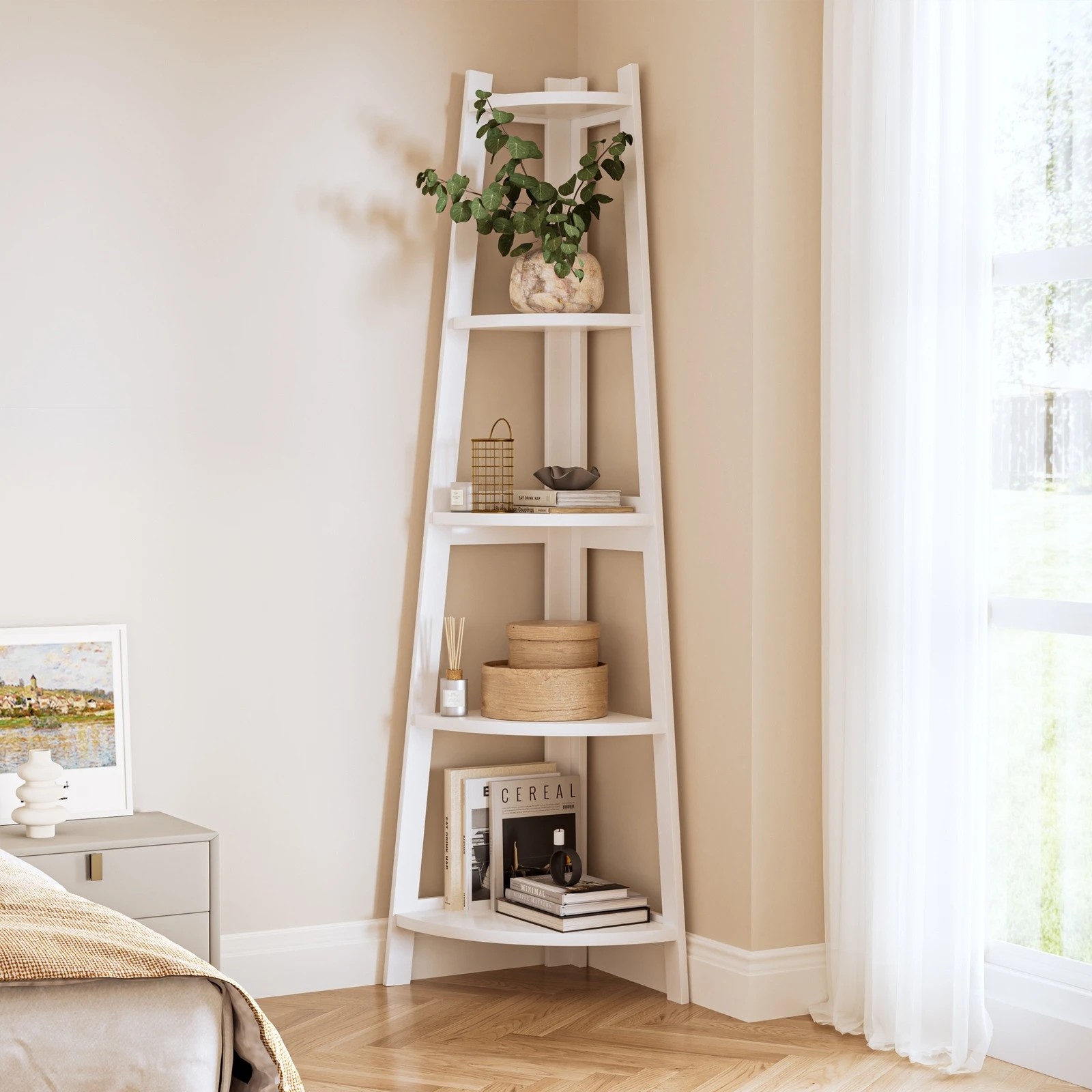 Oikiture Corner Ladder Shelf 5 Tier Home Storage Display Stand Bookshelf - White
