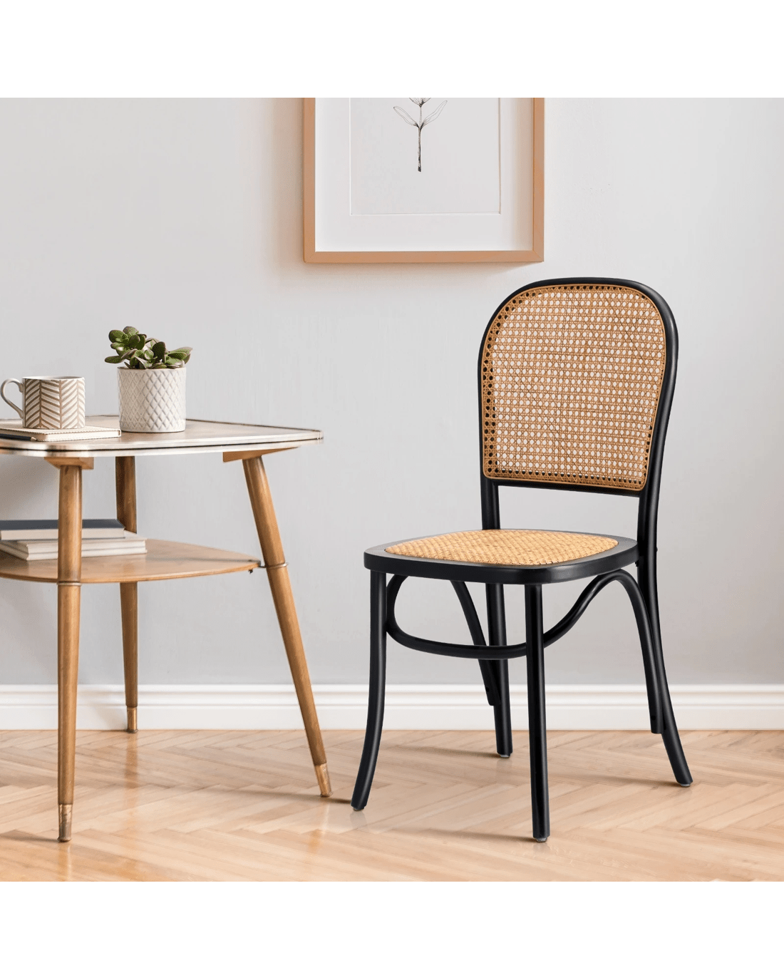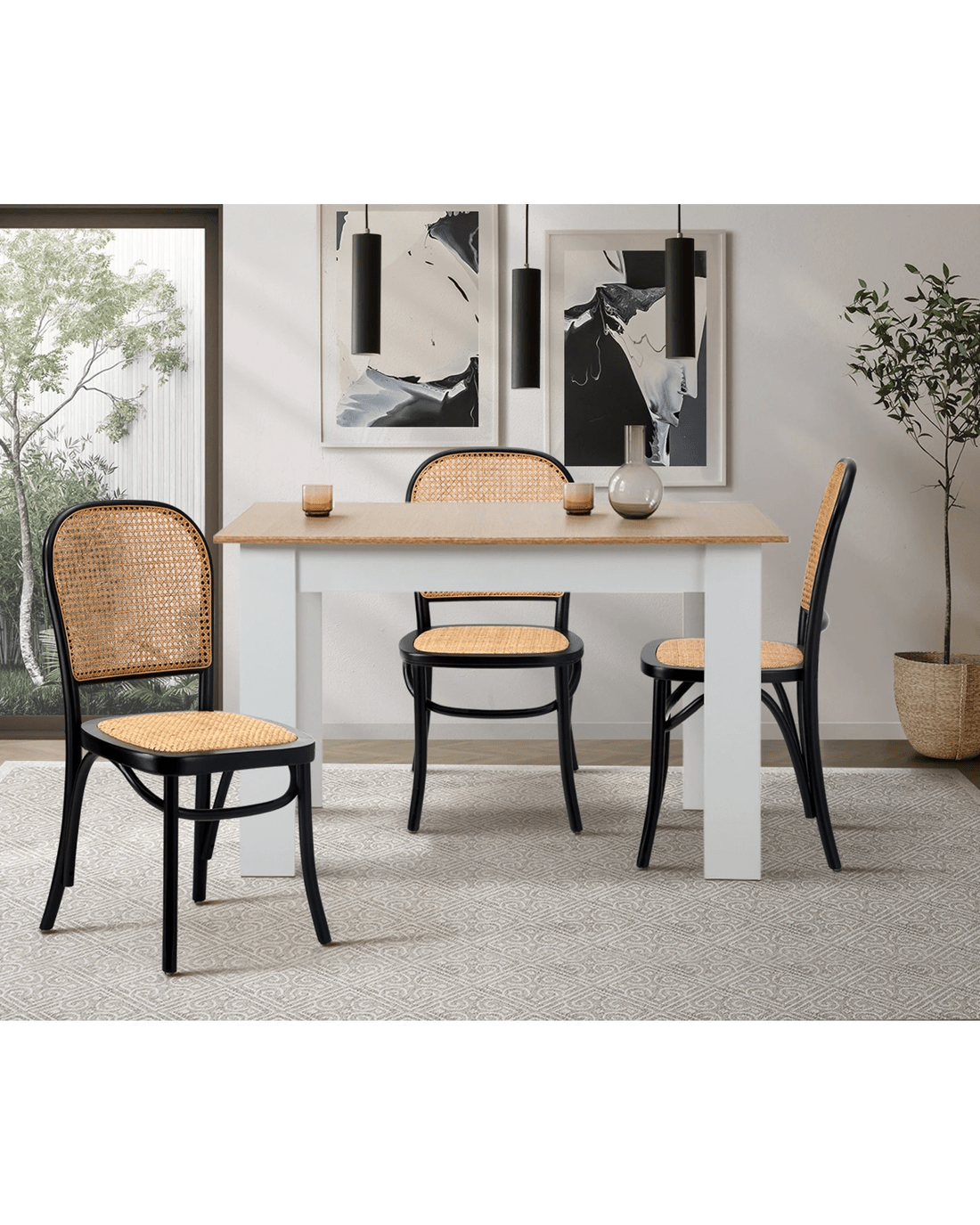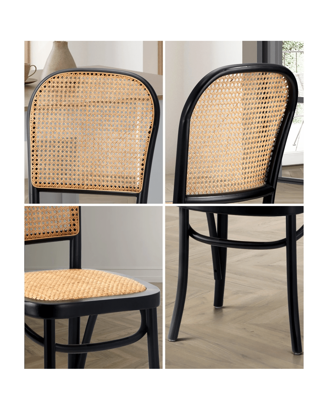The rattan elements infuse a touch of natural texture, creating a warm and inviting ambiance in your dining space. The design seamlessly combines classic aesthetics with a modern twist, making these chairs versatile enough to complement various interior styles.
