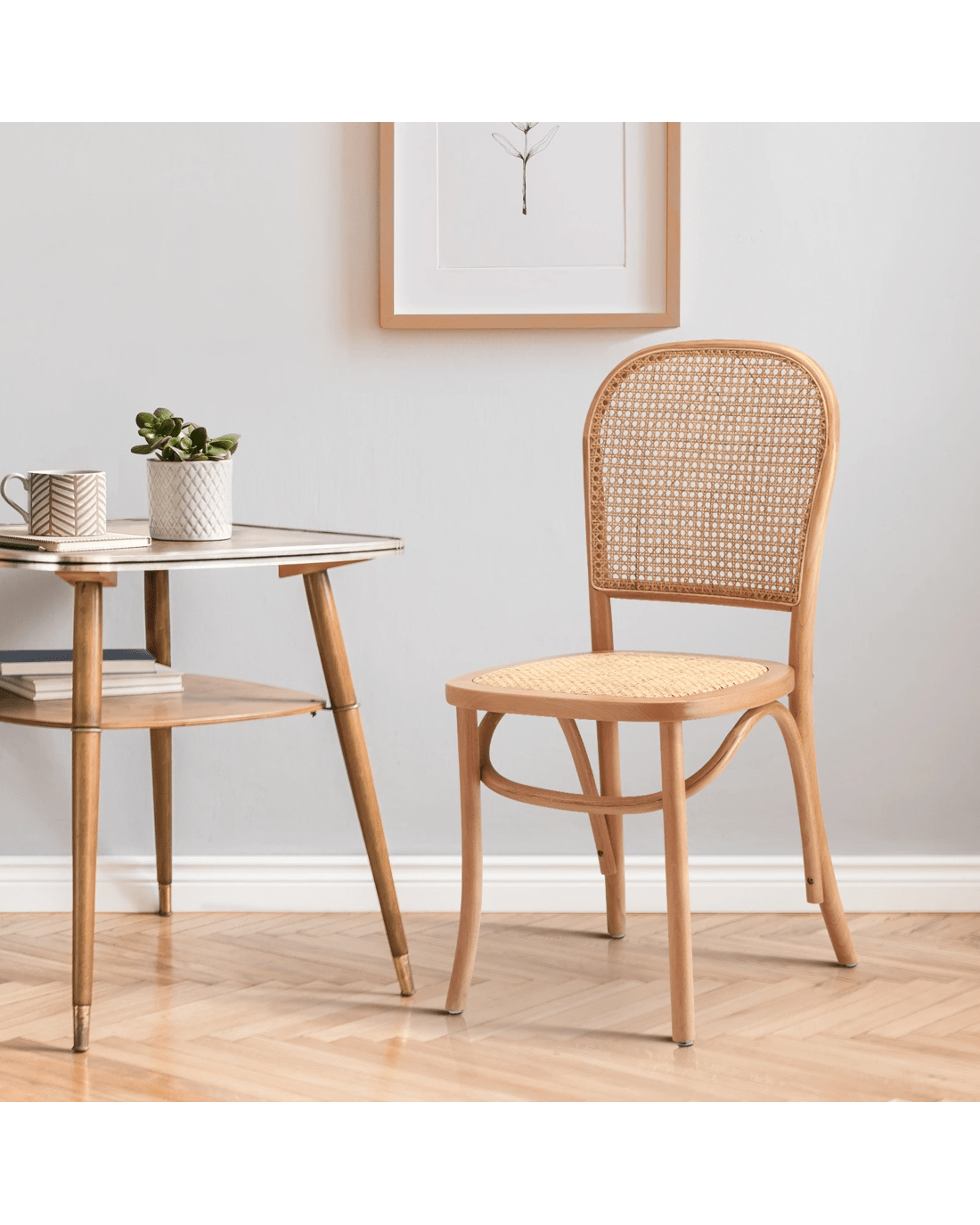 Oikiture Dining Chairs Wooden Chairs Rattan Accent Chair - Natural
