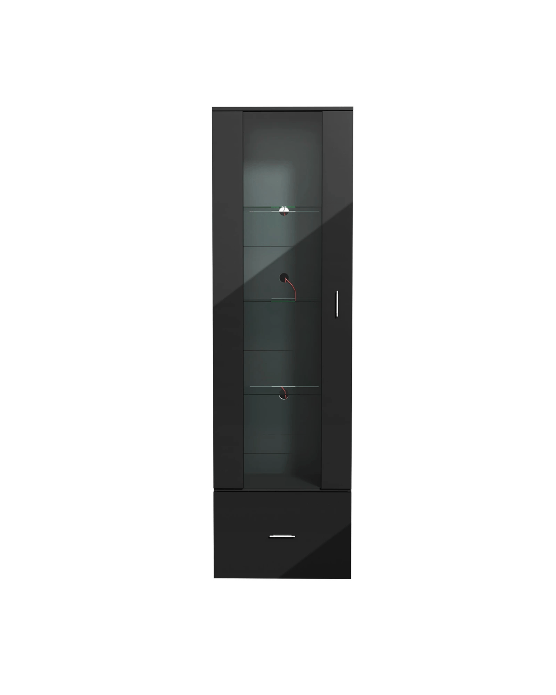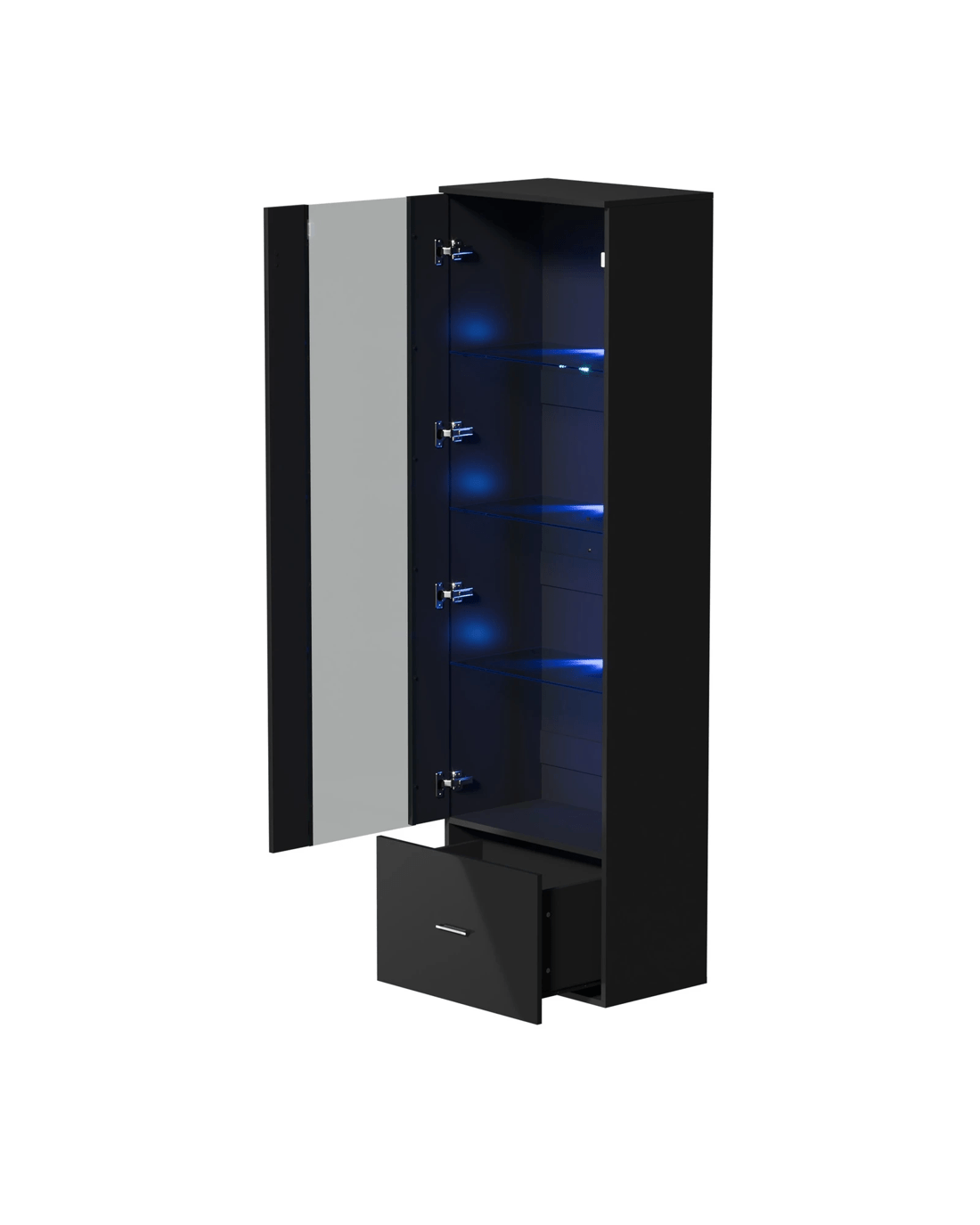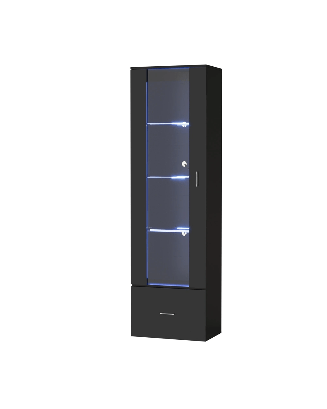 Besides its illuminating fascination, the cabinet is also blessed with aesthetical and functional attributes to enhance its practicality. Such as the 4-tier shelving that allows ample display areas with a maximum weight capacity of up to 10kg per shelf. Showcase your prized collectibles and mementos with minimum worry and maximum viewing pleasure. Plus, the large bottom drawer also offers acres of storage real estate to keep things neat and tidy without disturbing the overall aesthetics.
