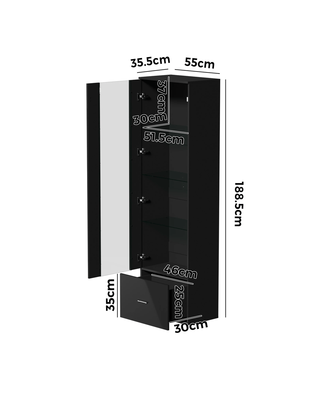 - 55cm x 35.5cm x 188.5cm