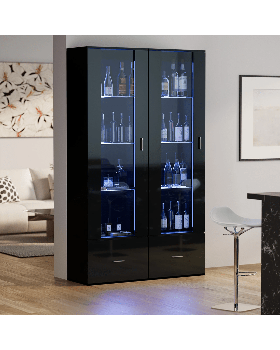 Add some glam to your regular display cabinet with this scintillating model from Oikiture. Be mesmerised by the cool and subdued blue LED strip lighting emanating from the display cabinet as it adds colour, vibrance and depth to the displayed items behind the glass panels to draw in better focus and attention.