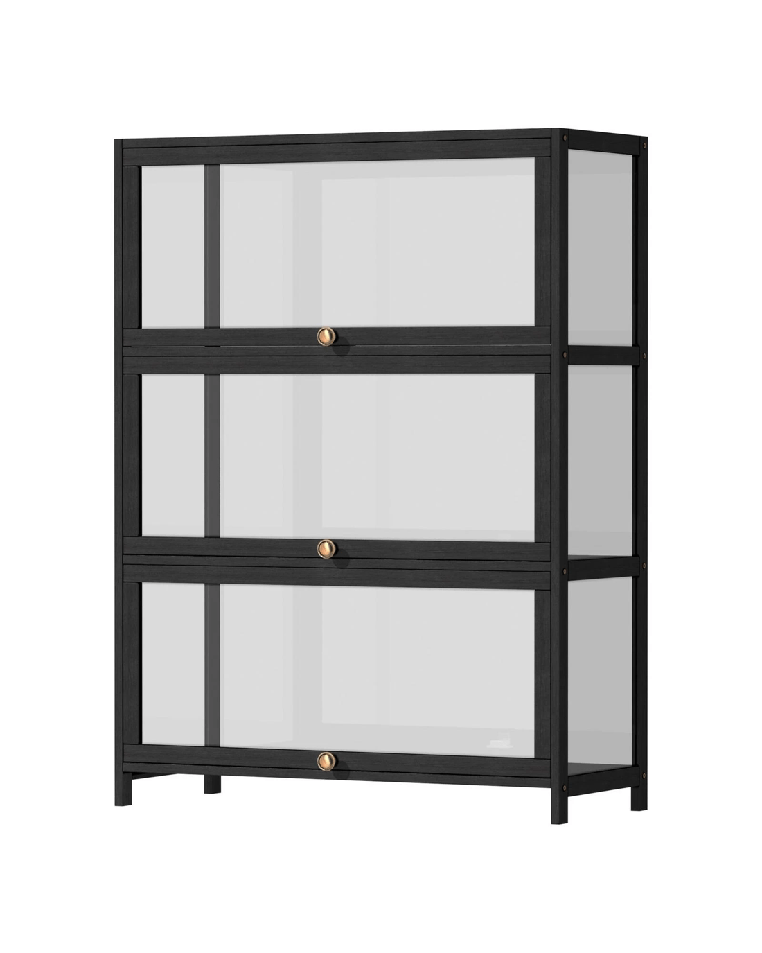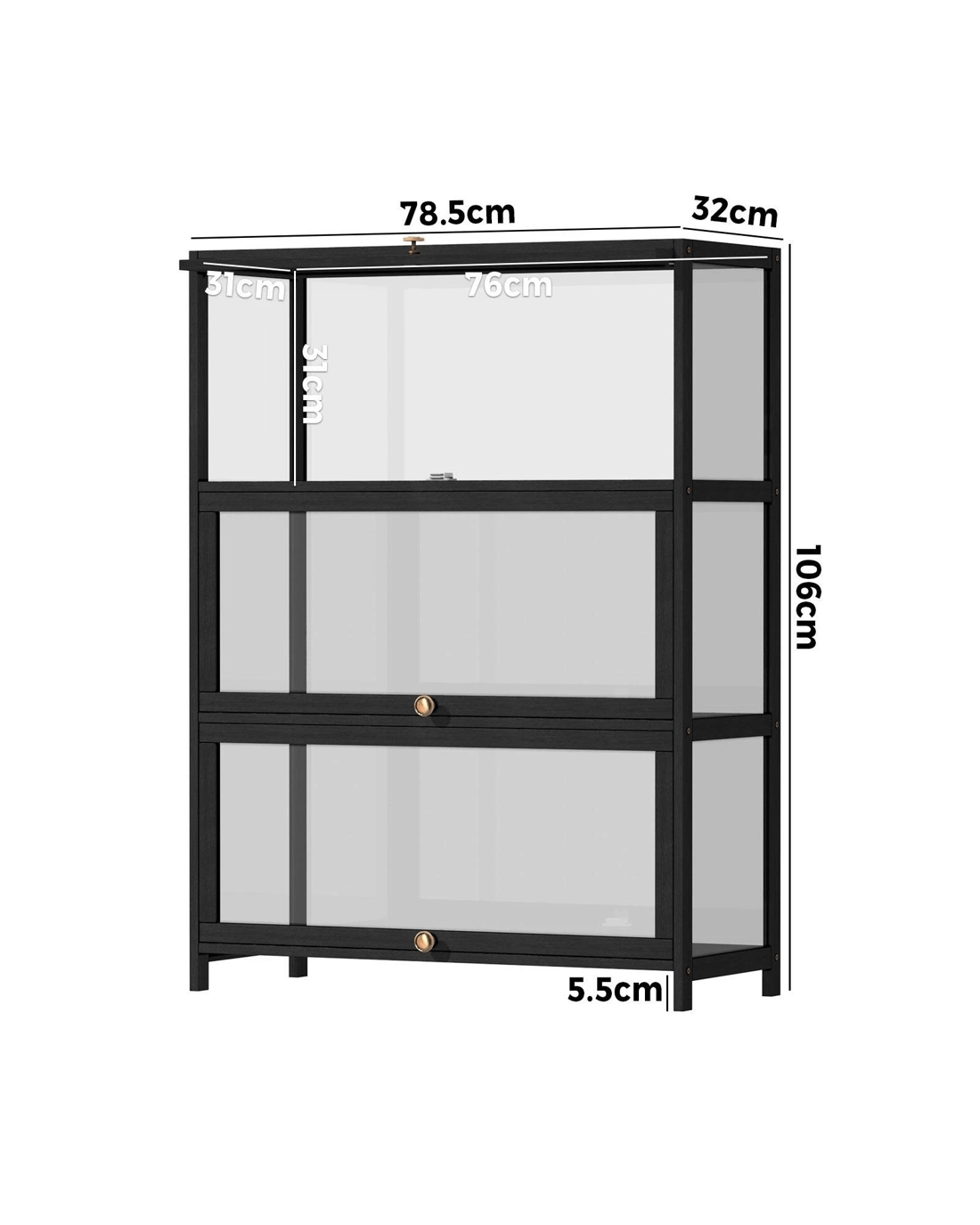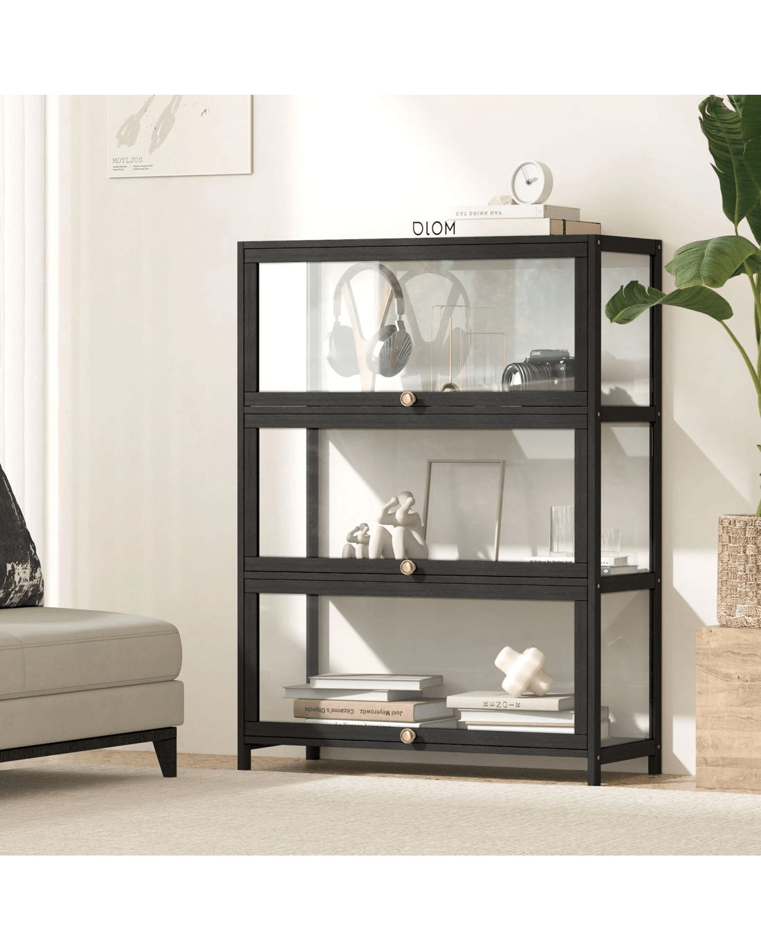 Sold by Kamprad's Oikos 1943Oikiture Display Cabinet Storage 3-tier Shelves Clear Bookcase Stand Rack - Black