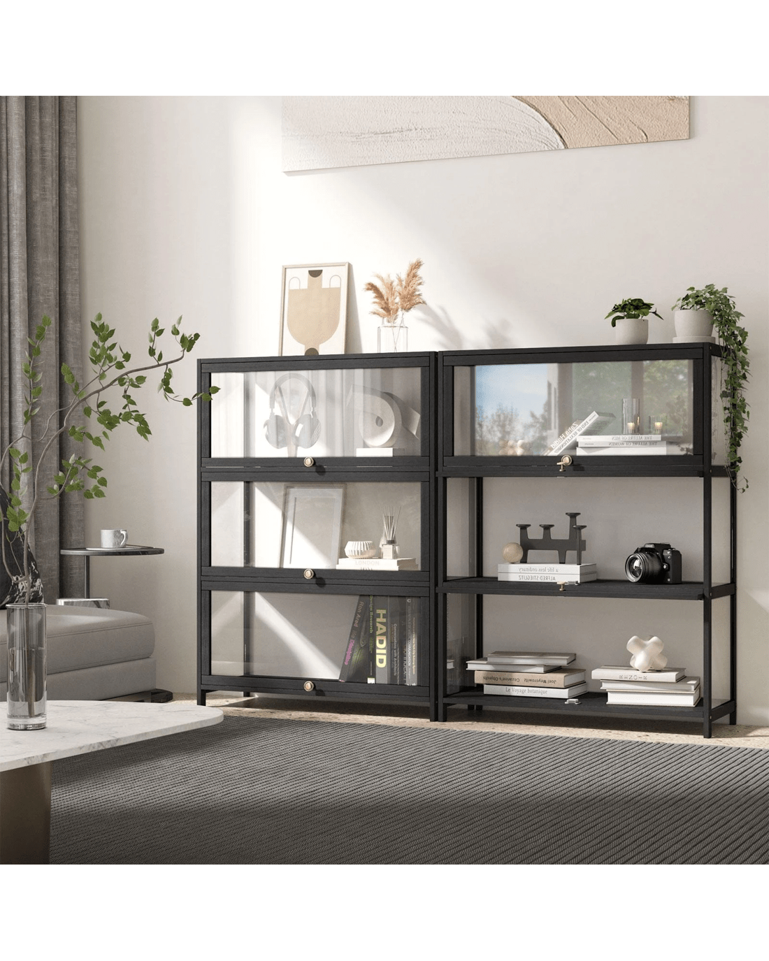 Inside, you'll find ample storage space for your books, figurines, art pieces, or family mementos. And equipped with magnetic closure, where you can easily close the panel and securely.