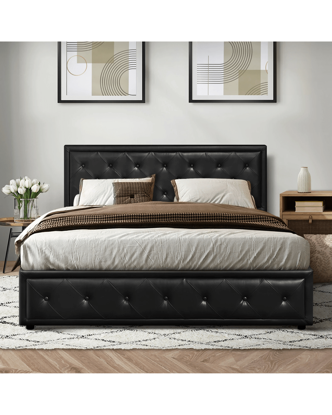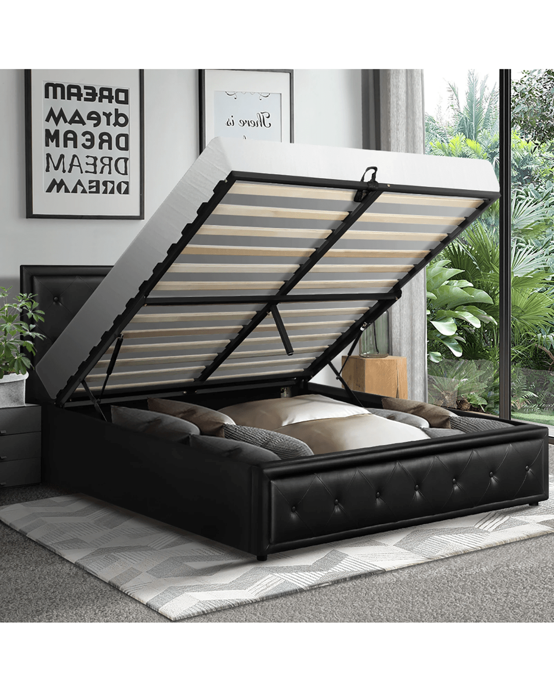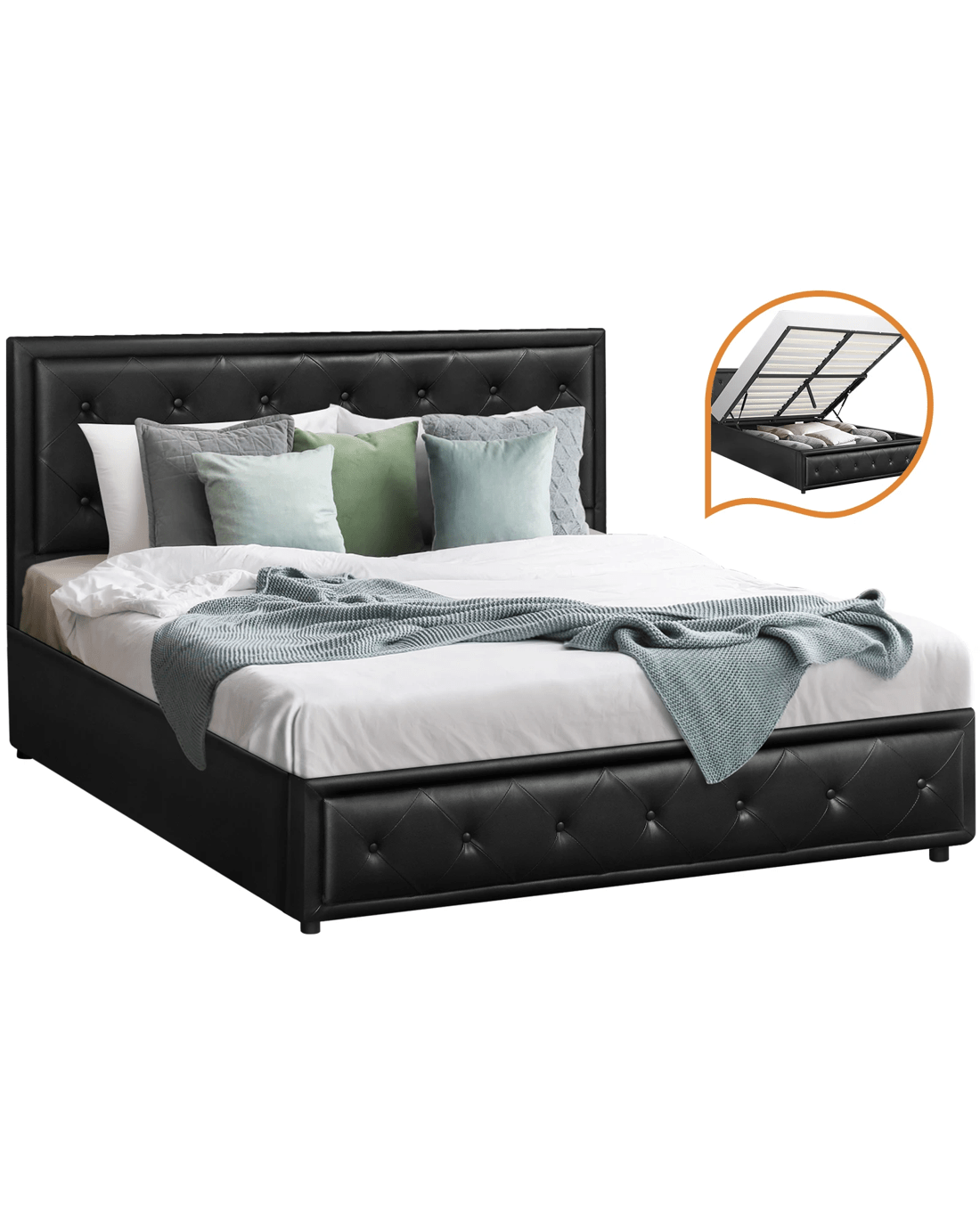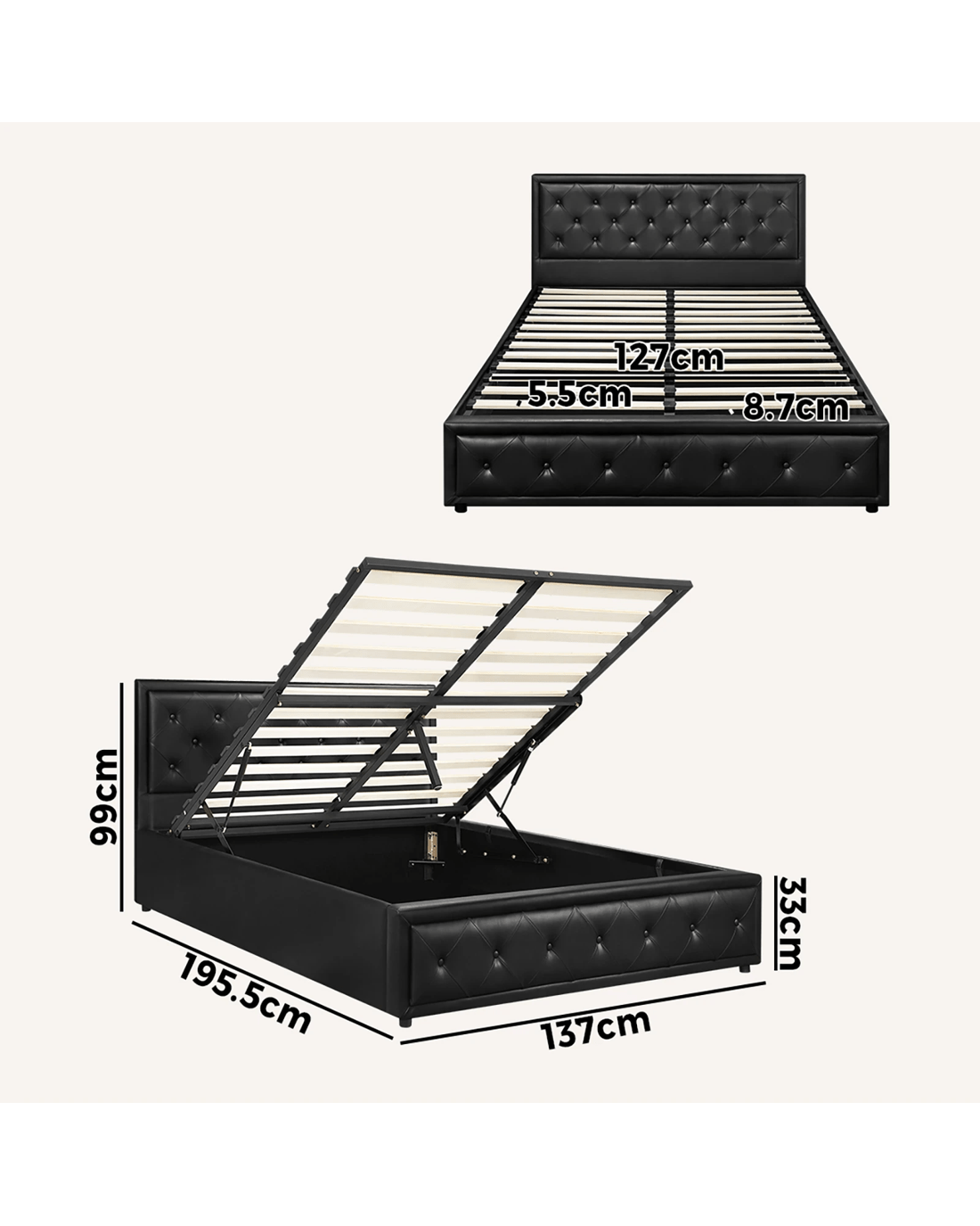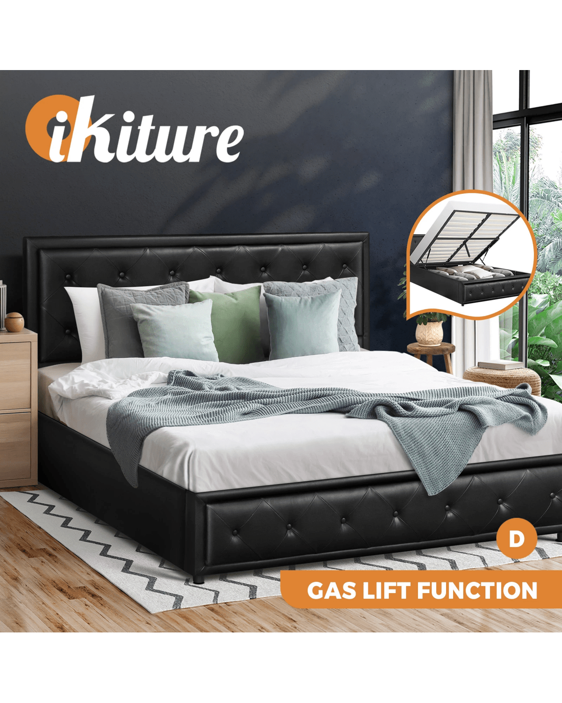 Sold by Kamprad's Oikos 1943Oikiture Double Bed Frame Gas Lift Base With Storage Enzo - Black