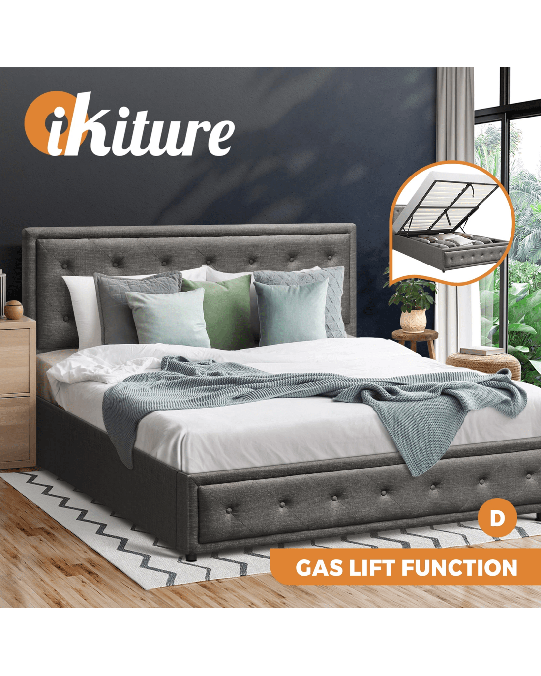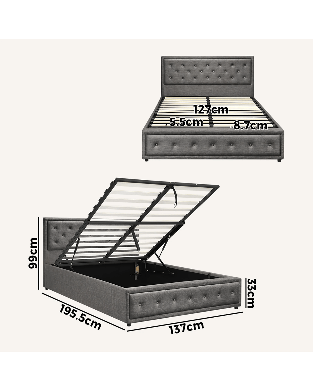 Sold by Kamprad's Oikos 1943Oikiture Double Bed Frame Gas Lift Base With Storage Enzo - Grey