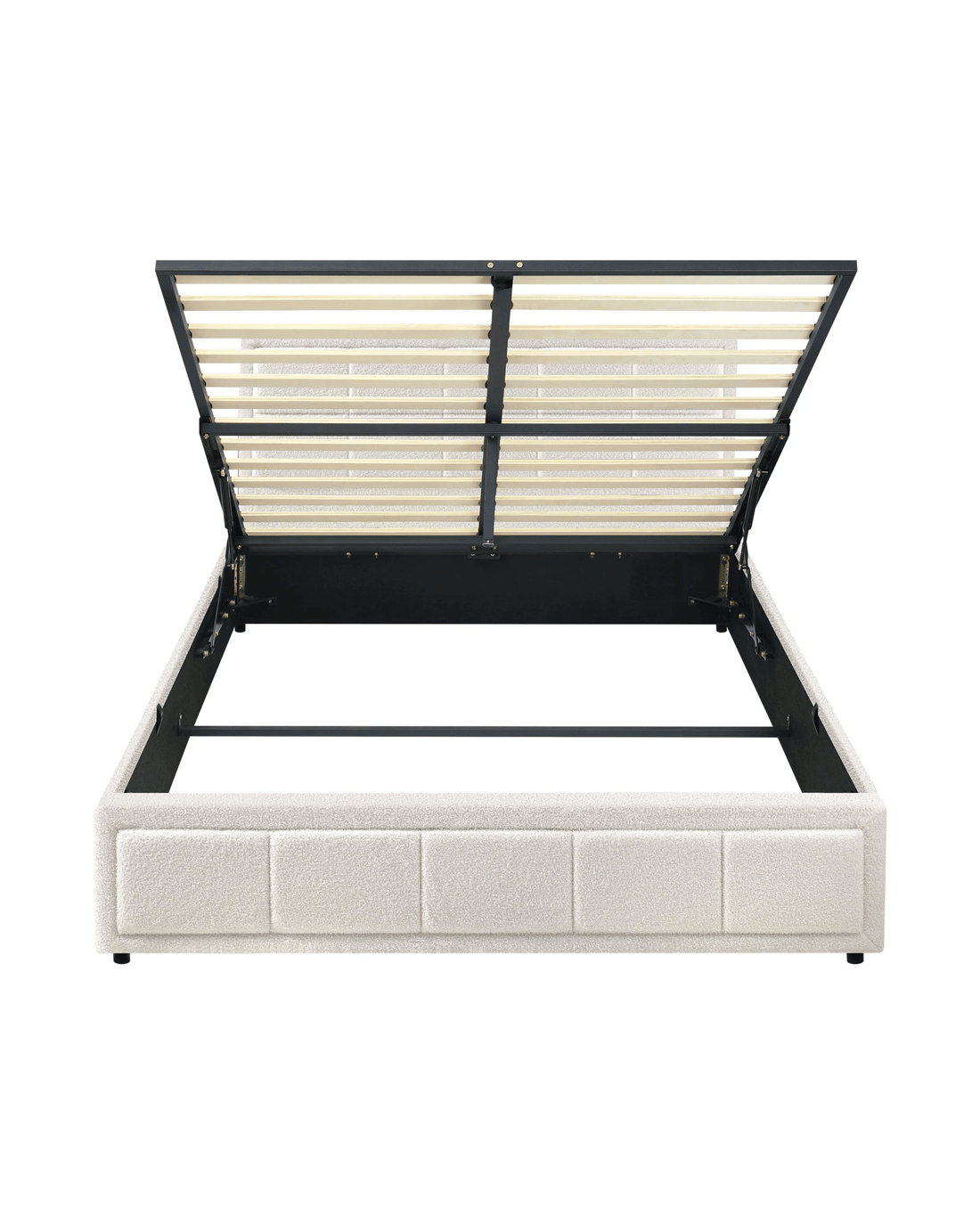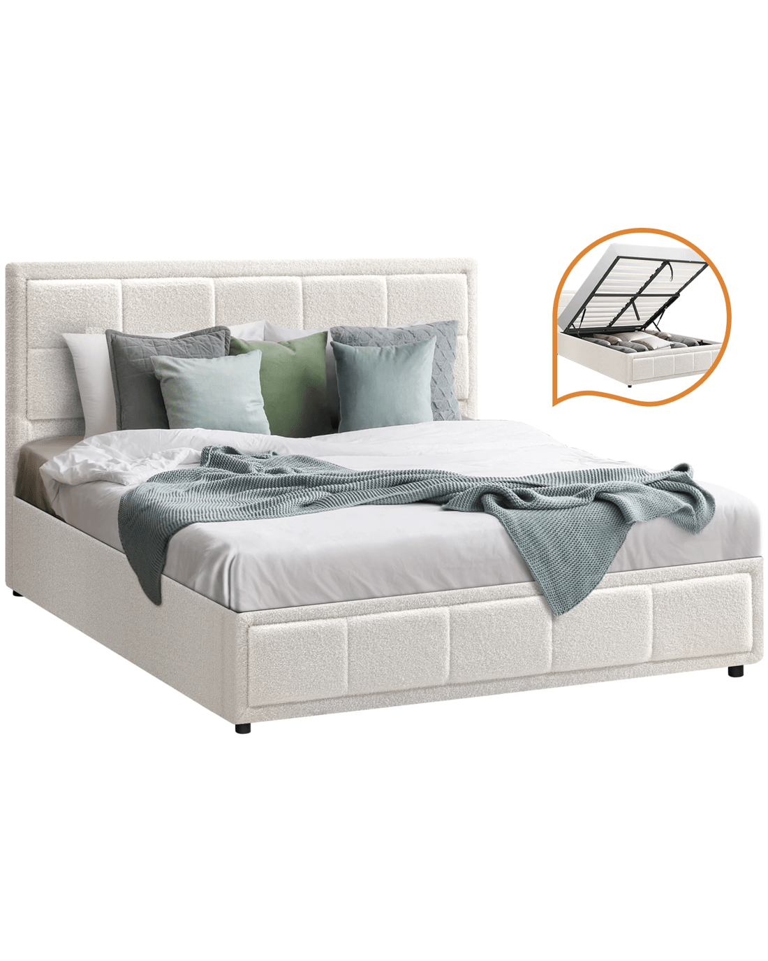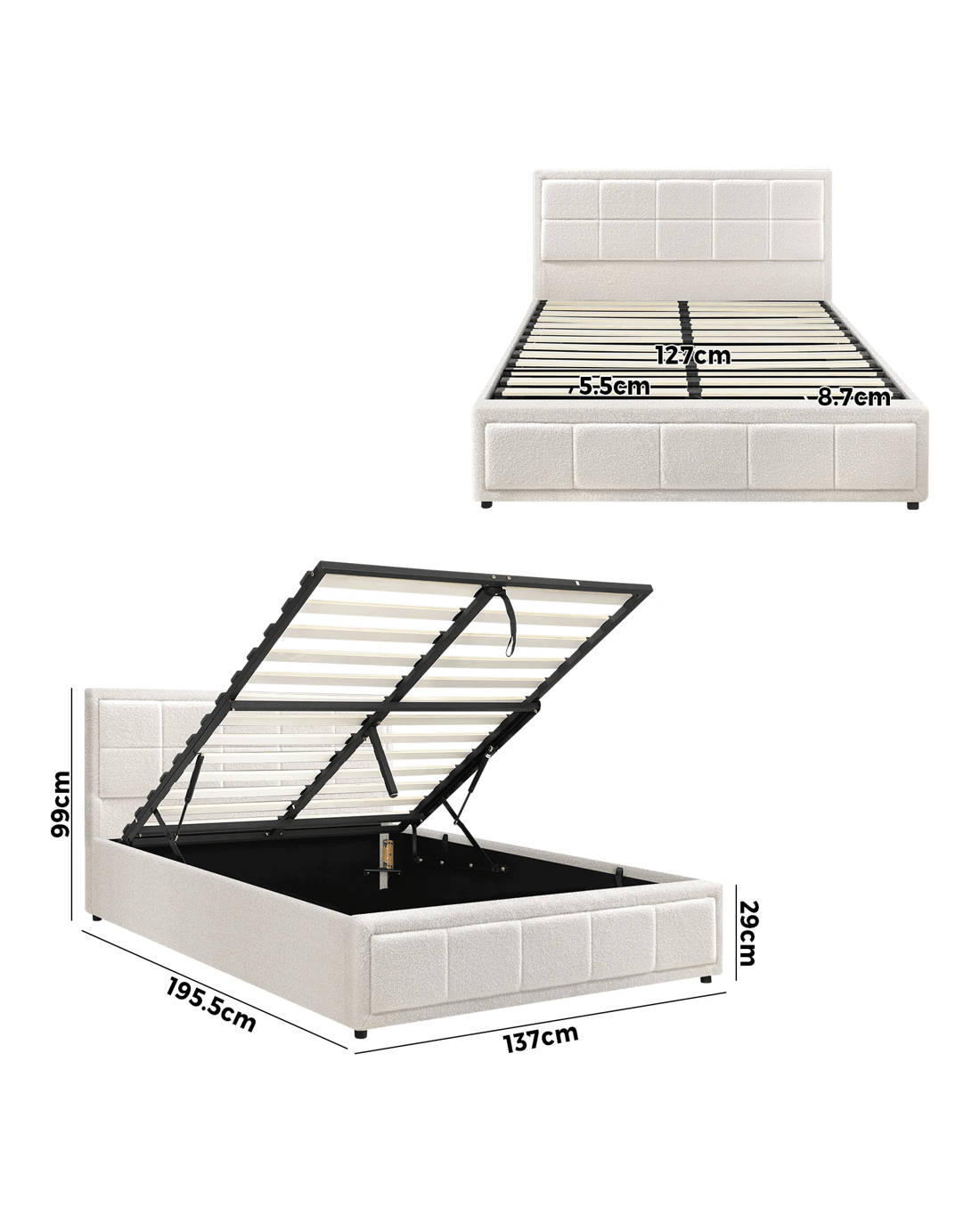 Sold by Kamprad's Oikos 1943Oikiture Double Bed Frame Gas Lift Storage Base Boucle Fabric - White