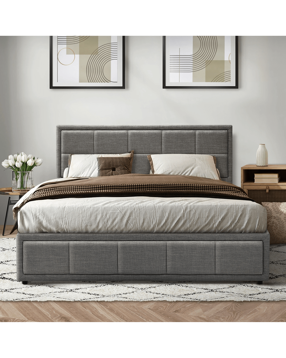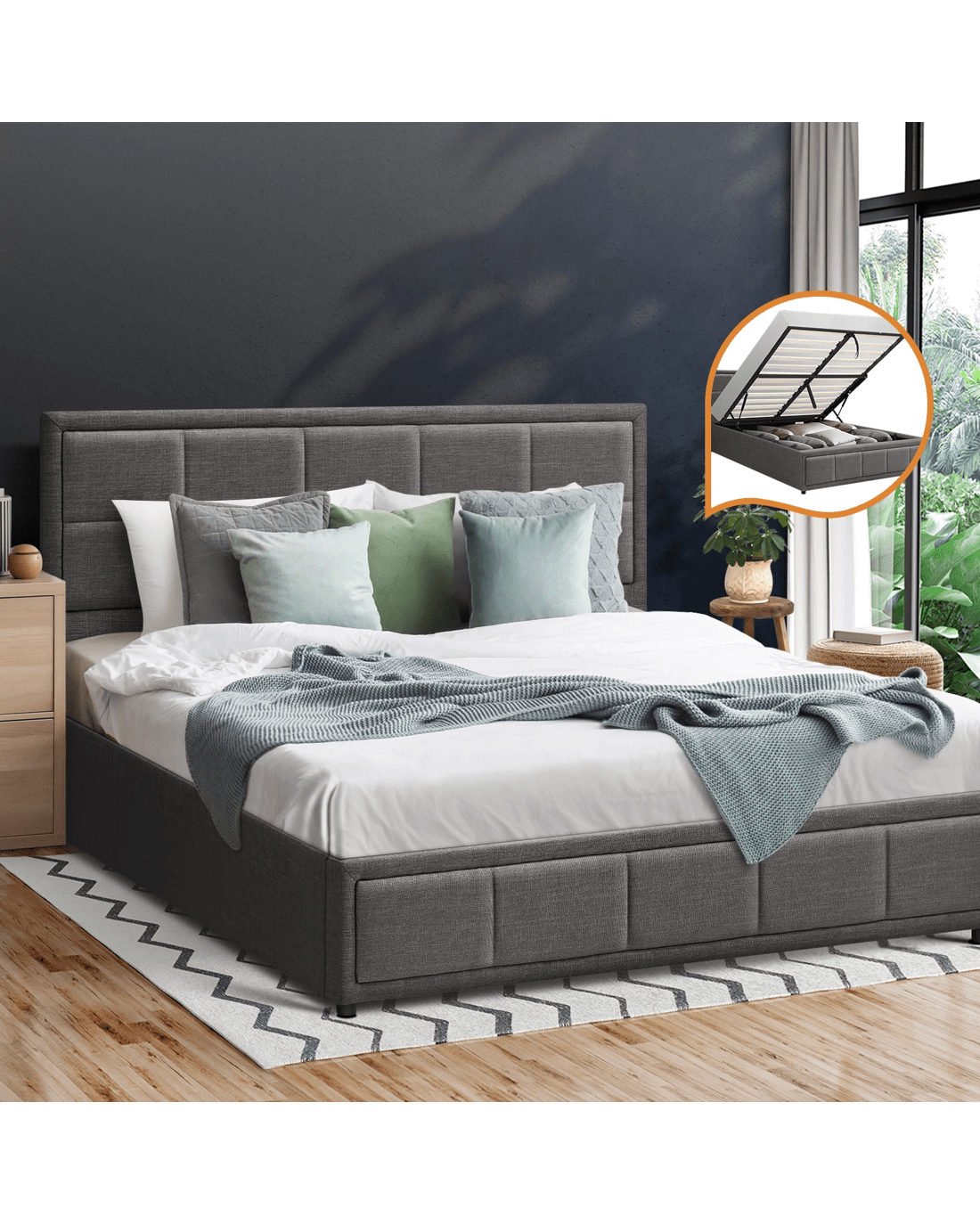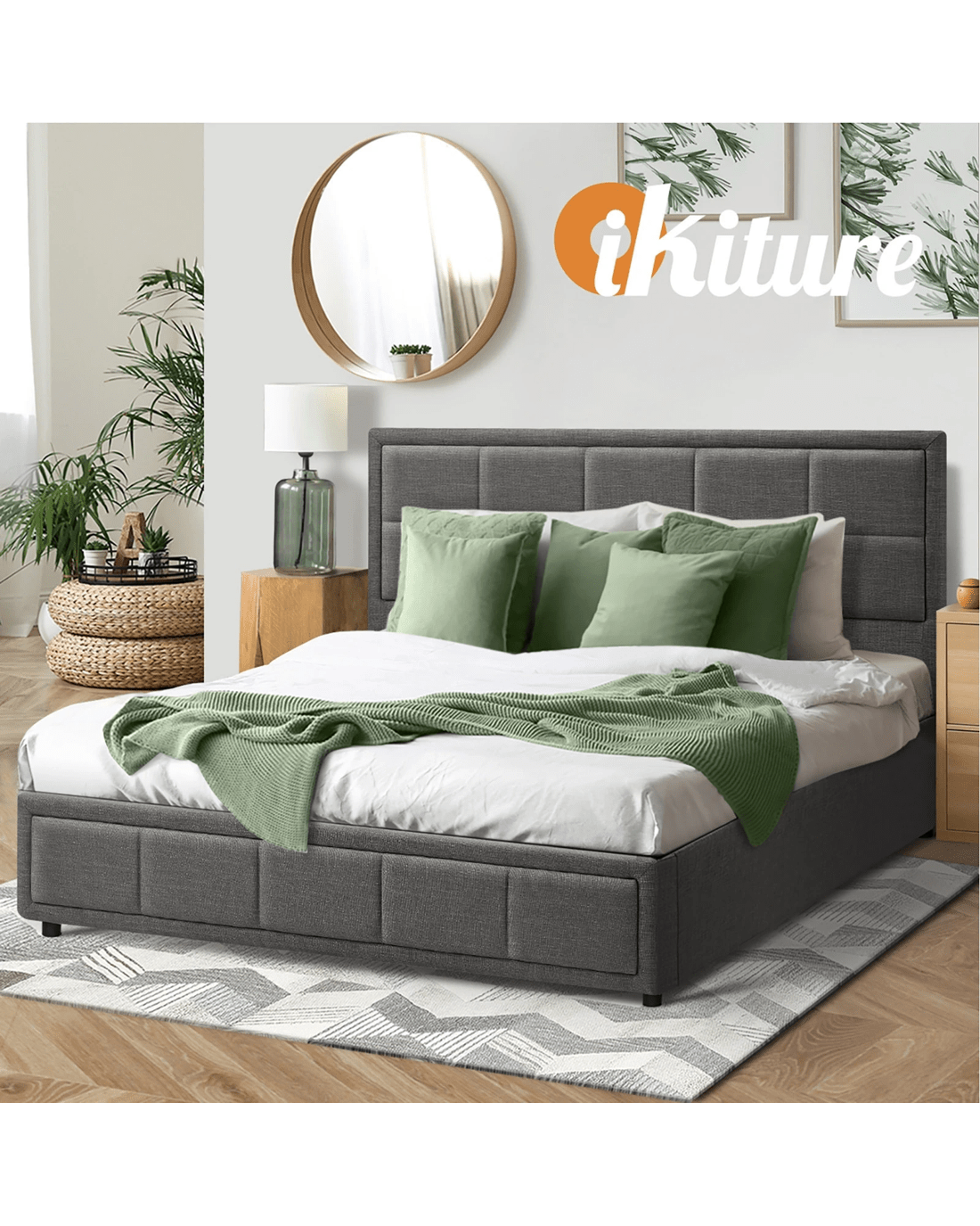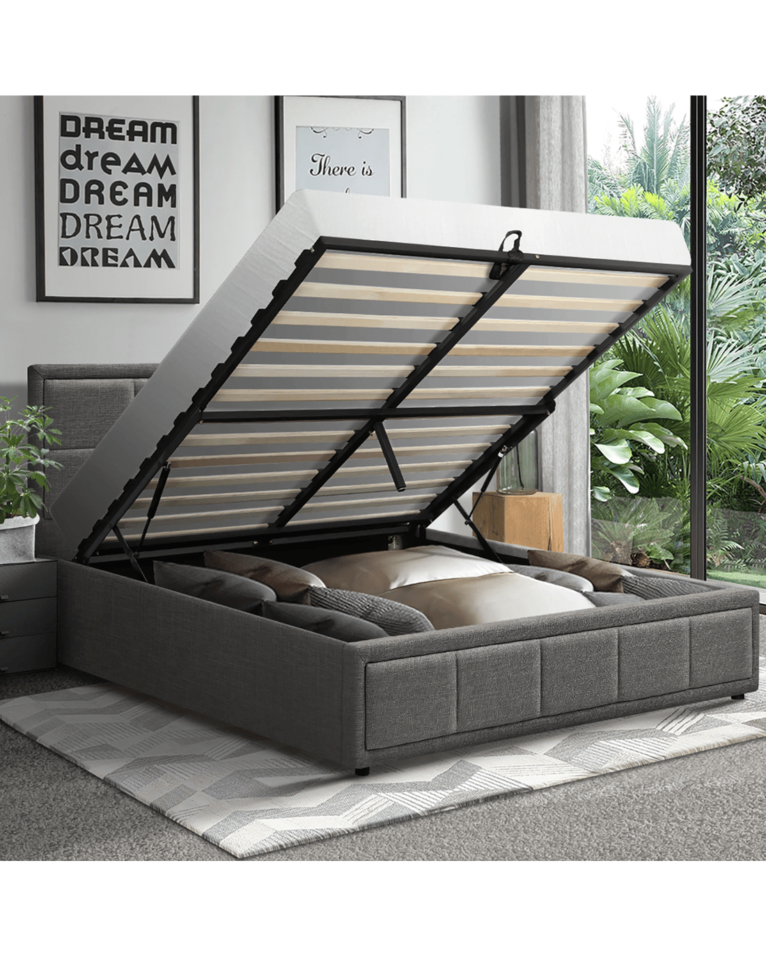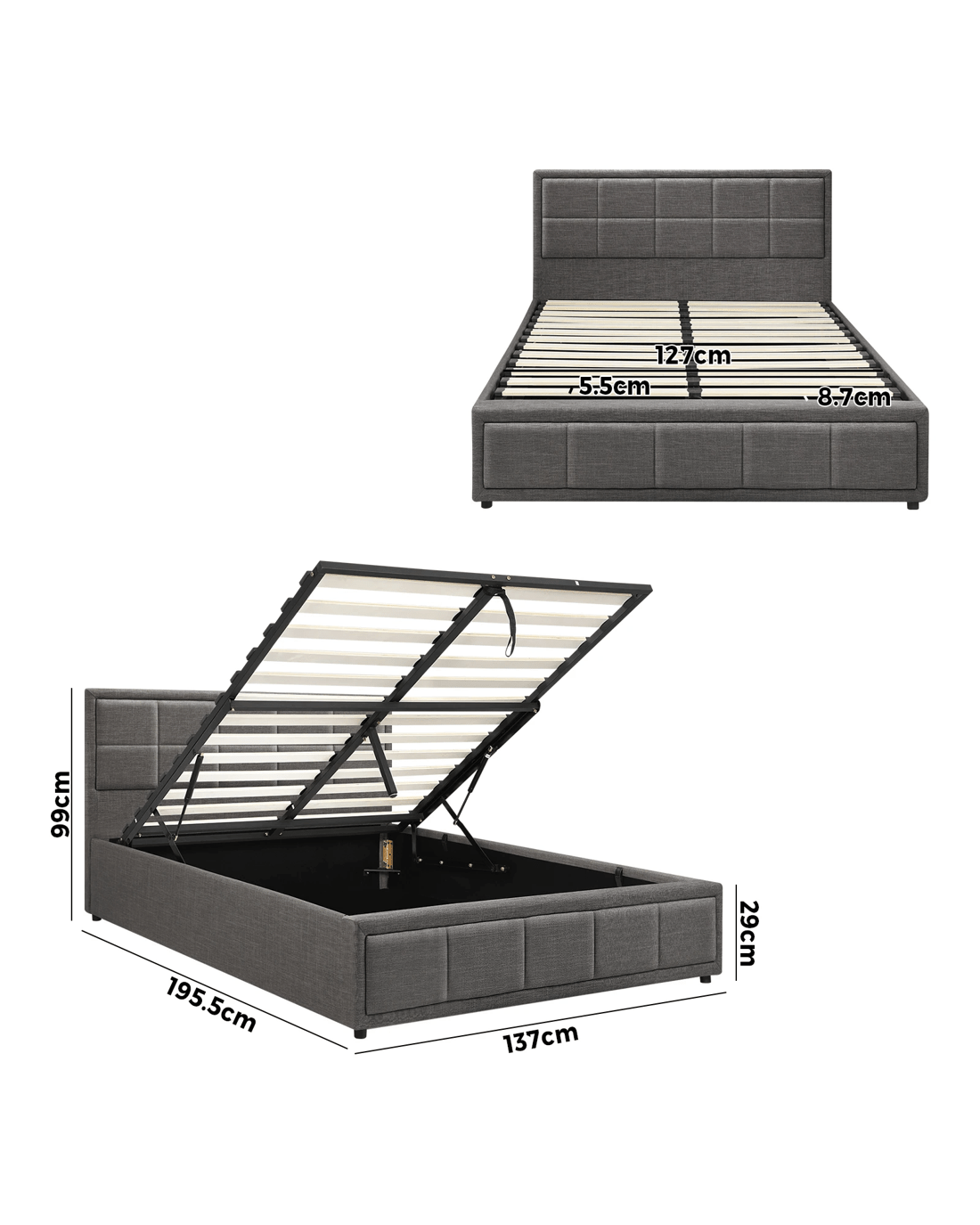 Sold by Kamprad's Oikos 1943Oikiture Double Bed Frame Gas Lift Storage Base - Grey
