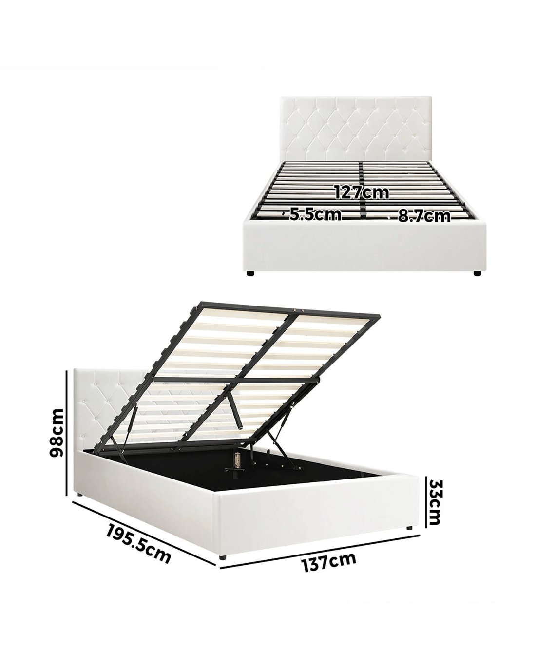 Sold by Kamprad's Oikos 1943Oikiture Double Bed Frame Gas Lift Storage Base - White