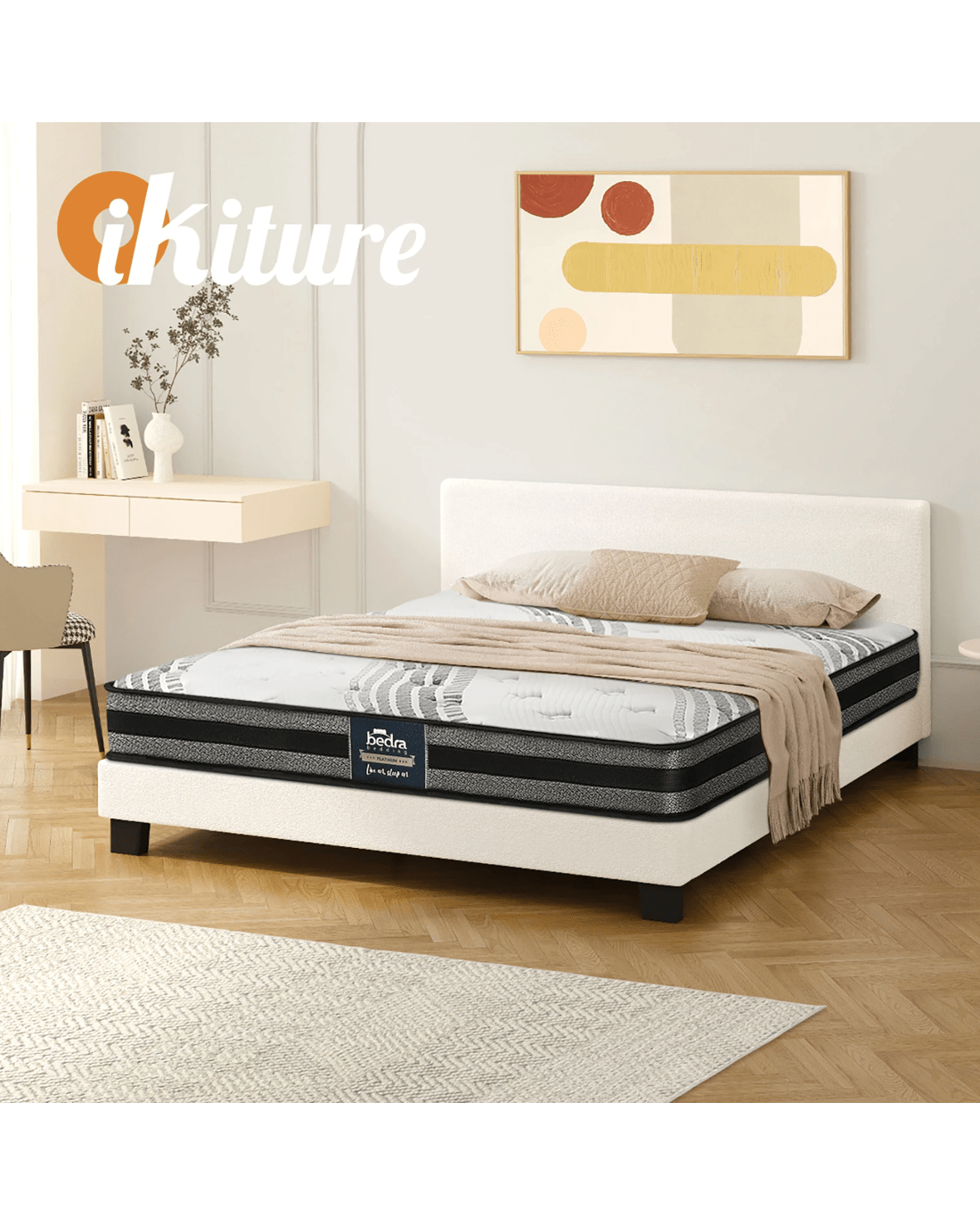 Best of all, the stylish bed frame also includes a comfortable Bedra Bedding Bonnell Spring mattress to complete the set. This high-quality spring mattress comprises a 7-layer construction with all the benefits of a Bonnell Spring system that provides motion isolation, anti-disturbance and full body support. Naturally, the highly breathable mattress complies with all required standards and certification and is hygienically safe from top to bottom and everything else in between. The Oikiture Fabric Bed Frame. Made it yours to enjoy.