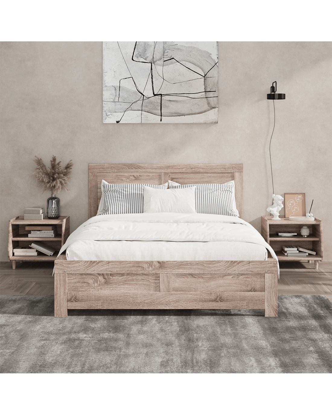 Time for a bed makeover? Then consider this beautiful Oikiture Wooden Bed Frame that has all the qualities you would want for that perfect sleep in style. With its contemporary design and an elegant light oak woodgrain finish all round, the bed frame looks absolutely charming from head to tail. A large headboard also ensures all your favourite reading and viewing activities in bed are well catered to. No sore backs or unsupportive heads to worry about.