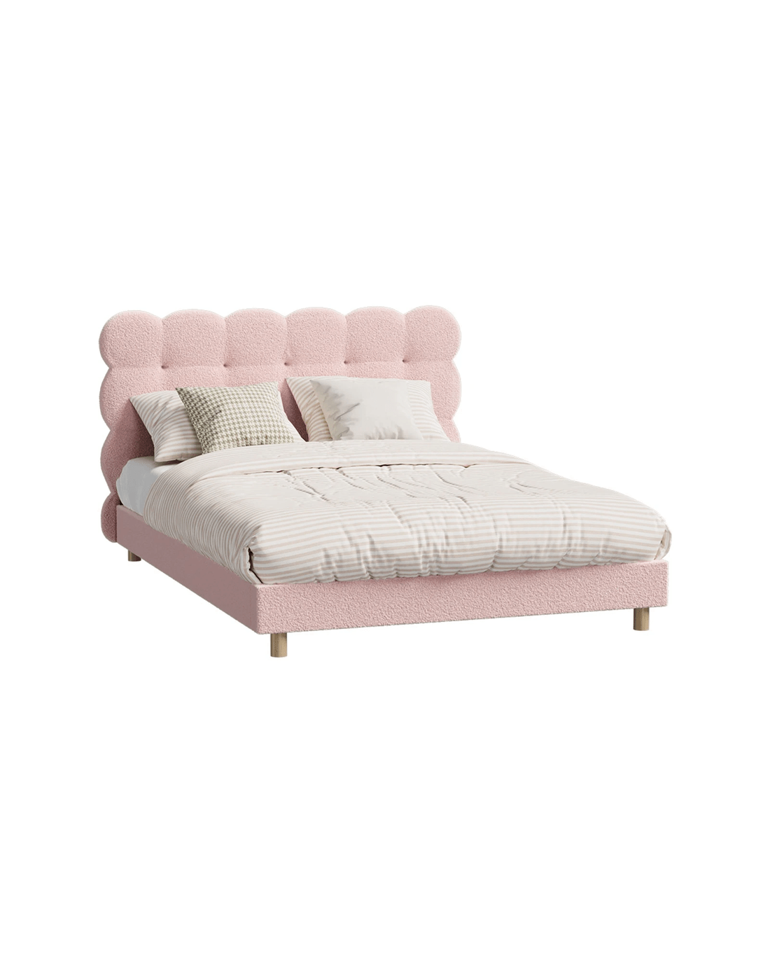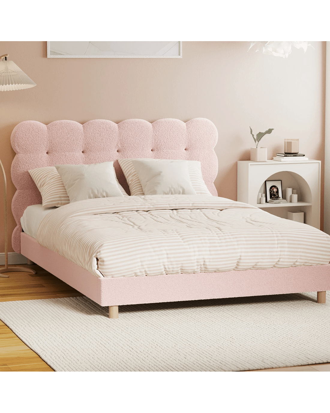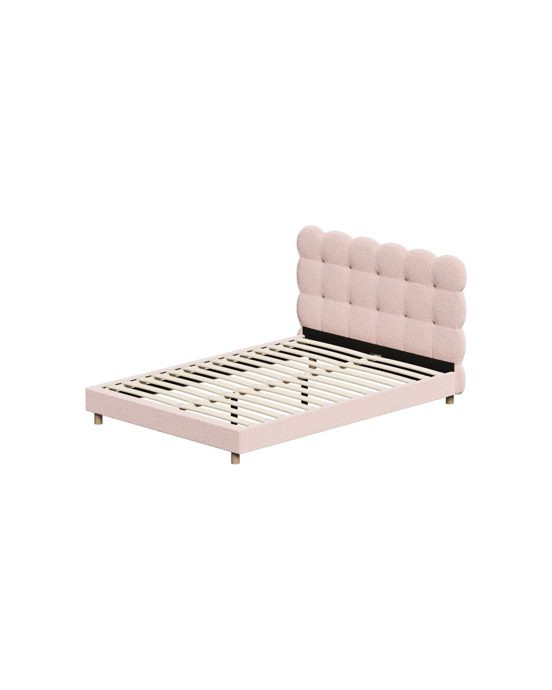 Sold by Kamprad's Oikos 1943Oikiture Double Bed Tufted Bedhead Boucle Bed Frame - Pink