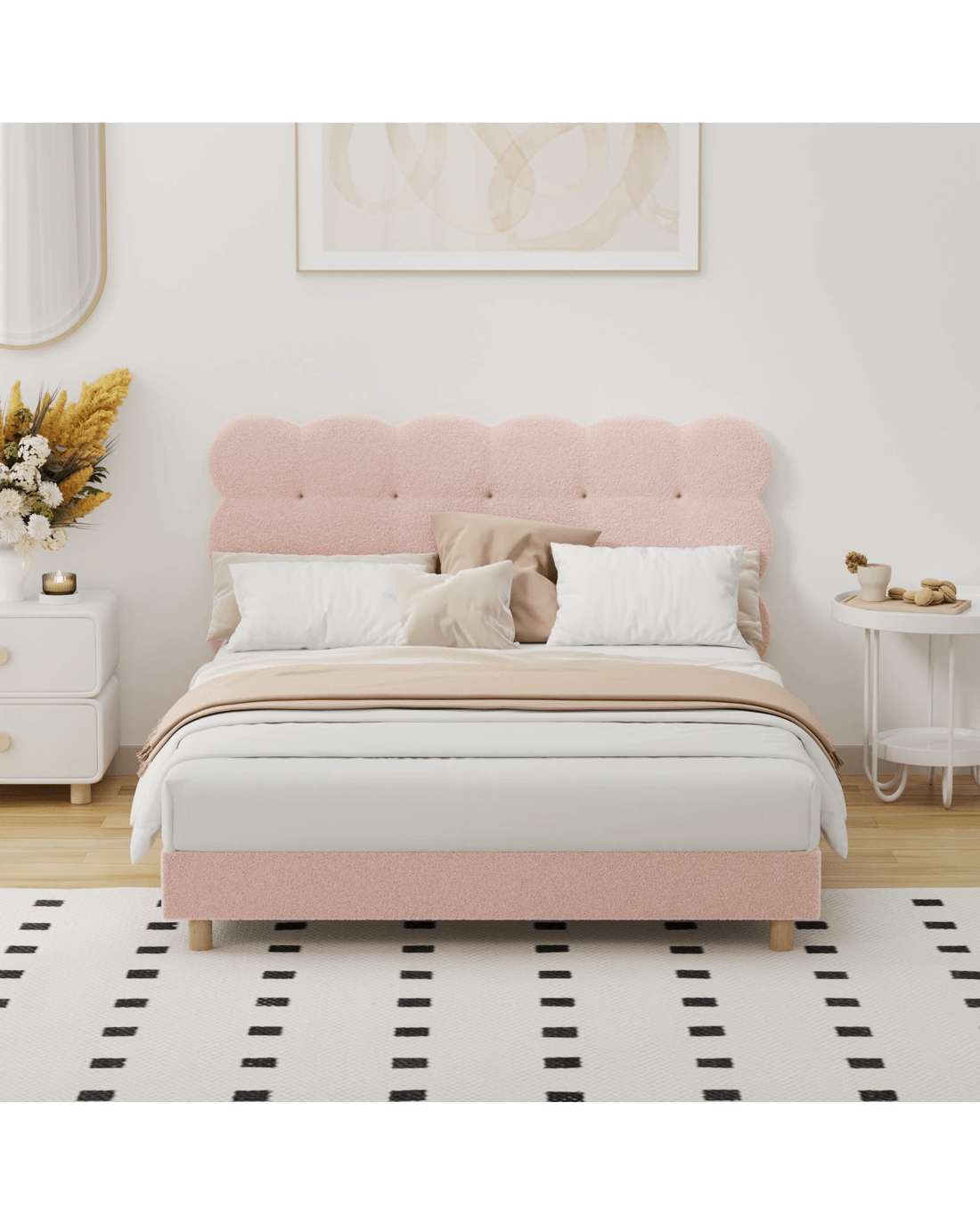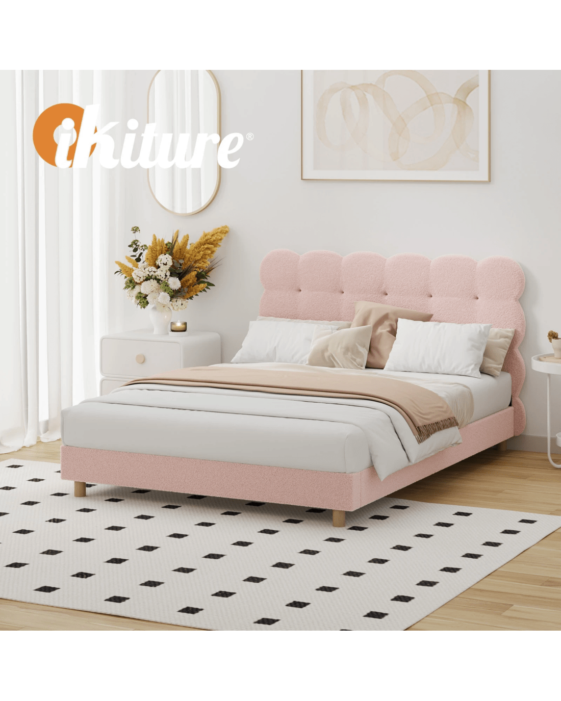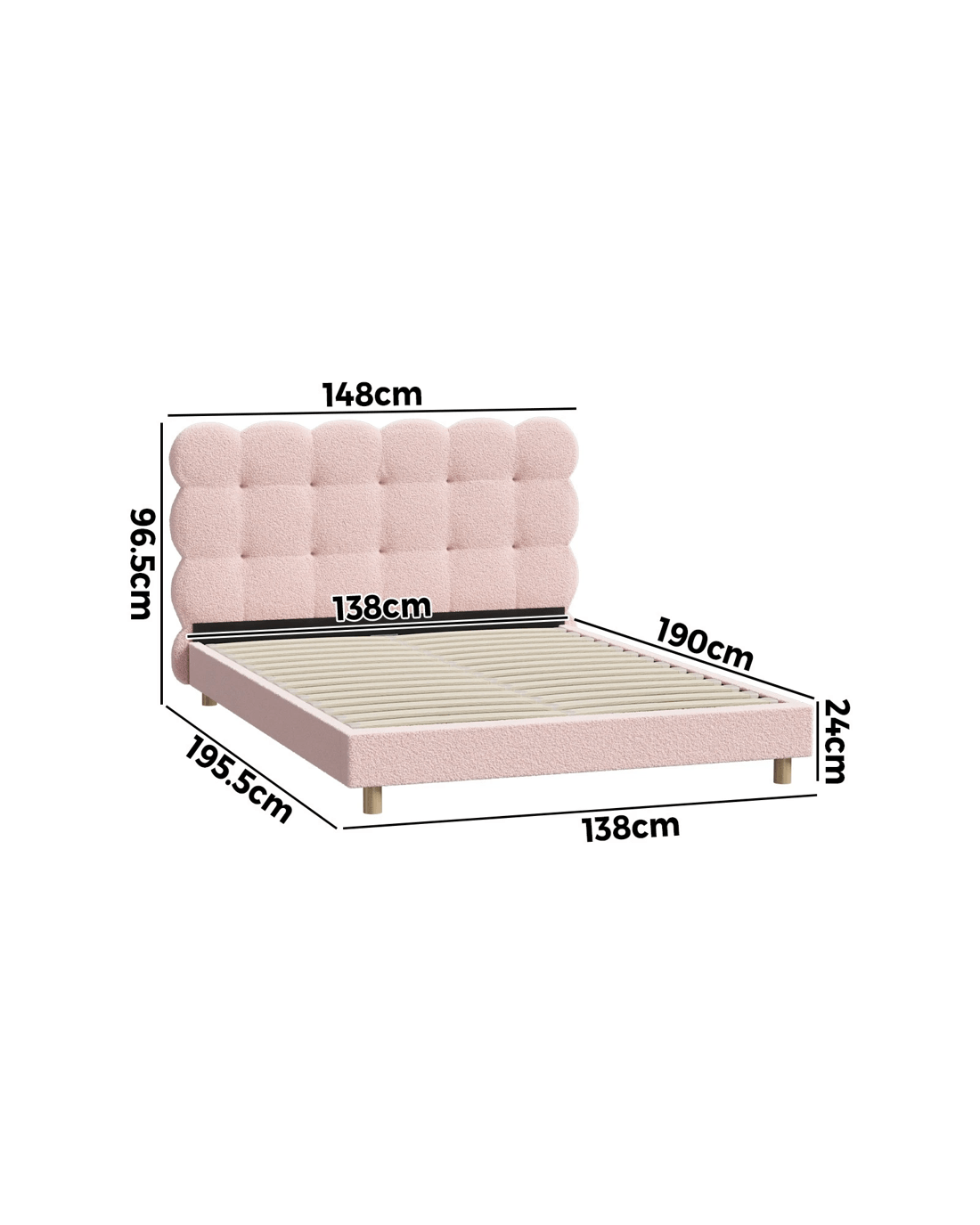 Sold by Kamprad's Oikos 1943Oikiture Double Bed Tufted Bedhead Boucle Bed Frame - Pink