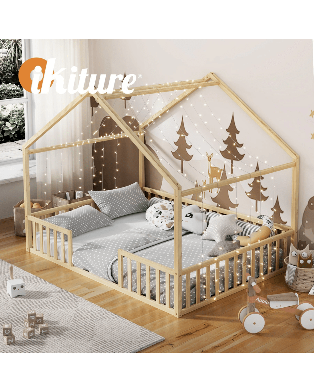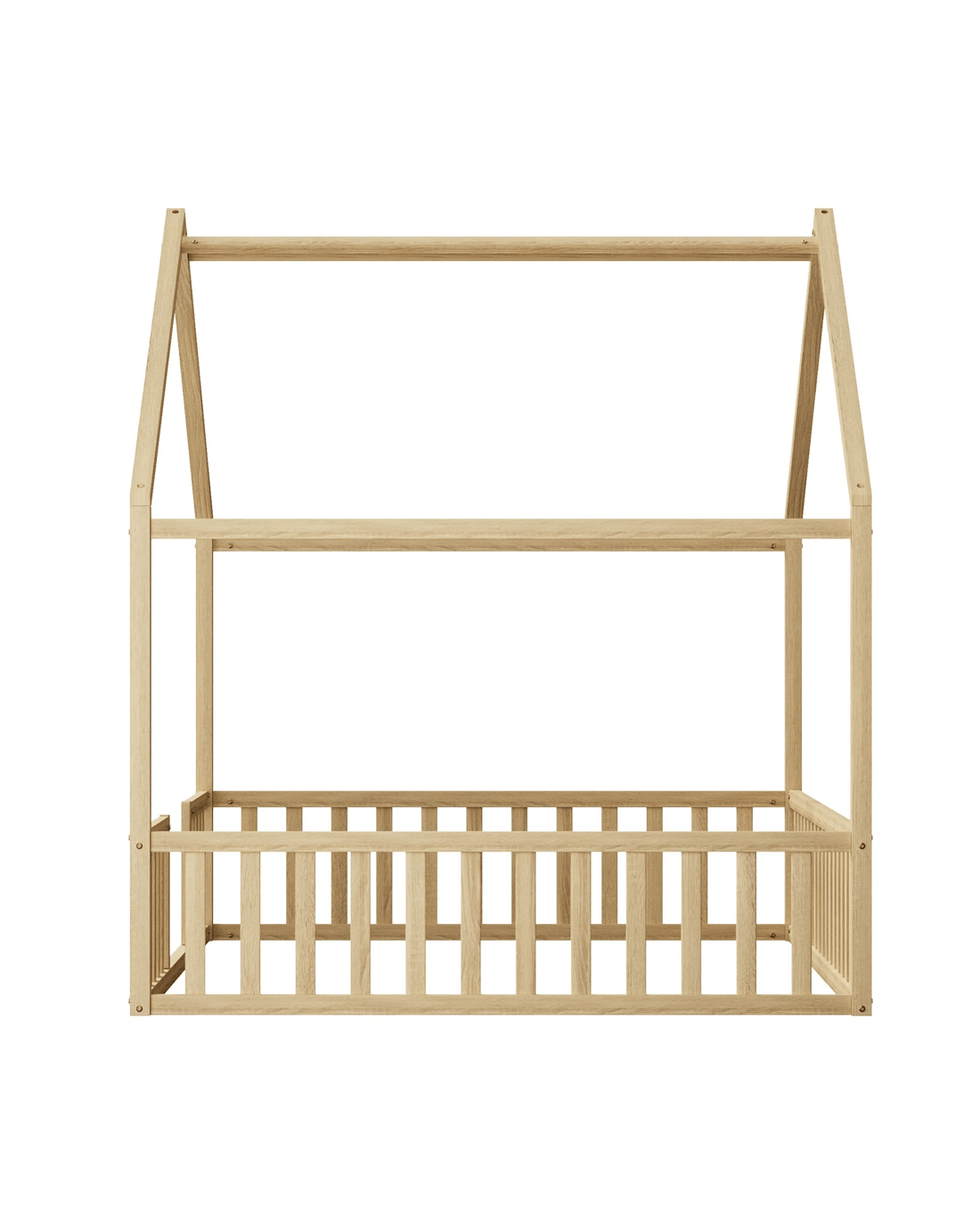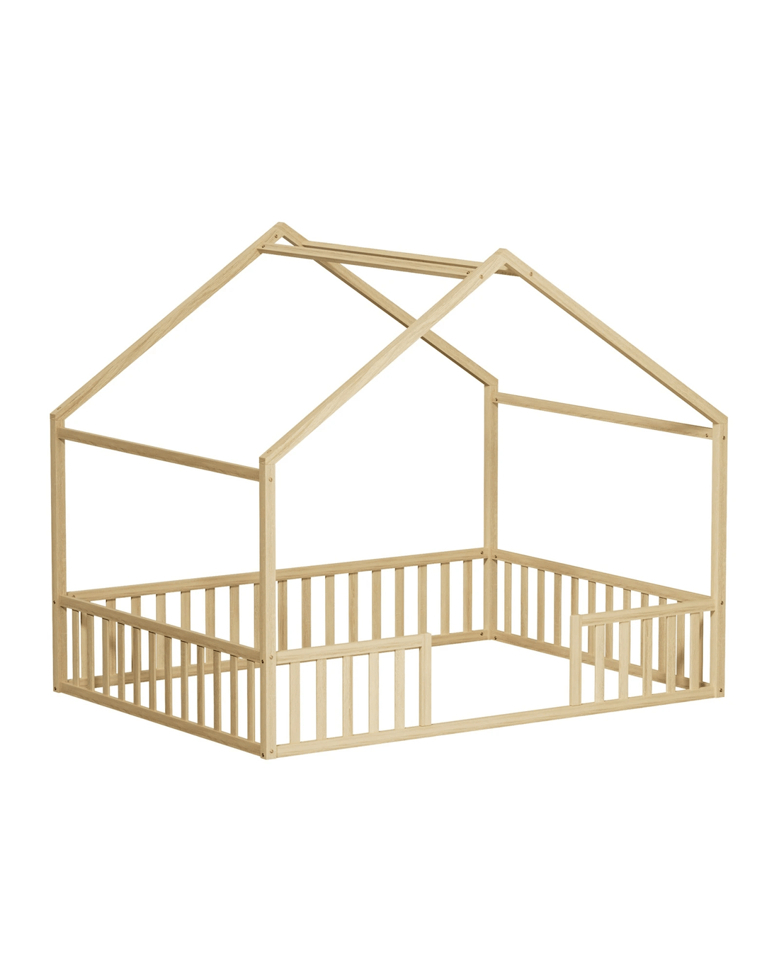Sold by Kamprad's Oikos 1943Oikiture Double House Bed Kids Wooden Bed Frame - Natural